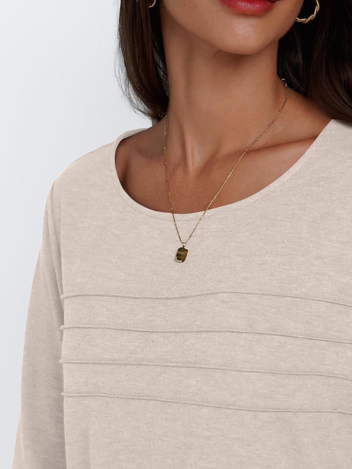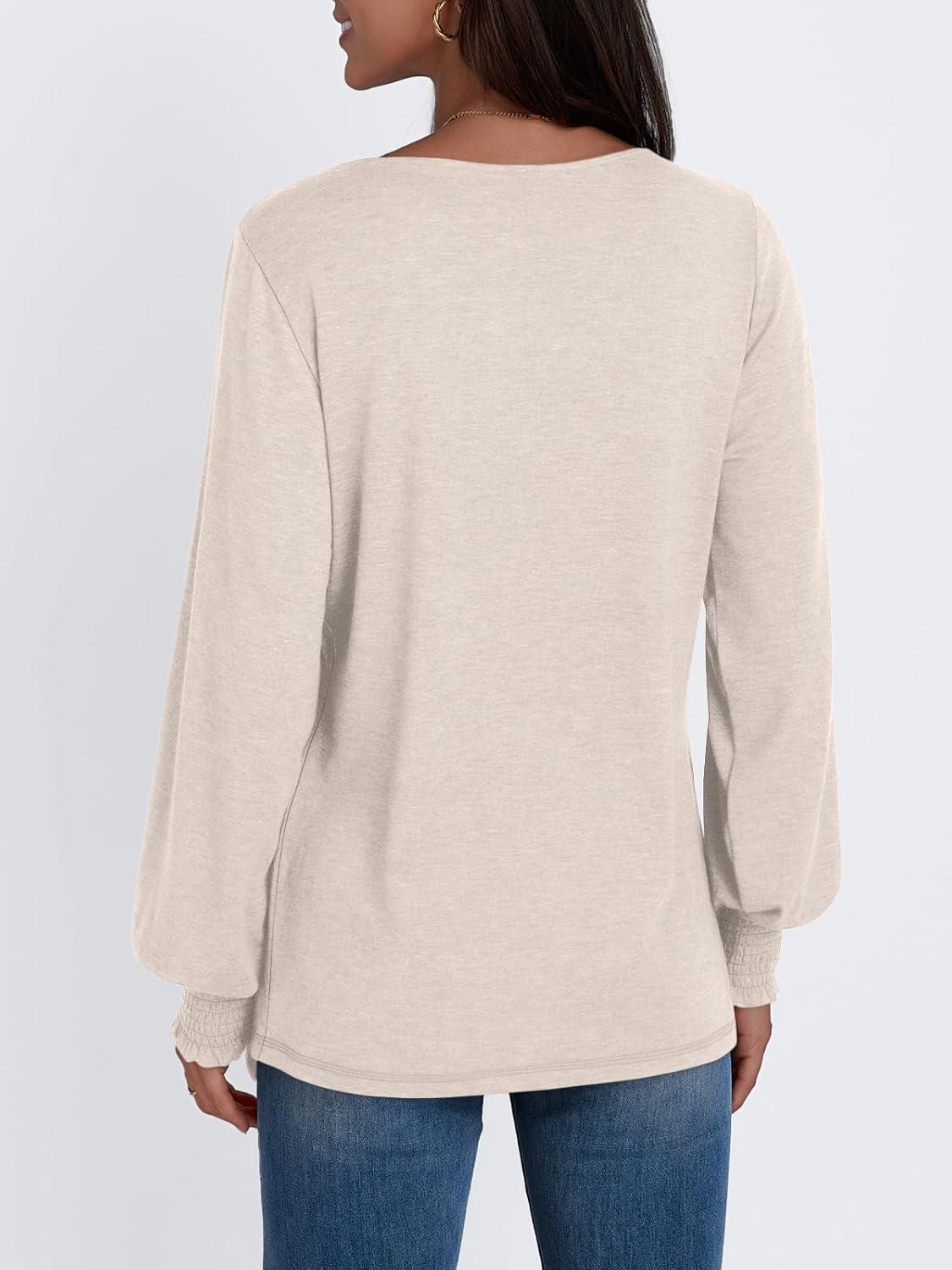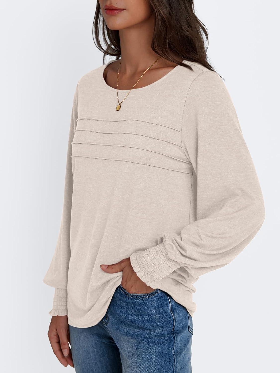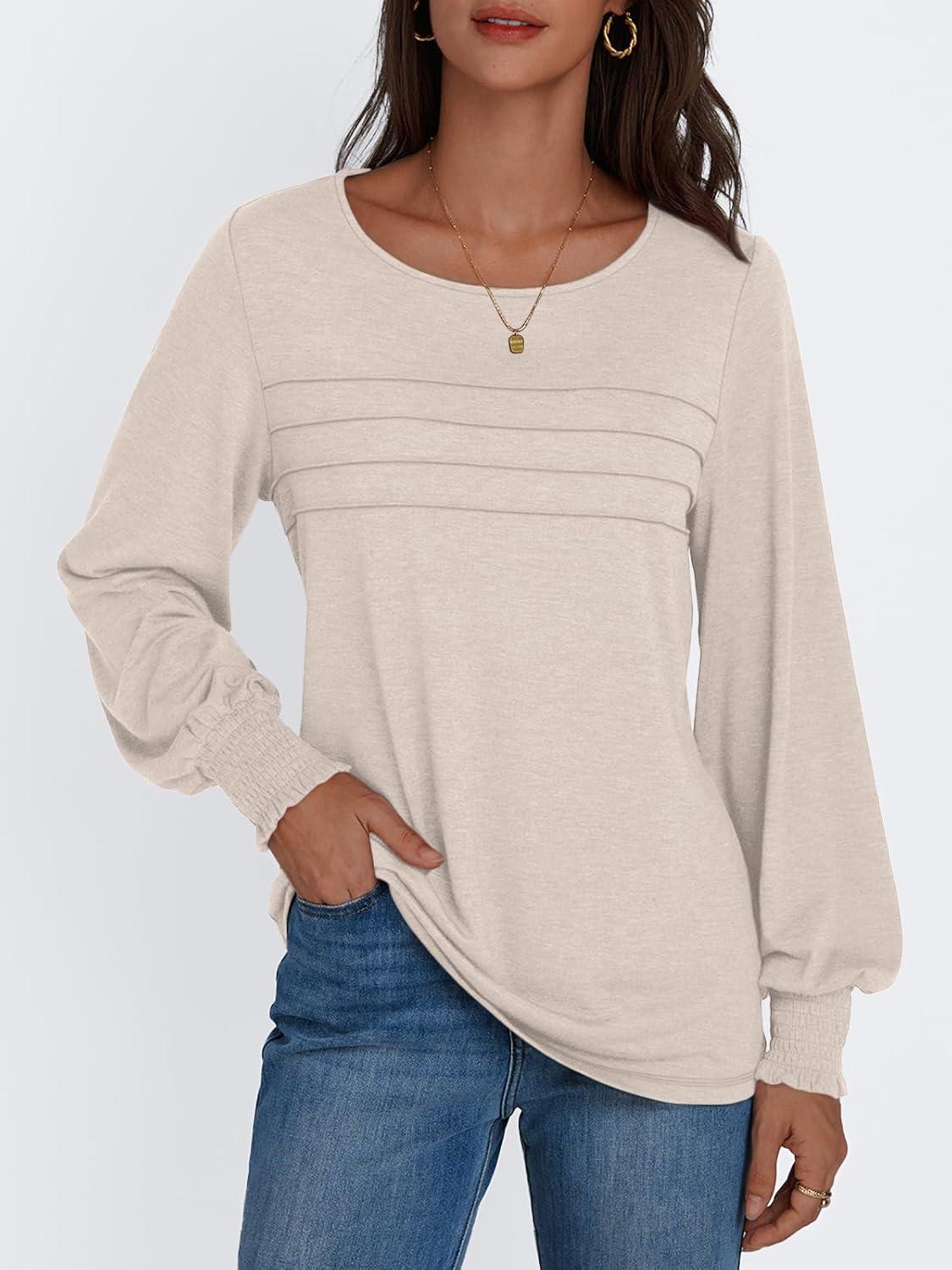 AUTOMET Womens Long Sleeve Tops Blouses Dressy Casual Business Crew Neck Tunic Loose Fit Trendy Outfits Fashion Clothes(Cream)