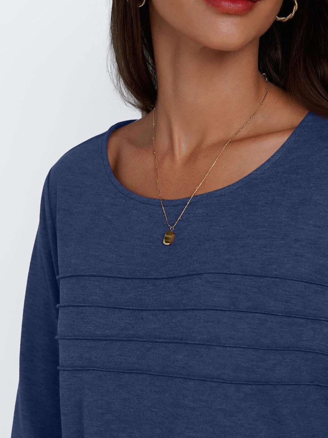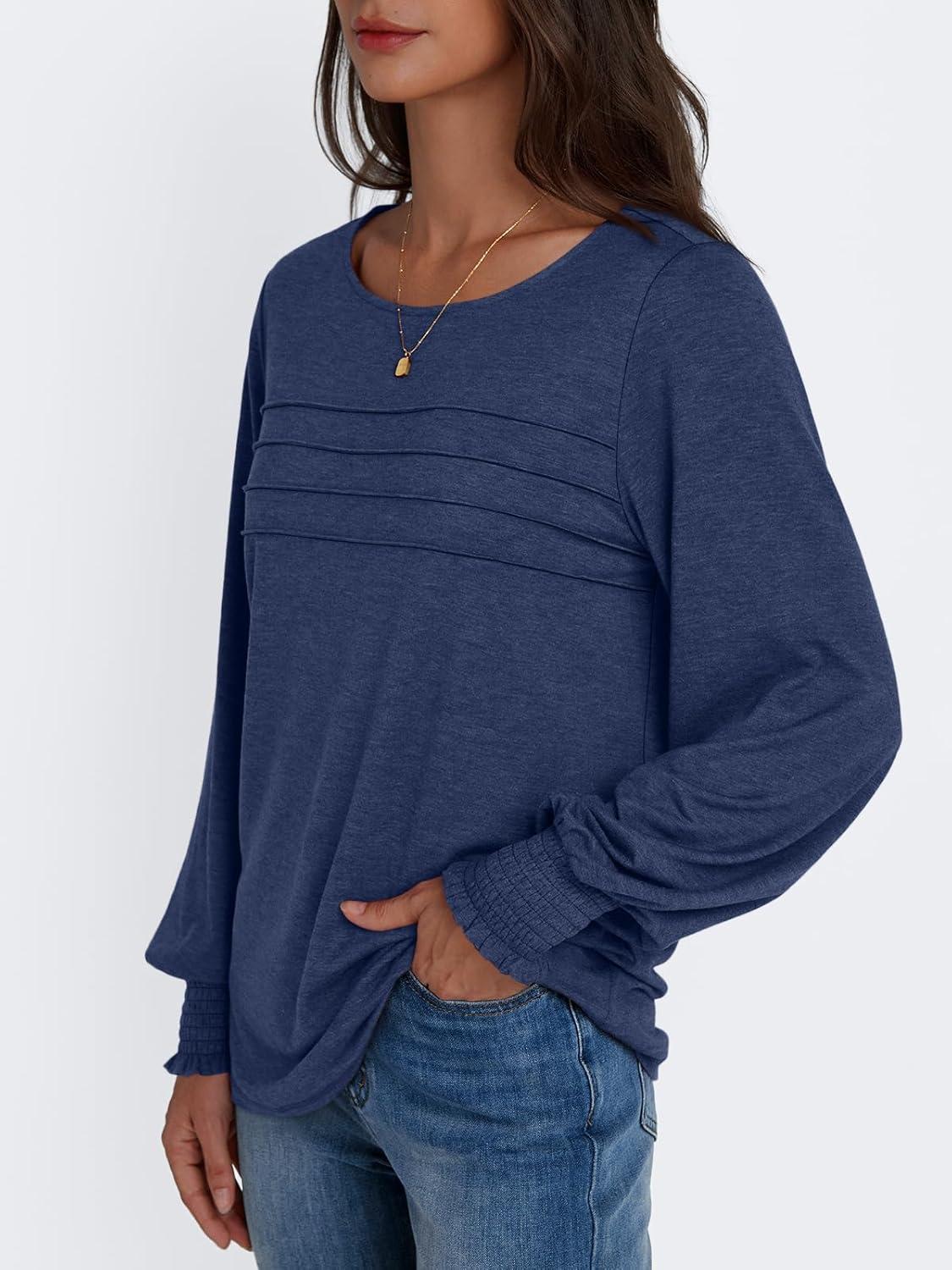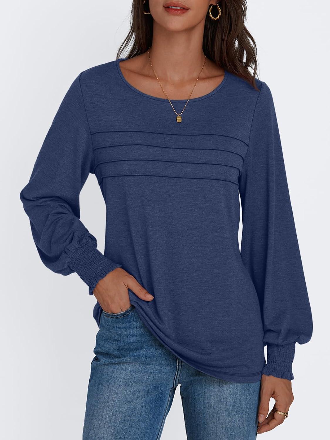AUTOMET Womens Long Sleeve Tops Blouses Dressy Casual Business Crew Neck Tunic Loose Fit Trendy Outfits Fashion Clothes(Navy)