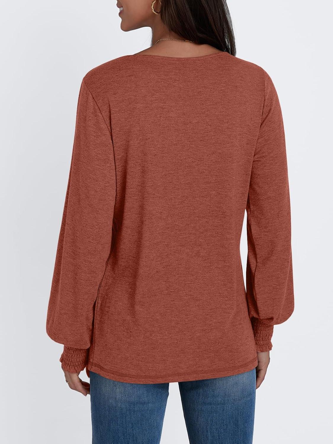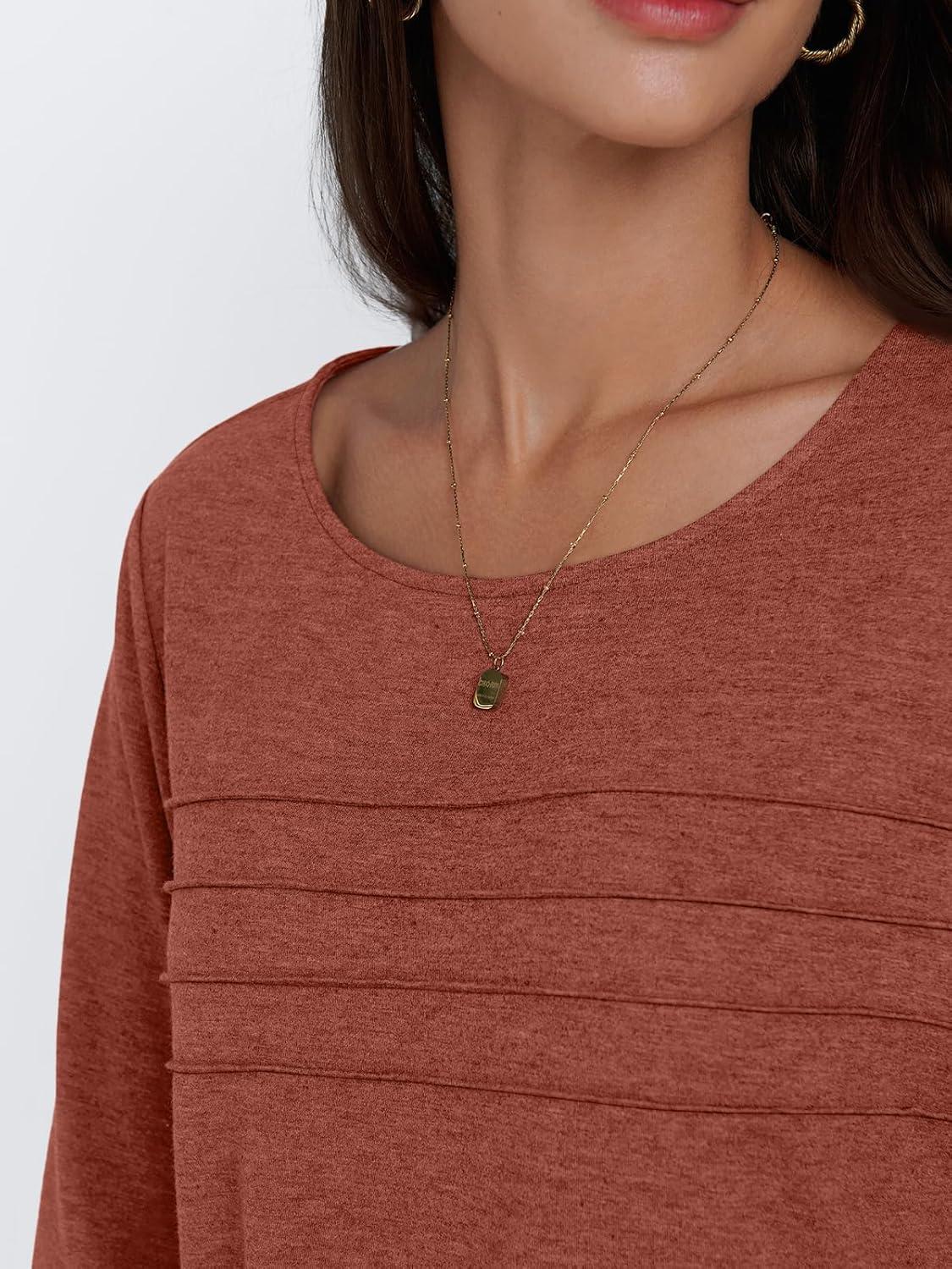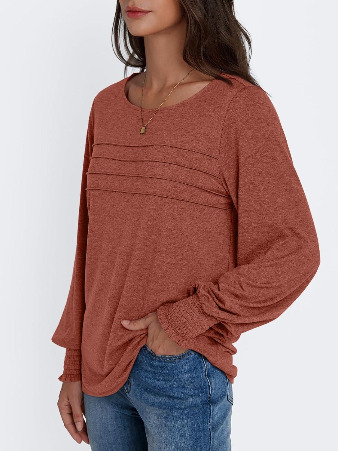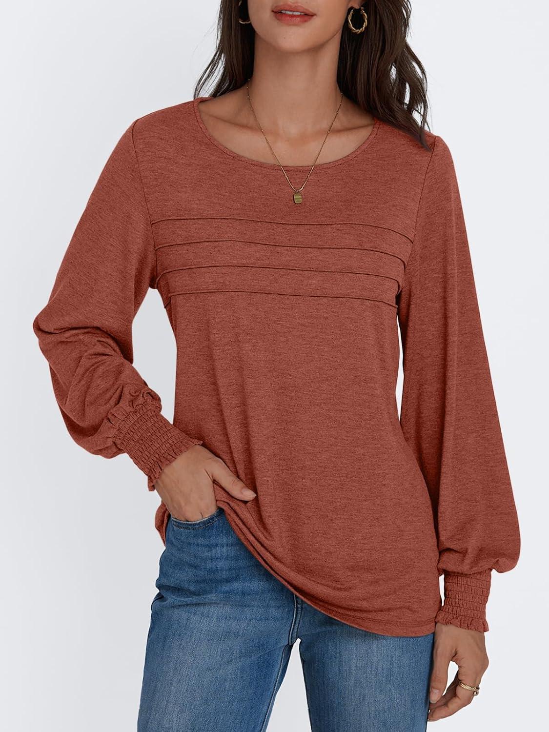 AUTOMET Womens Long Sleeve Tops Blouses Dressy Casual Business Crew Neck Tunic Loose Fit Trendy Outfits Fashion Clothes(Rust)