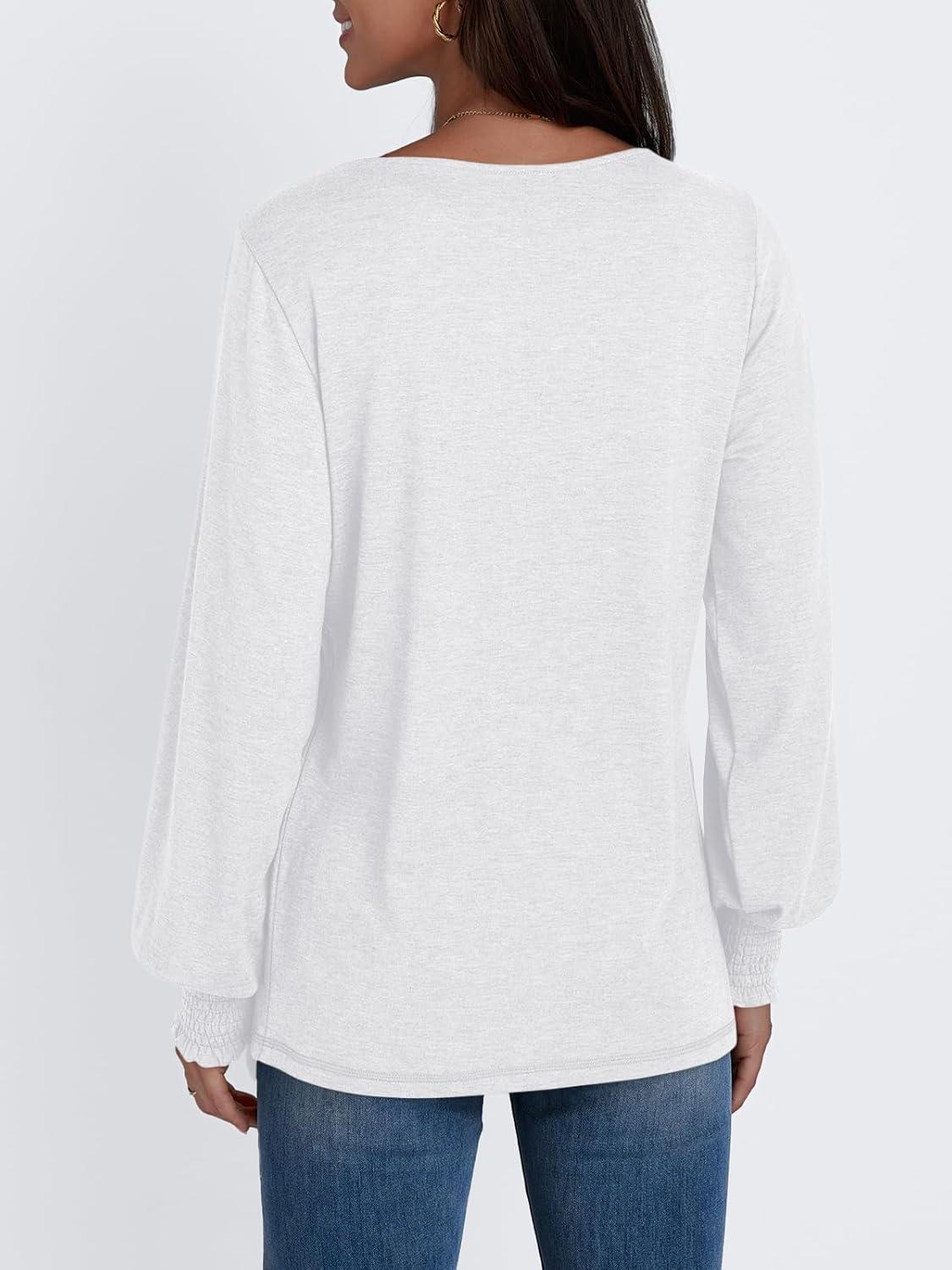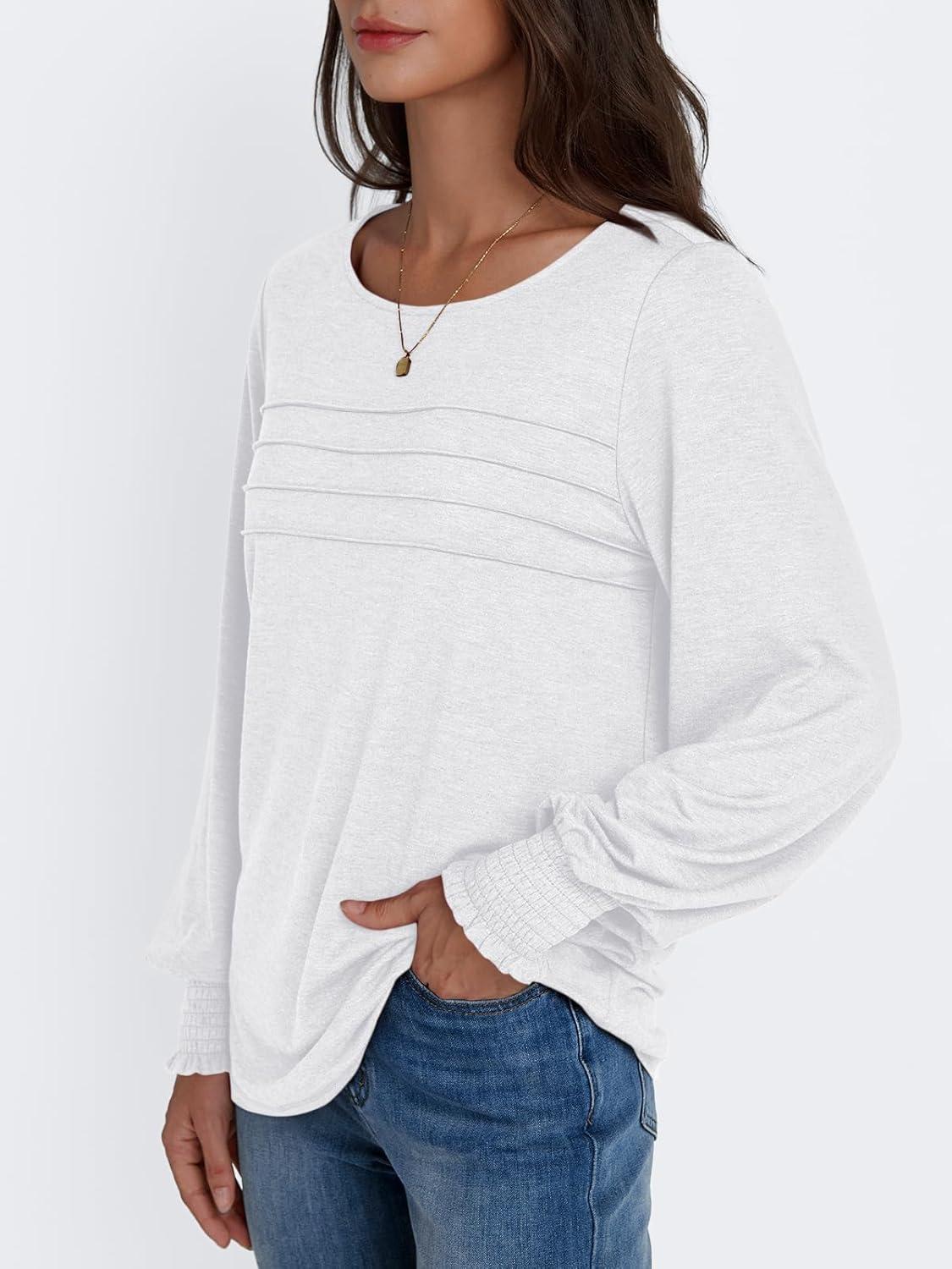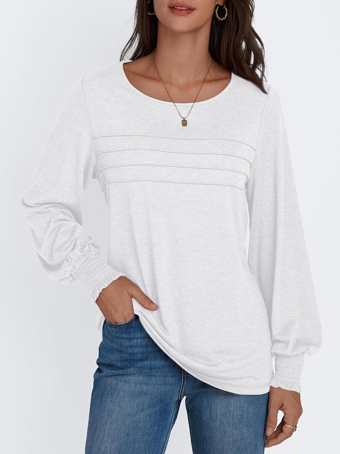 AUTOMET Womens Long Sleeve Tops Blouses Dressy Casual Business Crew Neck Tunic Loose Fit Trendy Outfits Fashion Clothes(White)