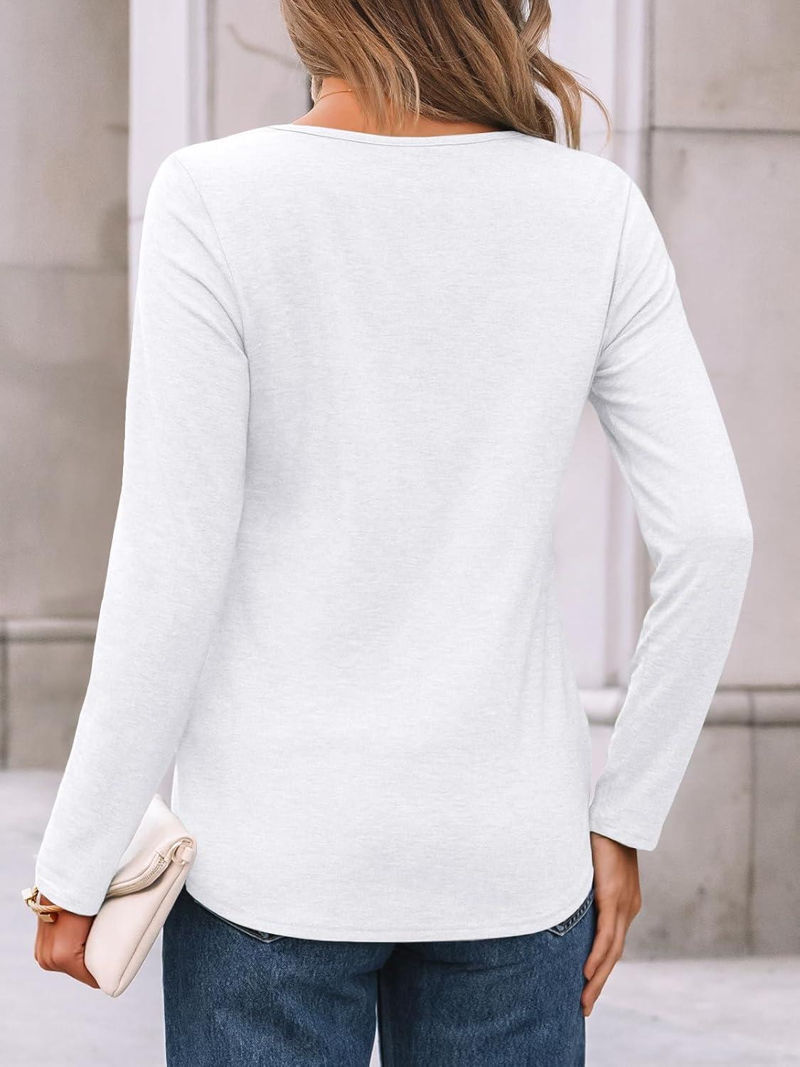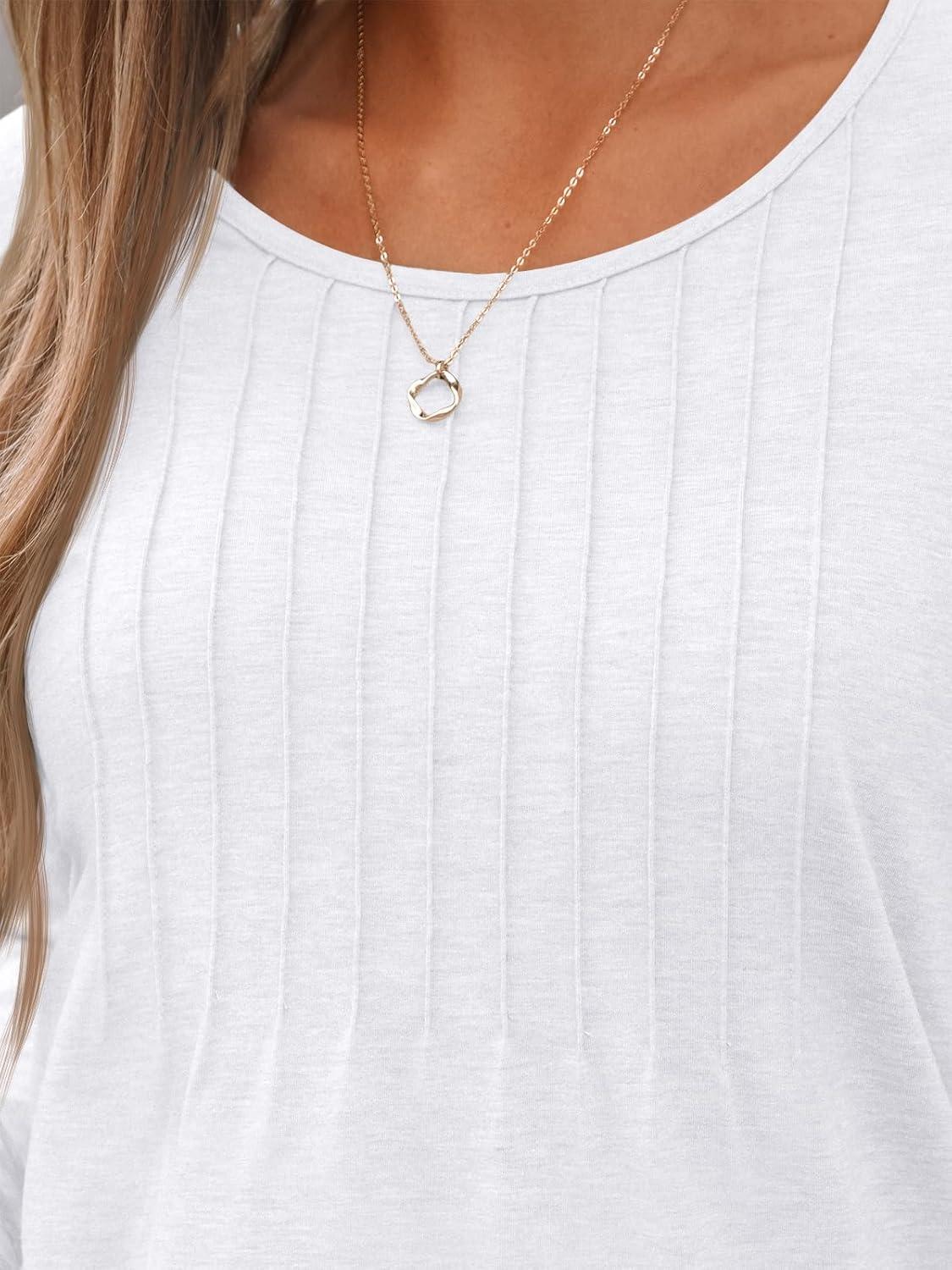 AUTOMET Womens Long Sleeve Tops Business Casual Crewneck Pleated Shirts Fall Fashion 2025 Blouses Trendy Basic Loose Outfits(White)