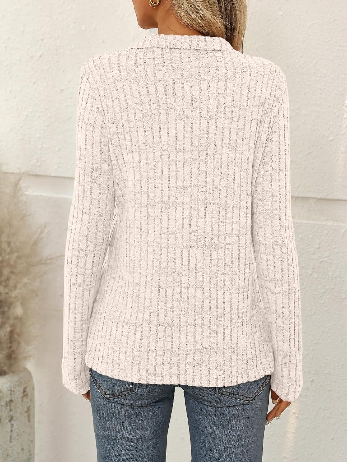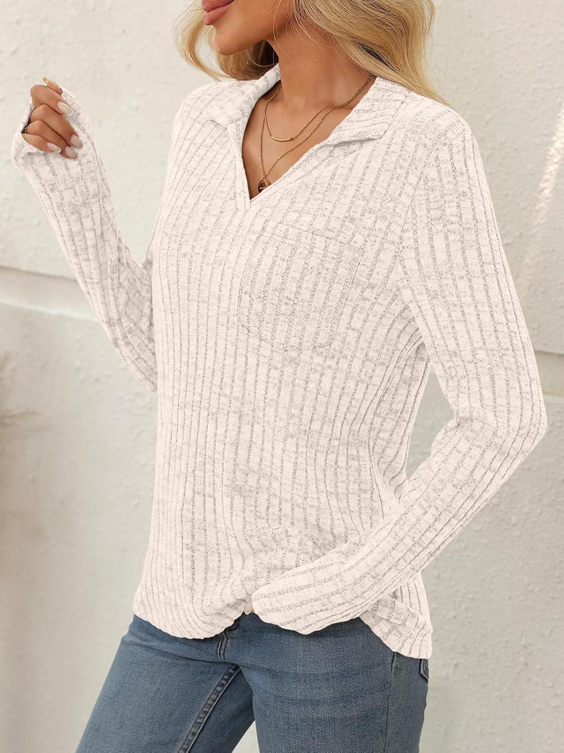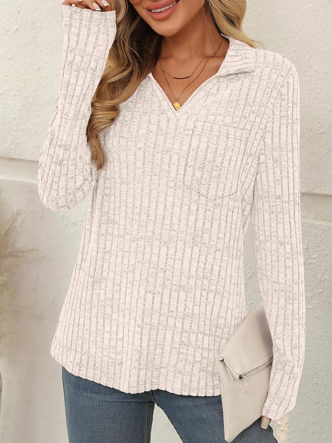 AUTOMET Womens Long Sleeve Tops Casual Collared Polo Shirts V Neck Tunic Sweaters Fall Fashion Dressy Winter Clothes 2025(Apricot)