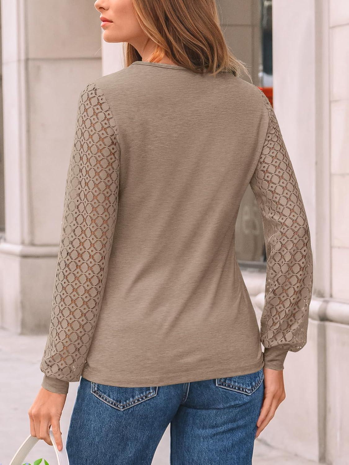 AUTOMET Women’s Long Sleeve Tops Dressy Casual Shirts 2025 Fall Outfits Lace Business Blouses Cute T-Shirts Work Clothes(Khaki)