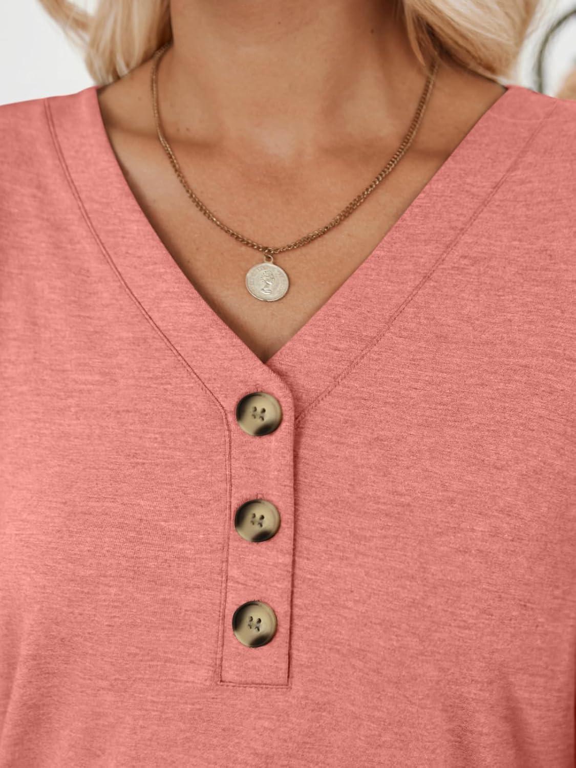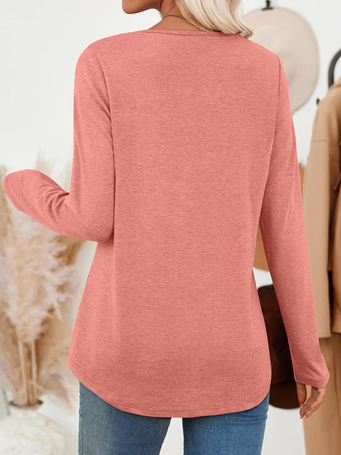 AUTOMET Womens Long Sleeve Tops Fall Fashion Dressy Casual Shirts V Neck T-Shirts Tunic Lightweight Outfits Clothes 2025(Coral)
