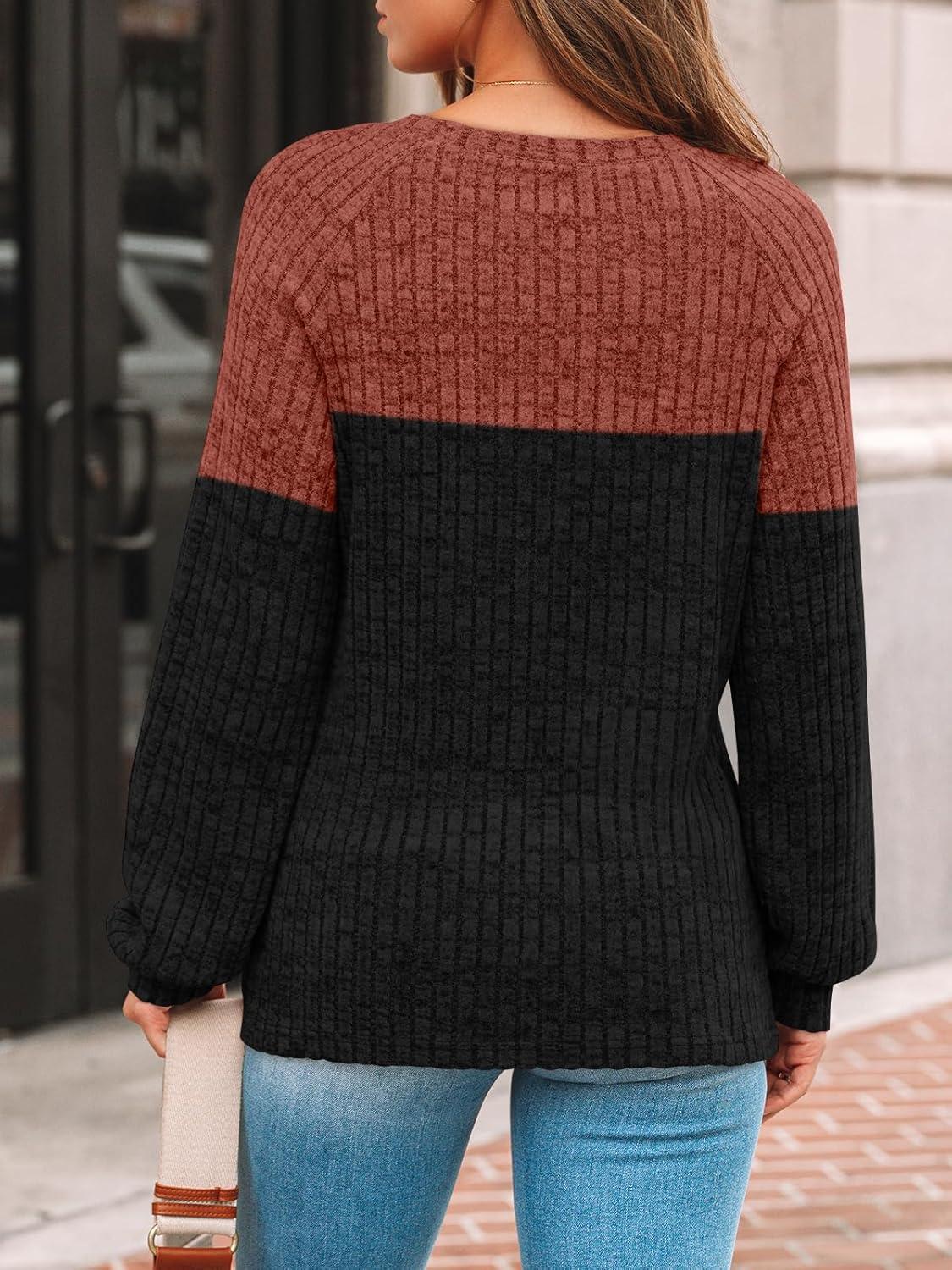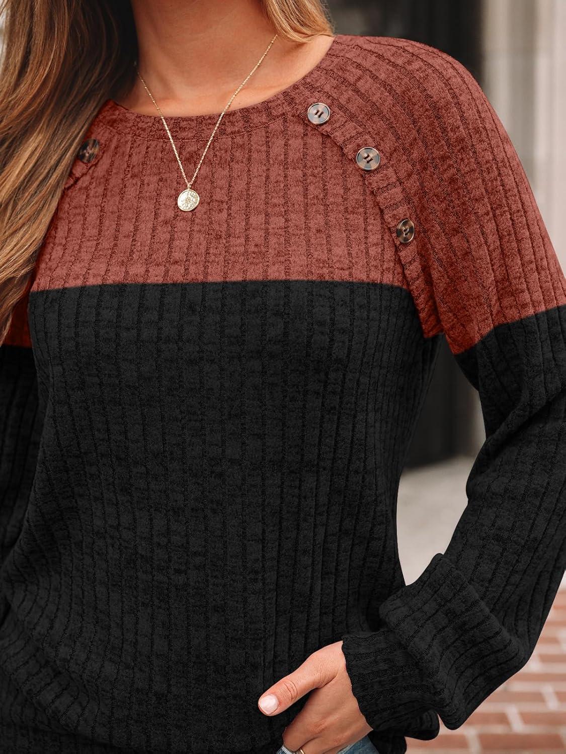 AUTOMET Womens Long Sleeve Tshirts Casual Tunic Work Tops Fall Plus Size Sweaters Date Night Outfits 2025 Dressy Blouses(Caramel Black)