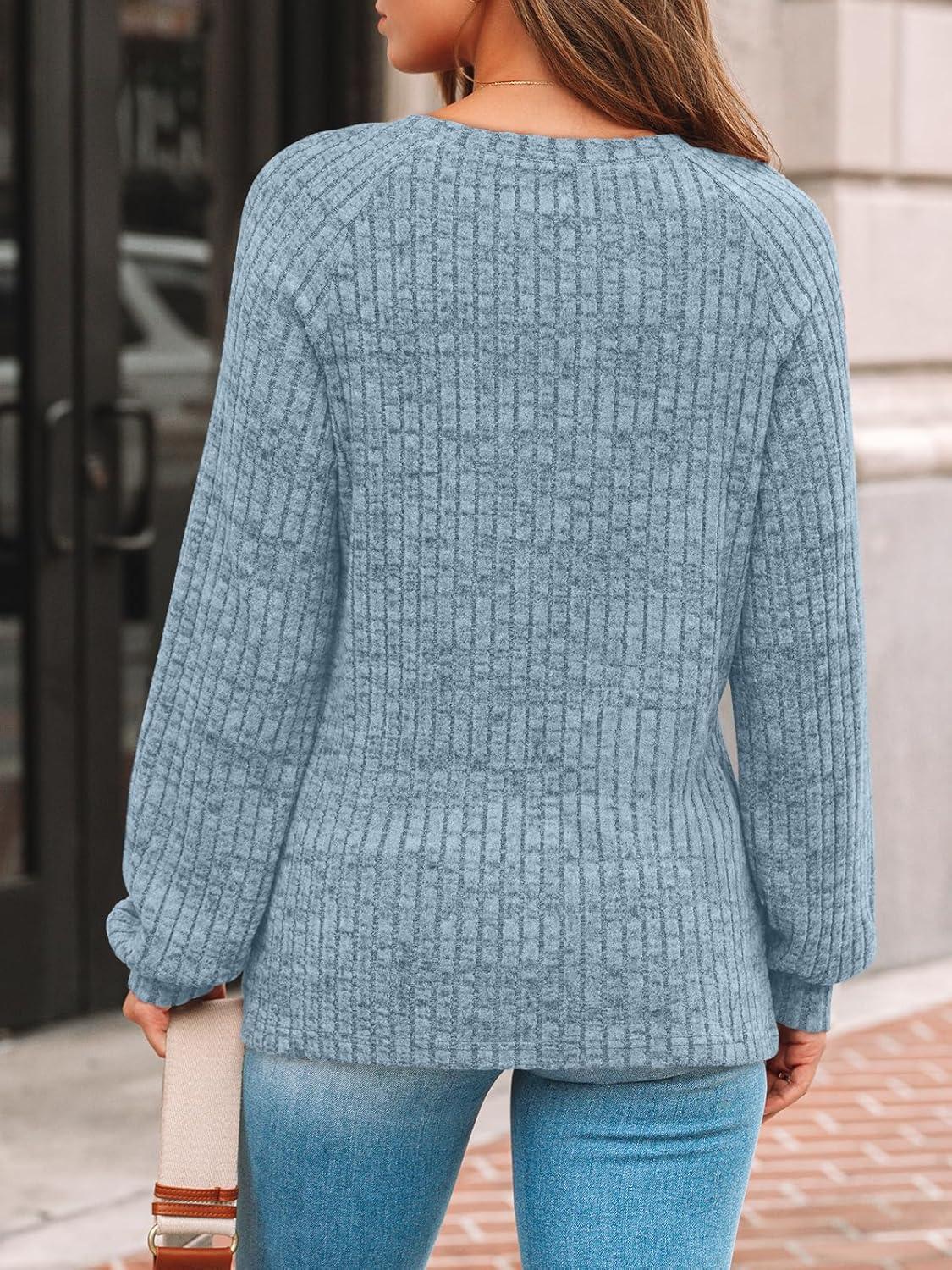 AUTOMET Womens Long Sleeve Tshirts Casual Tunic Work Tops Fall Plus Size Sweaters Date Night Outfits 2025 Dressy Blouses(Dusty Blue)