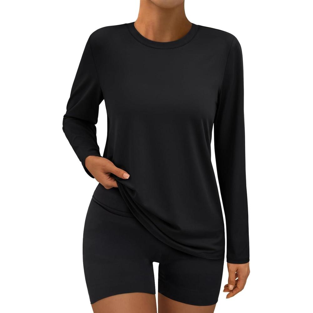 AUTOMET Women’s Long Sleeve Workout Tops 2025 Fall Sports Sun Shirts Swim Hiking Gym Tshirts UPF 50+ Rash Guard UV Clothes(Black)
