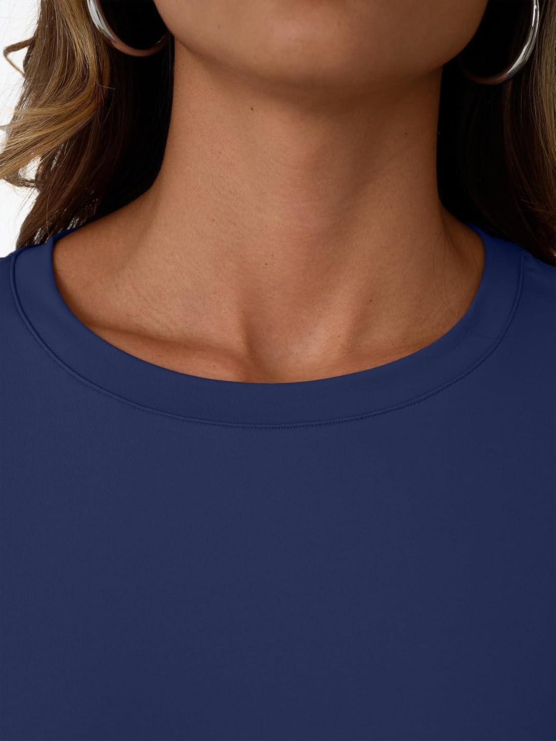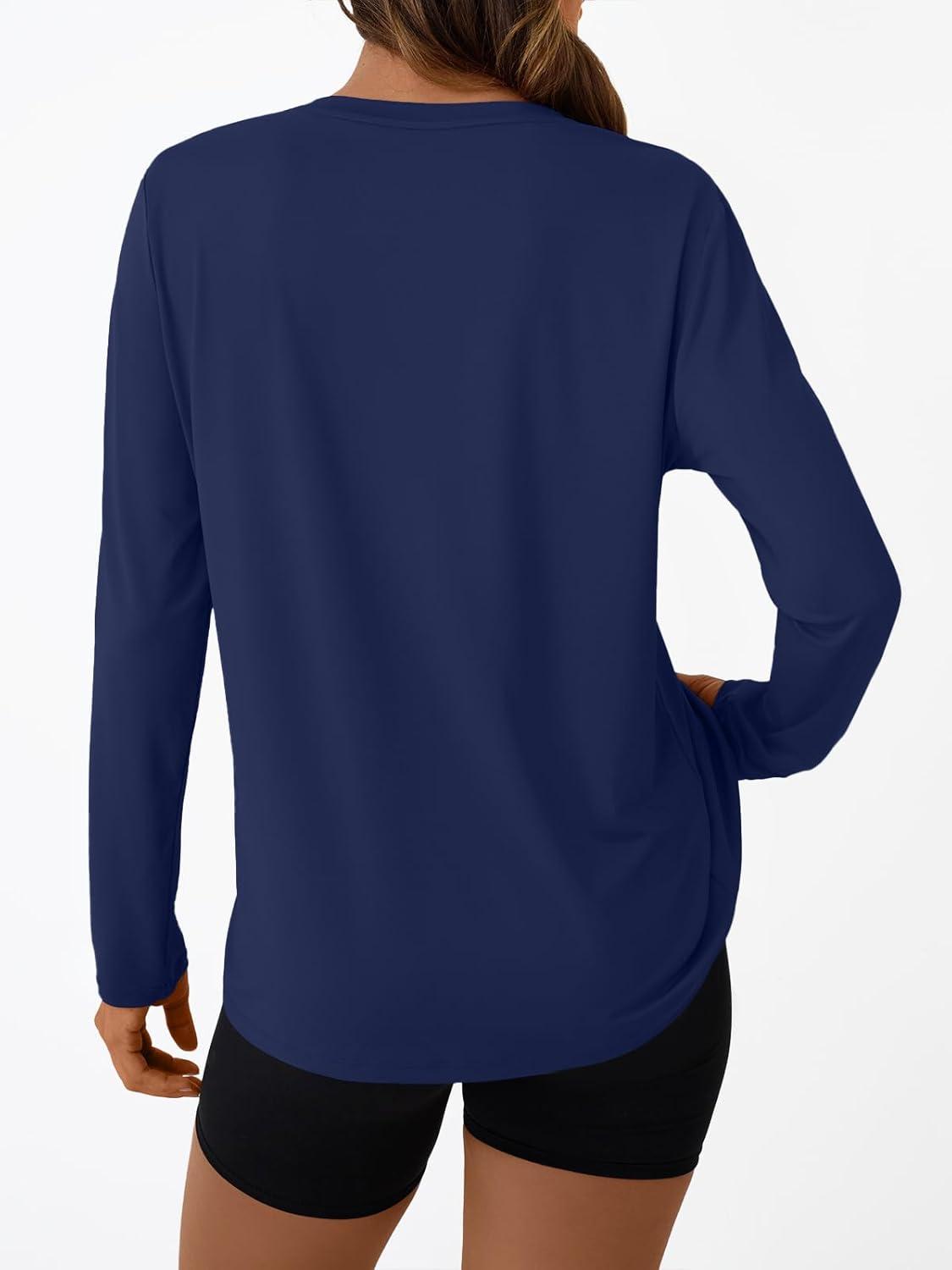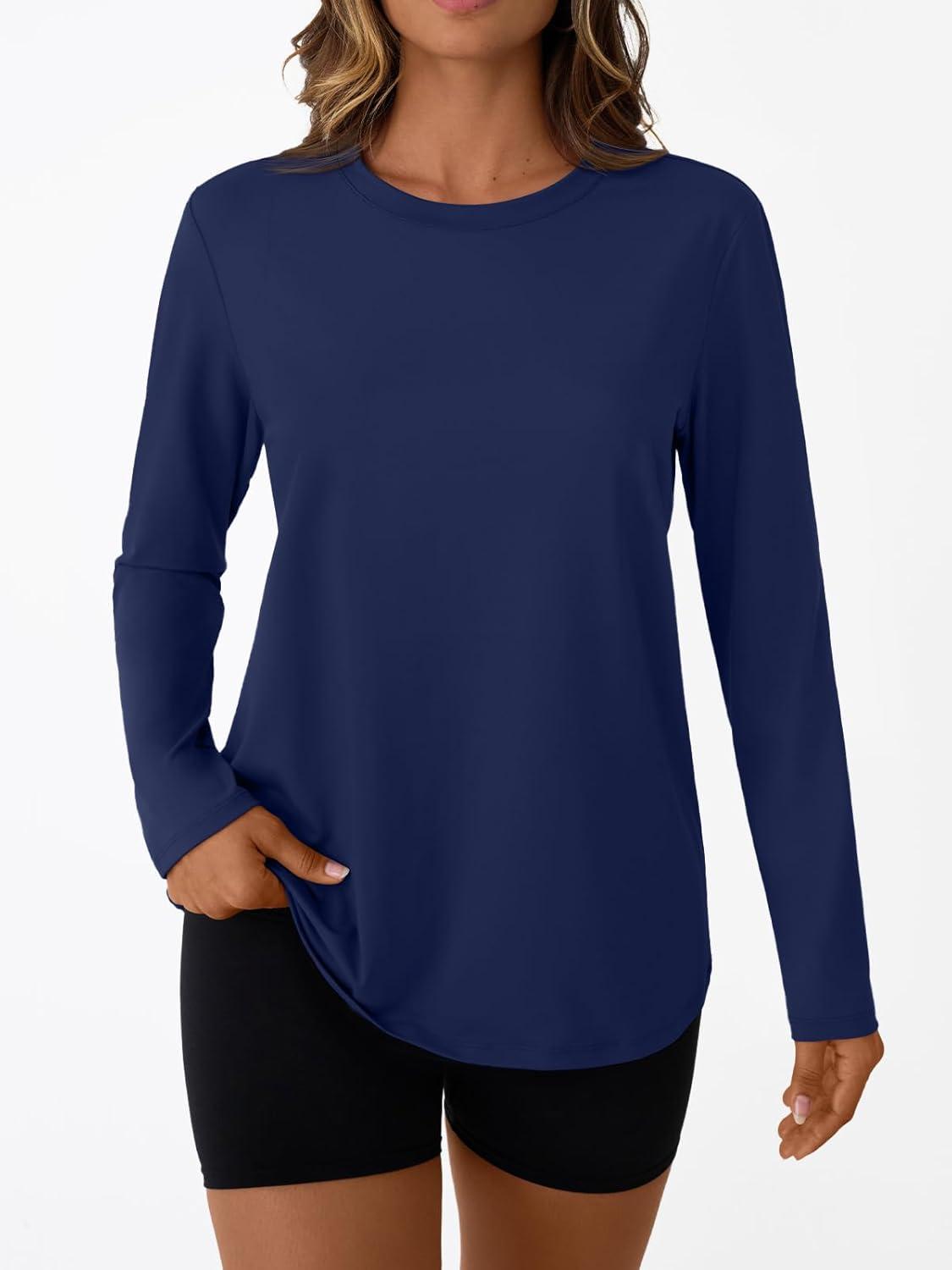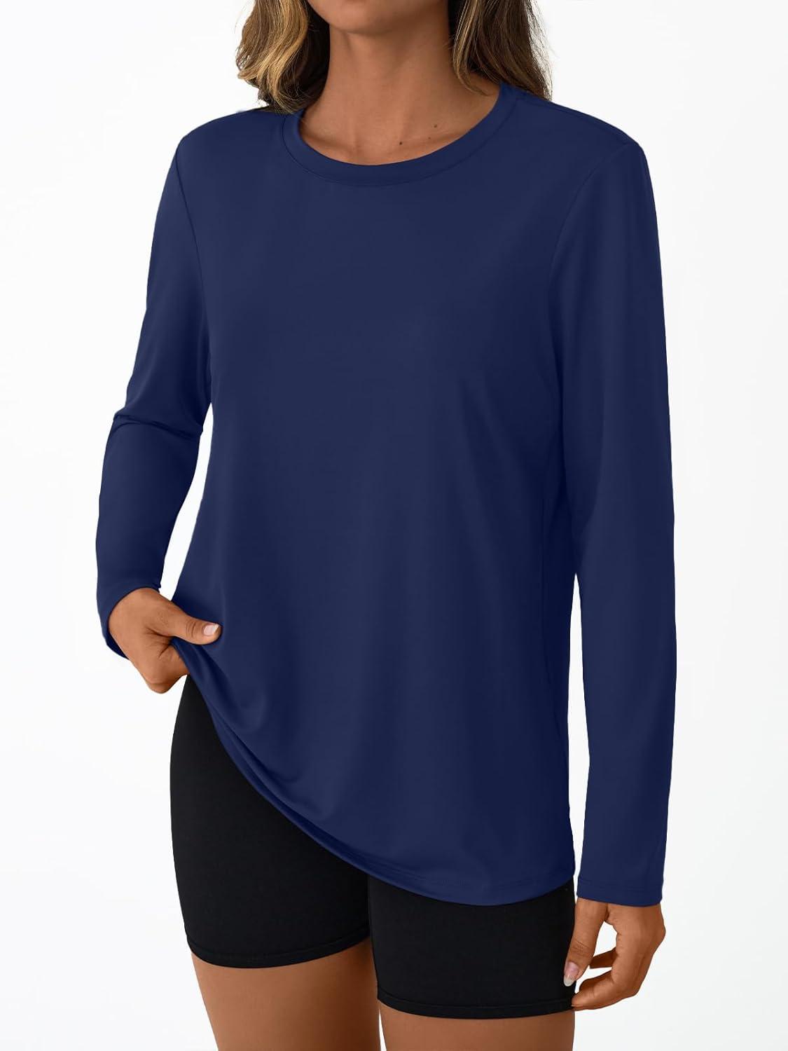 AUTOMET Women’s Long Sleeve Workout Tops 2025 Fall Sports Sun Shirts Swim Hiking Gym Tshirts UPF 50+ Rash Guard UV Clothes(Navy)