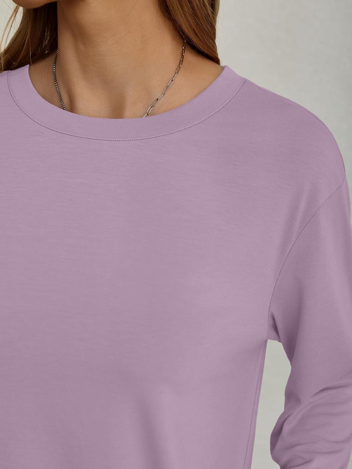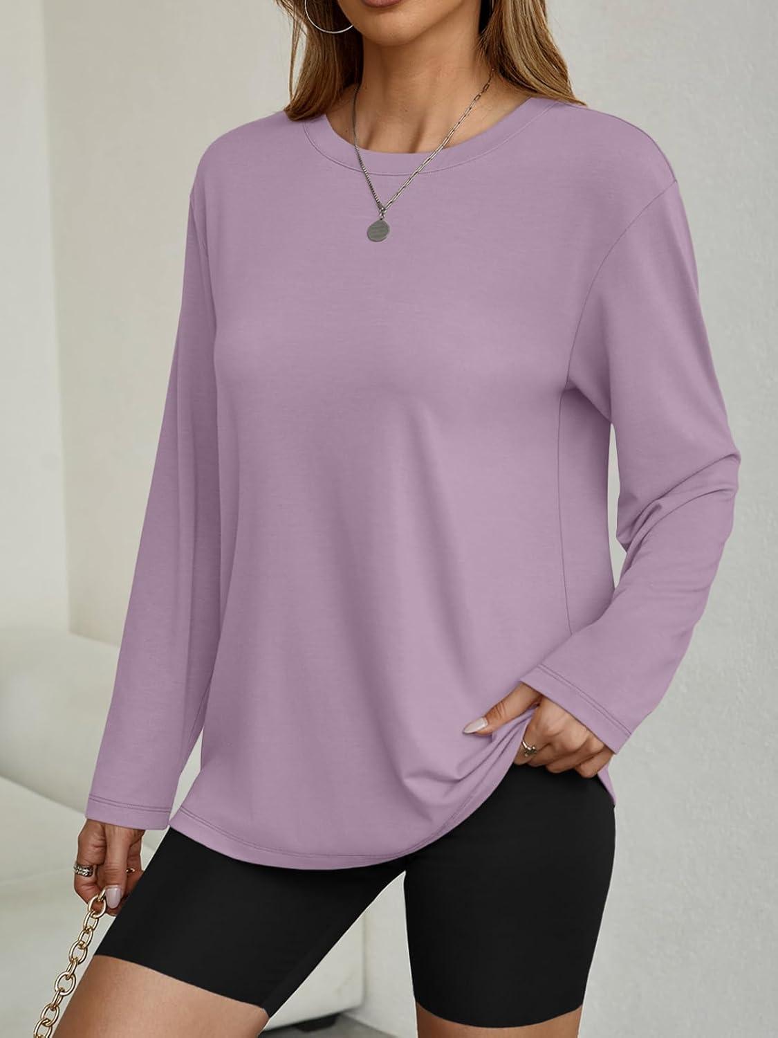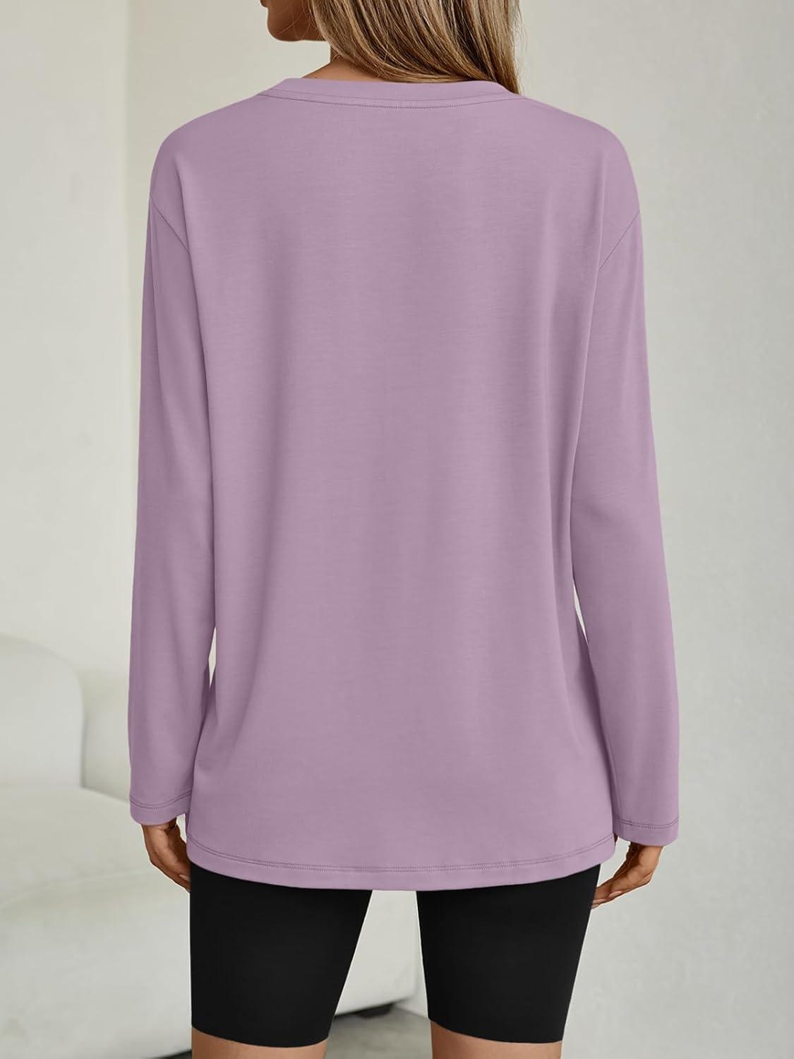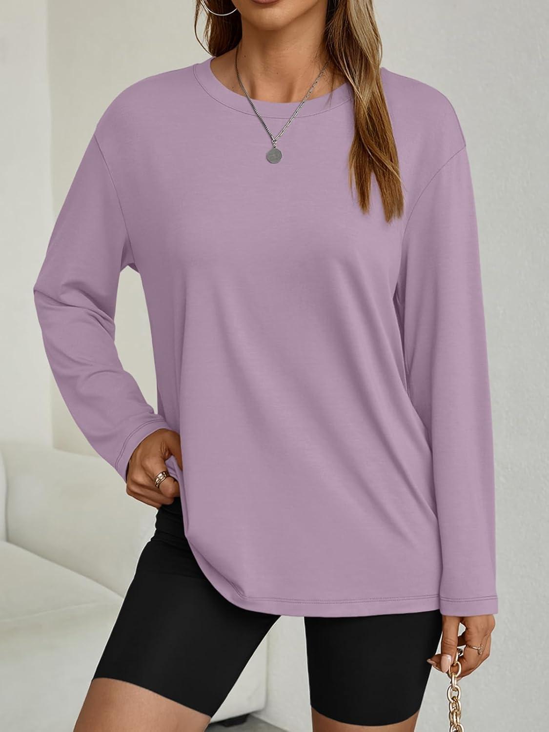 AUTOMET Women’s Oversized Long Sleeve Shirts Fall Trendy Tops Fashion Gym Baggy Basic Casual Loose Fit Workout Y2k Clothes(Pinkpurple)
