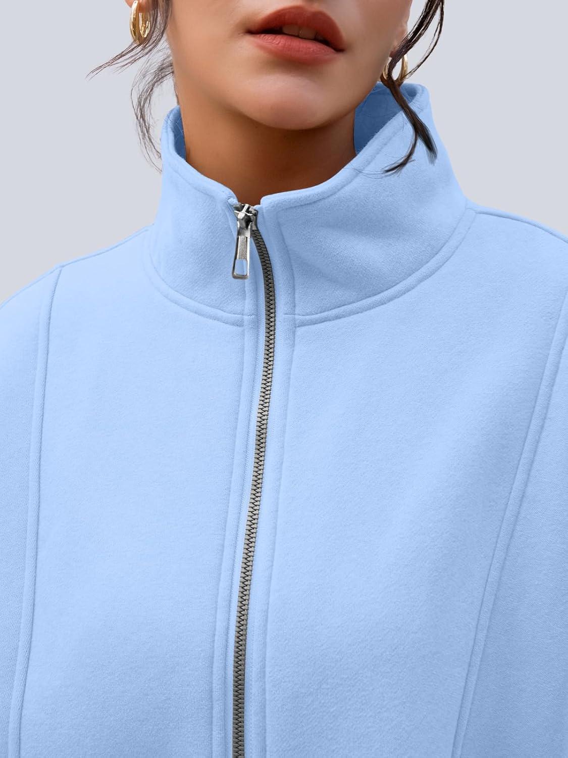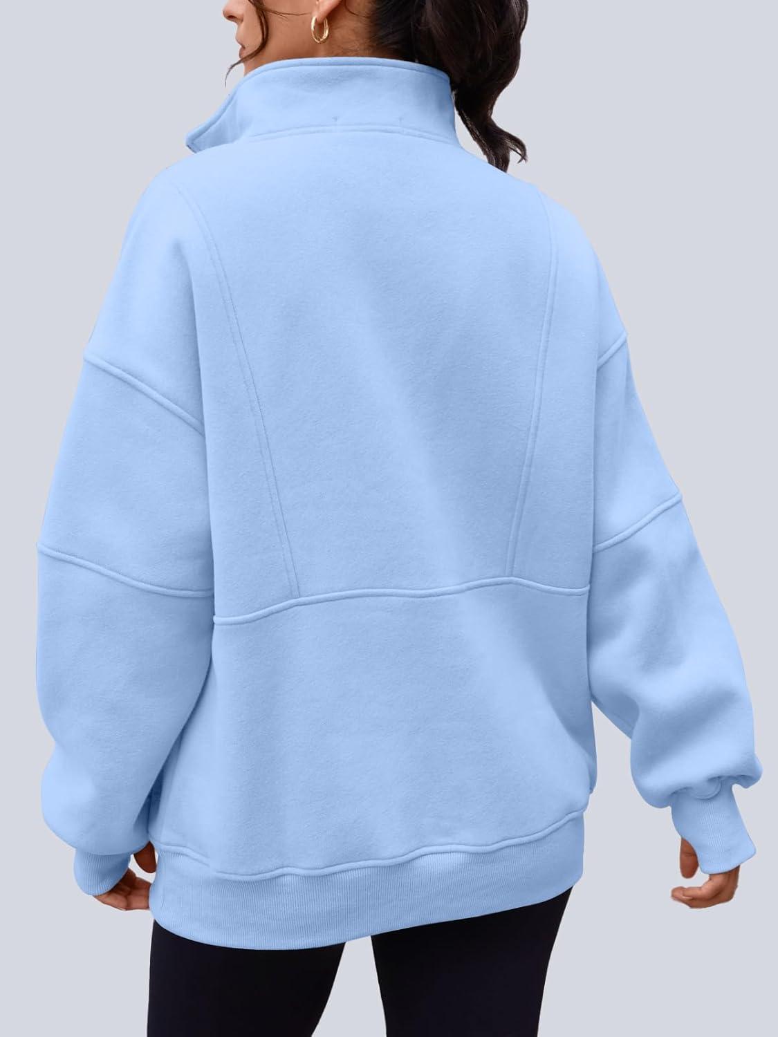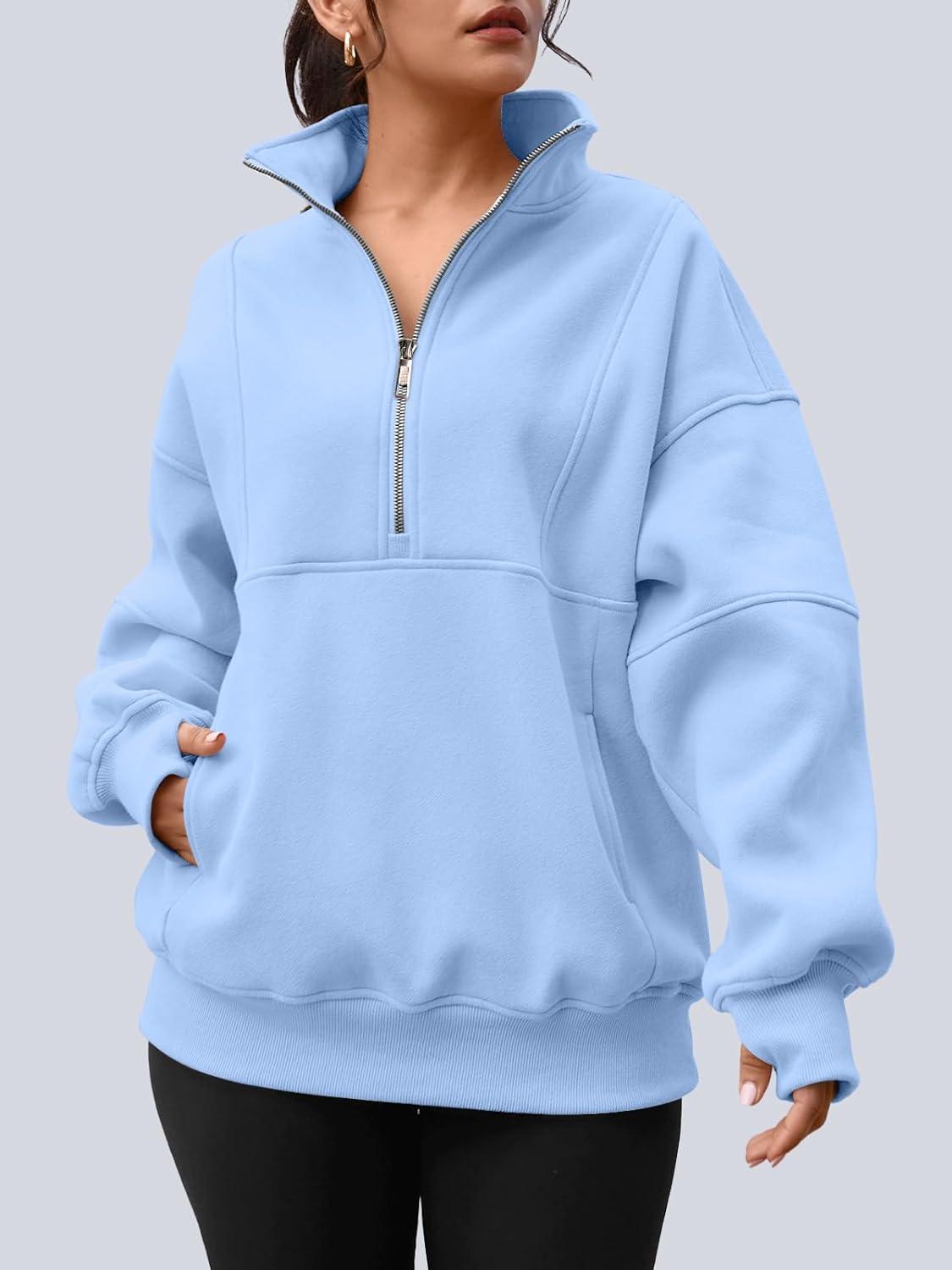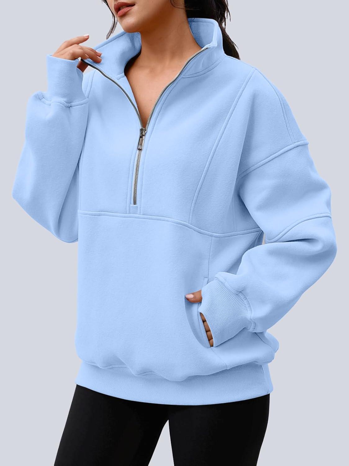 AUTOMET Womens Quarter Zip Oversized Sweatshirts Teen Fleece Pullover Hoodies 2025 Mock Neck Sweater Fall Workout Jacket(Lightblue)