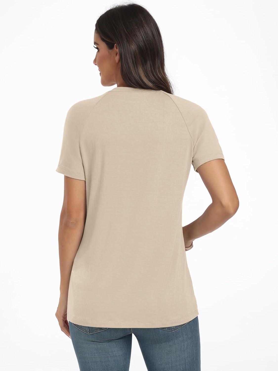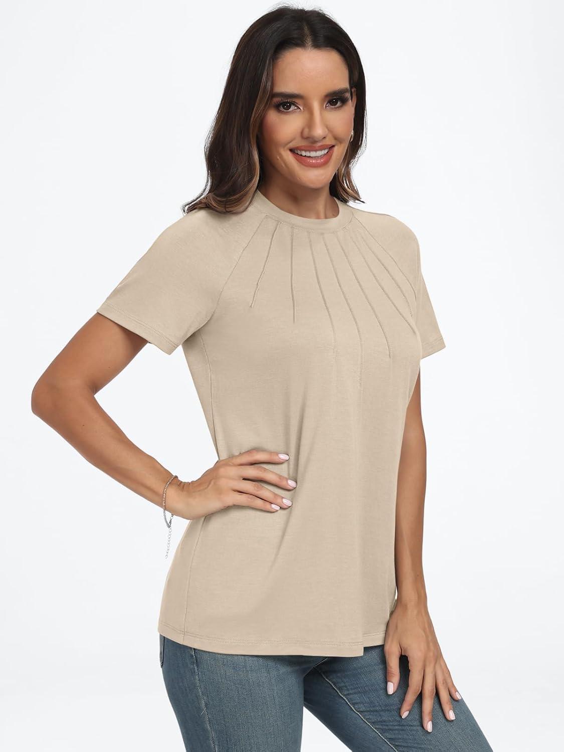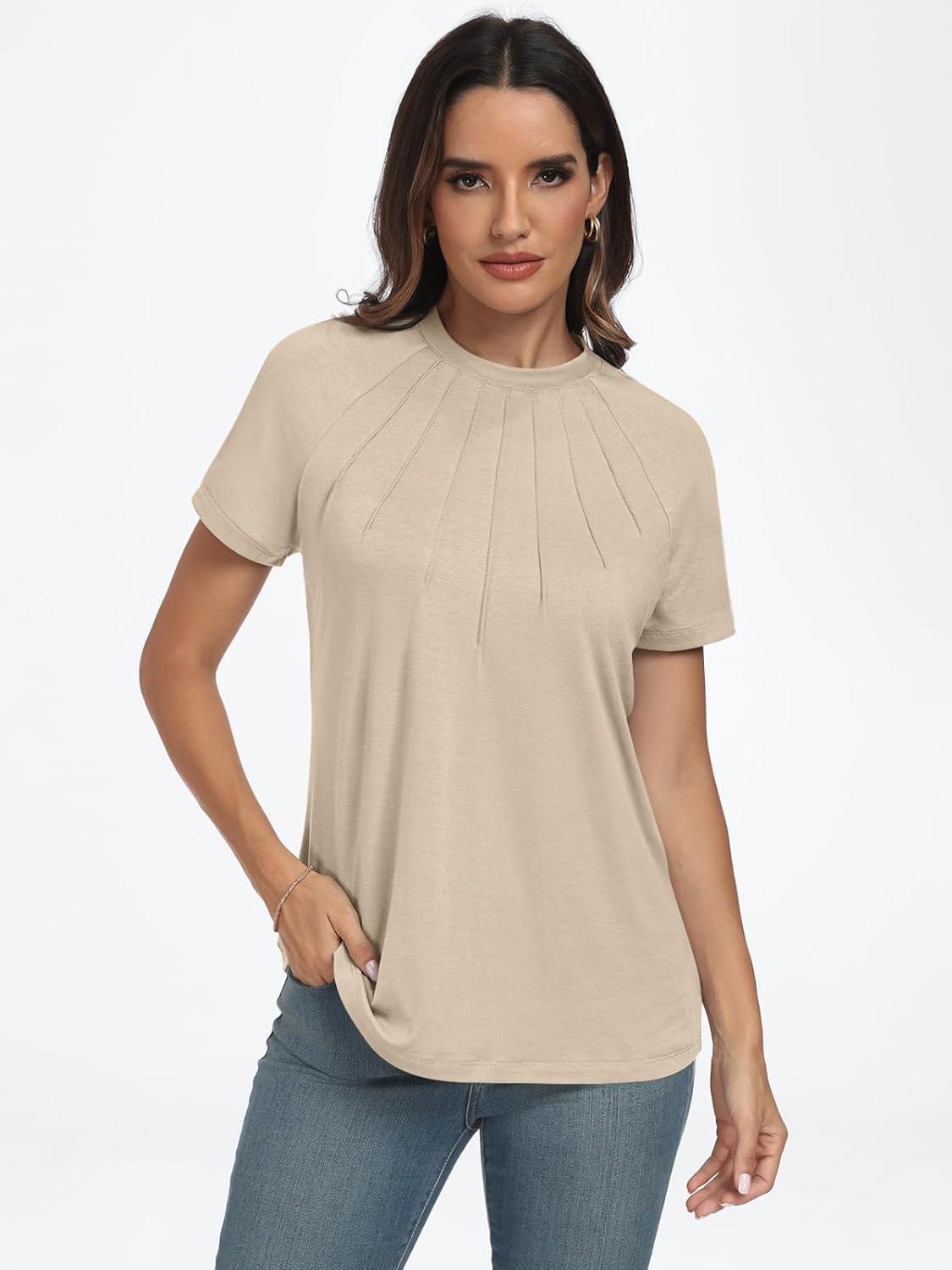 AUTOMET Womens Short Sleeve Shirts Business Casual Tops Summer Trendy Tshirts Dressy Tee Fashion Blouses Outfits 2025(Apricot)