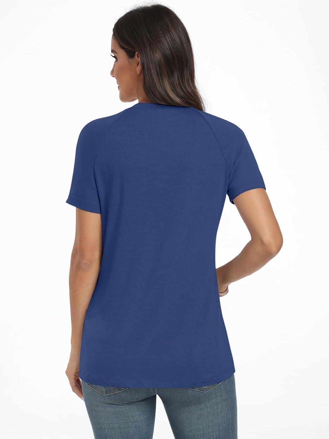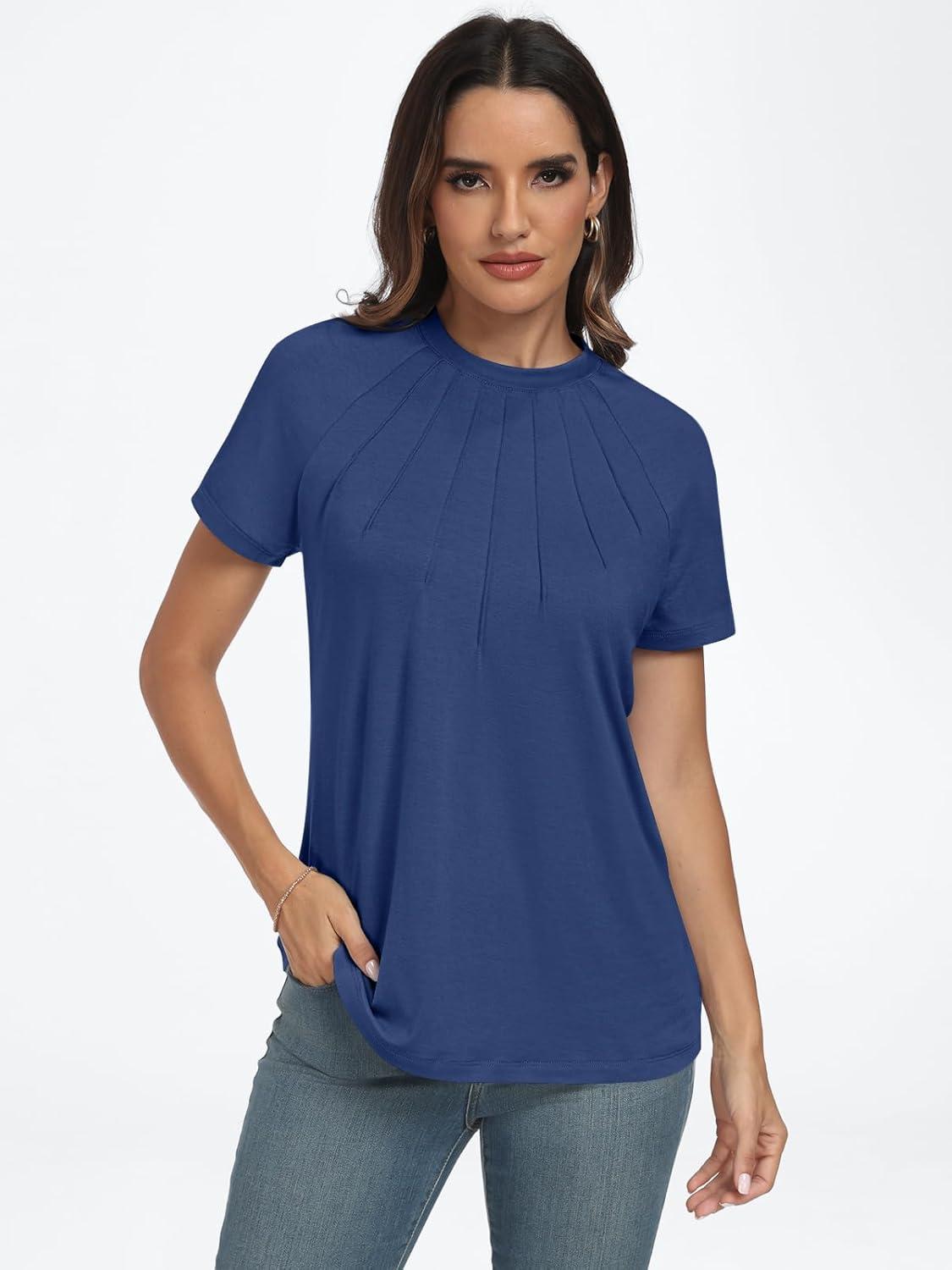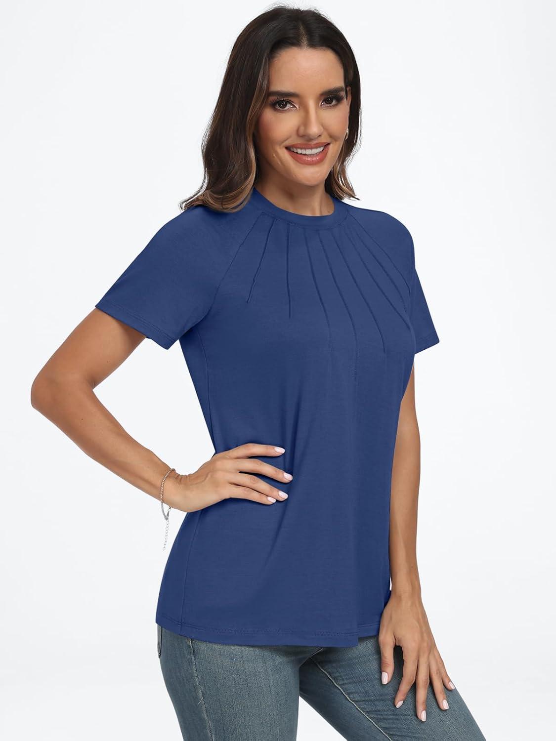 AUTOMET Womens Short Sleeve Shirts Business Casual Tops Summer Trendy Tshirts Dressy Tee Fashion Blouses Outfits 2025(Greyblue)