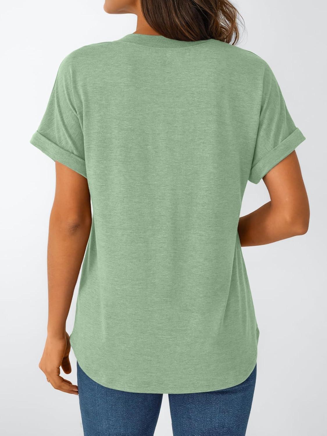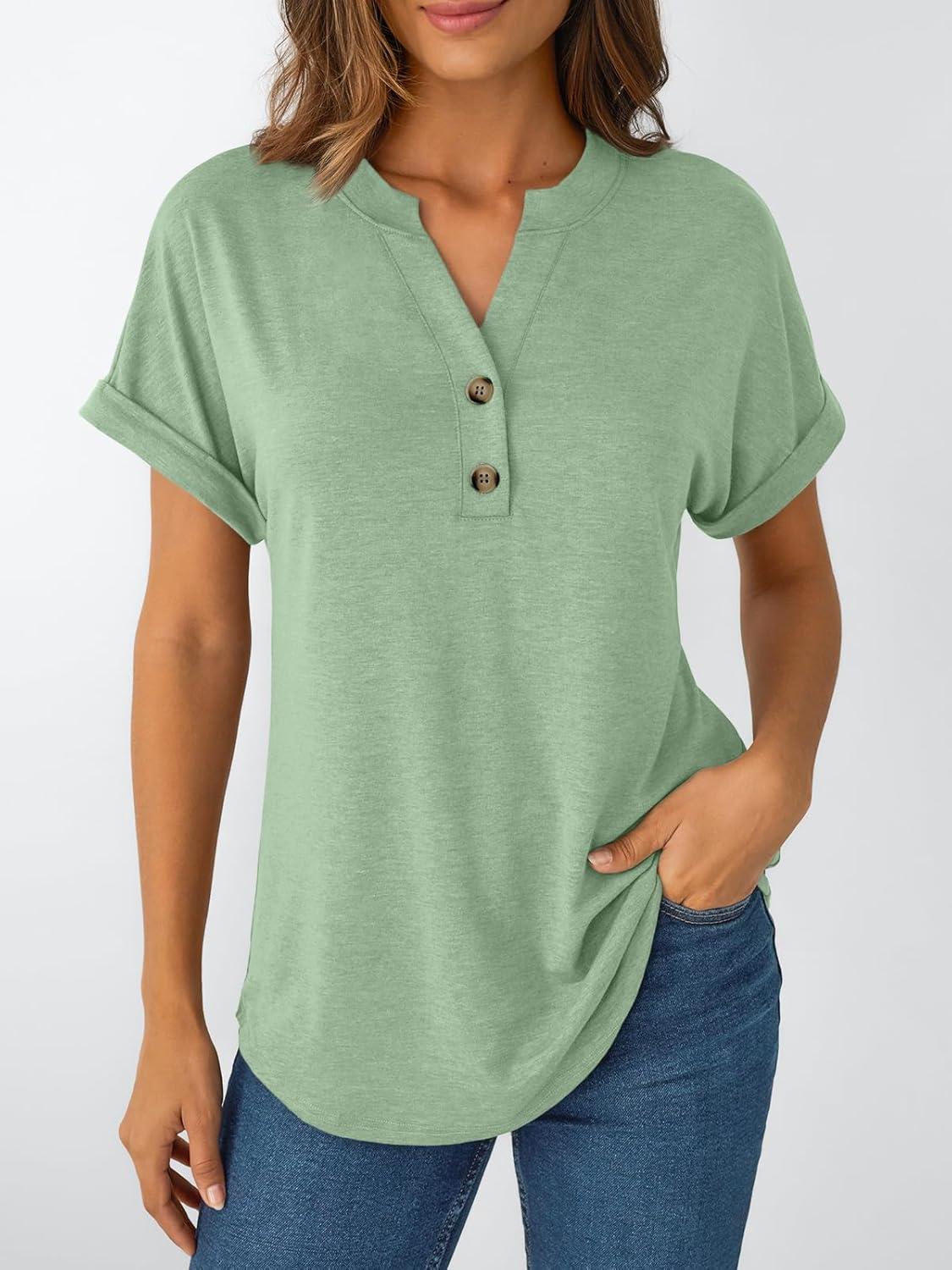 AUTOMET Women’s Short Sleeve Shirts Henley Dressy Casual Summer Tops 2026 Spring Fashion Trendy Cute T-Shirts(Light Green)
