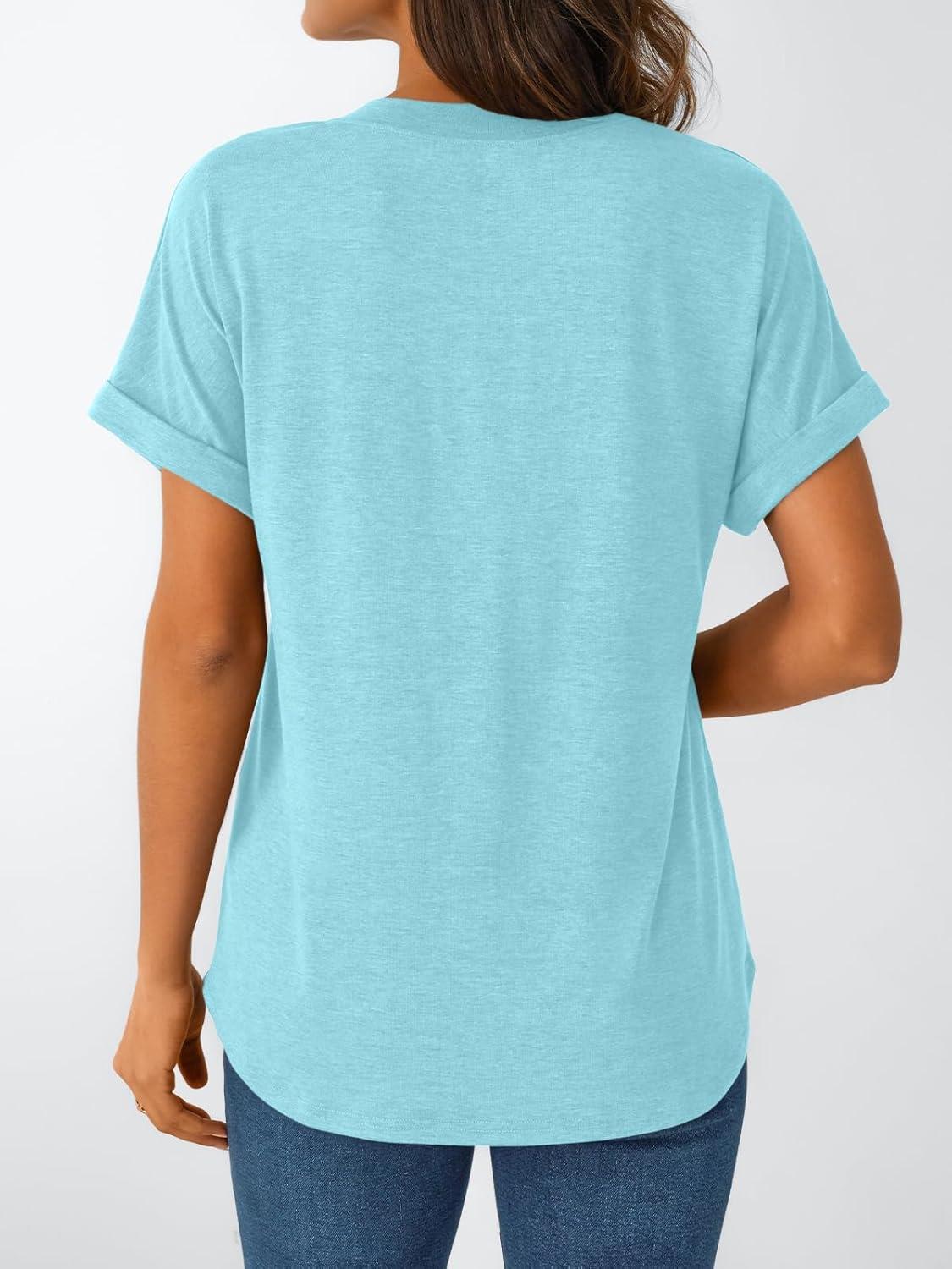 AUTOMET Women’s Short Sleeve Shirts Henley Dressy Casual Summer Tops 2026 Spring Fashion Trendy Cute T-Shirts(Sky)