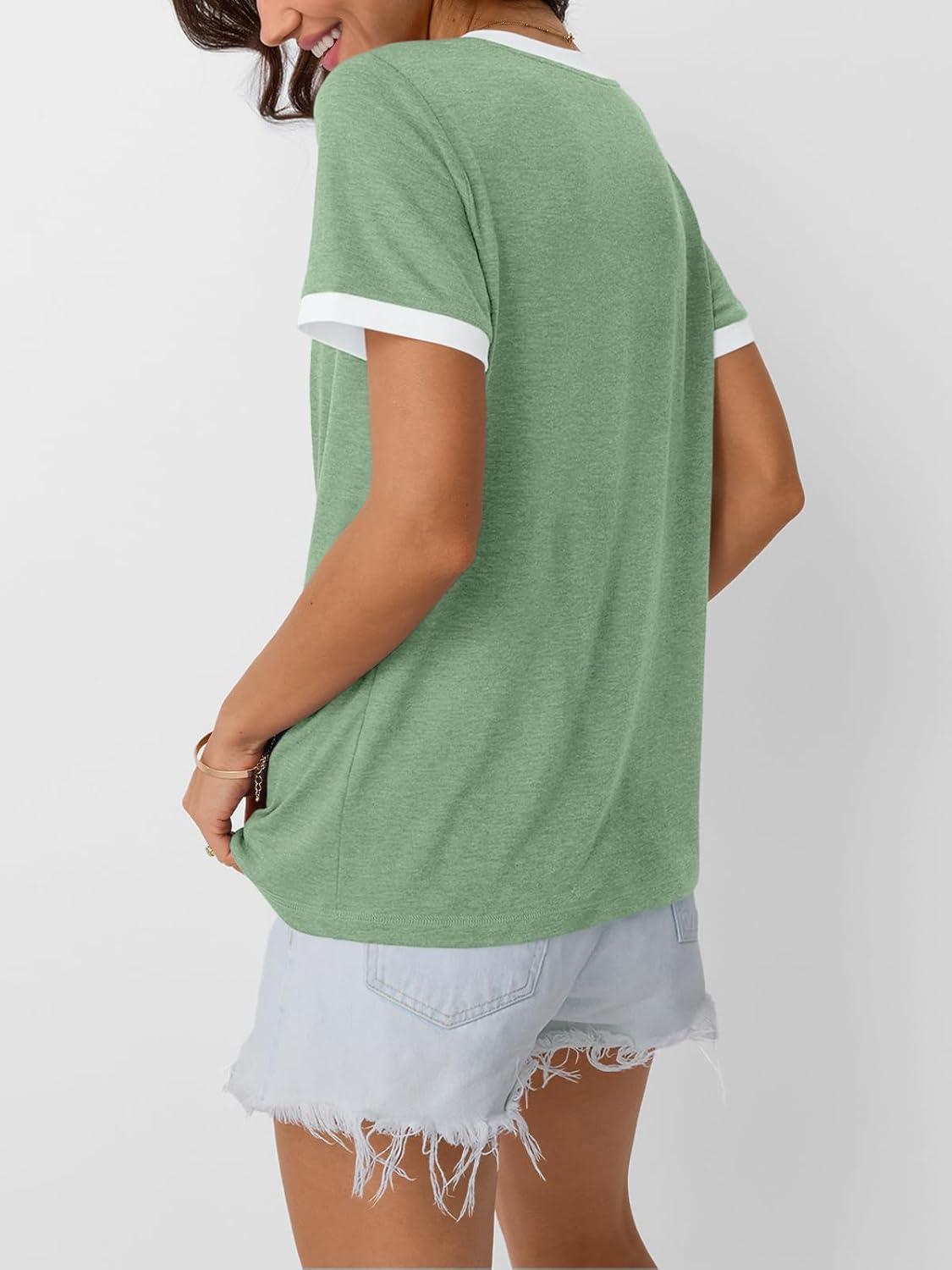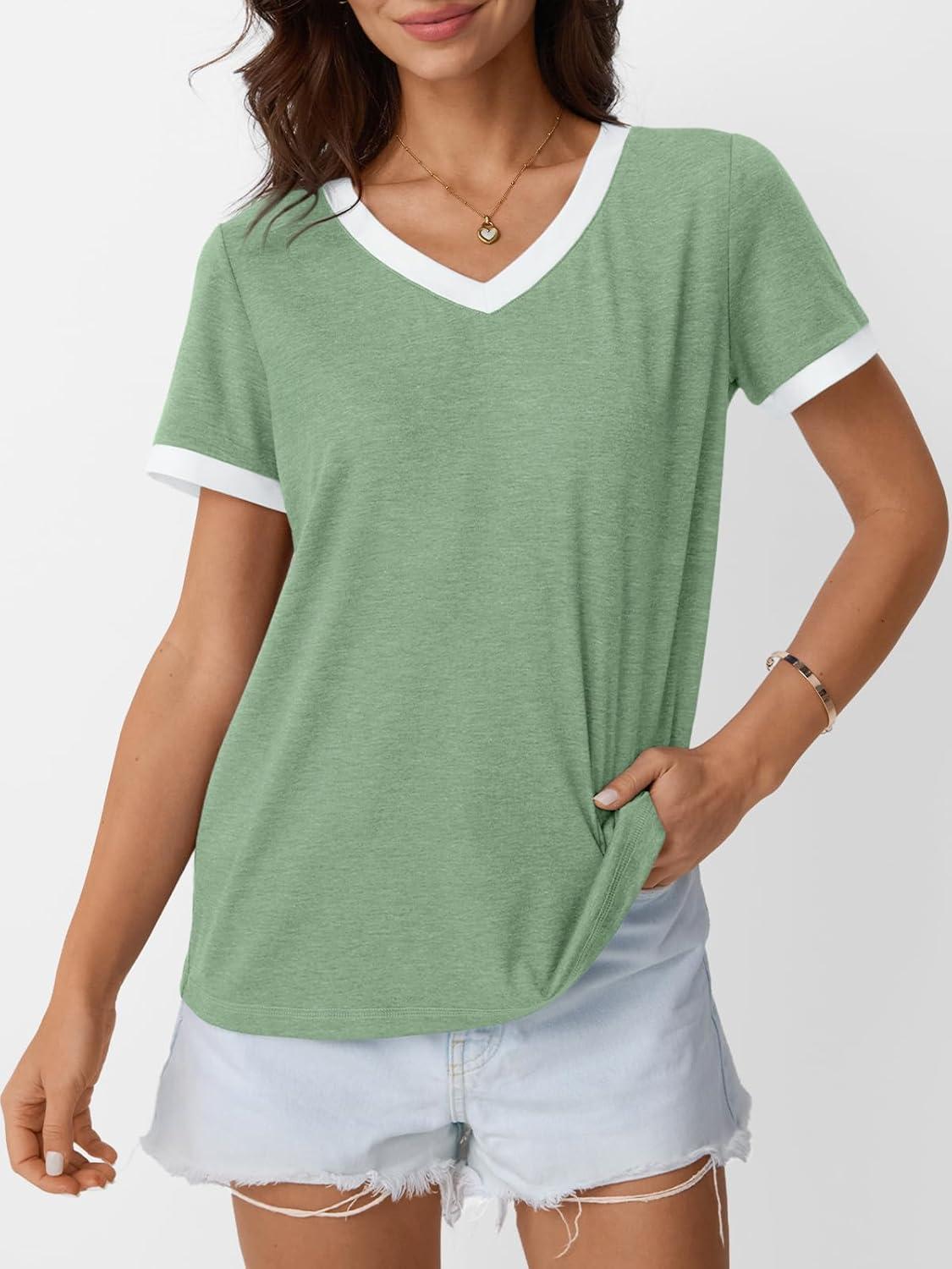 AUTOMET Womens Short Sleeve T-Shirts Summer Tops Casual Soft Tunic V Neck Basic Workout Clothes Spring Fashion Outfits 2025(Green)