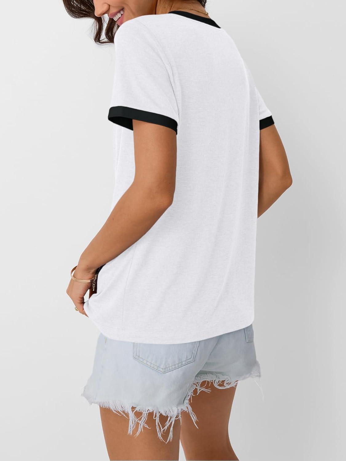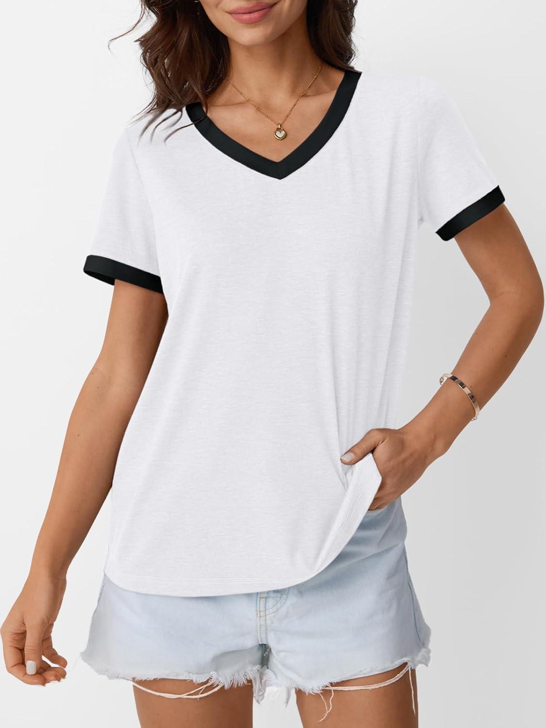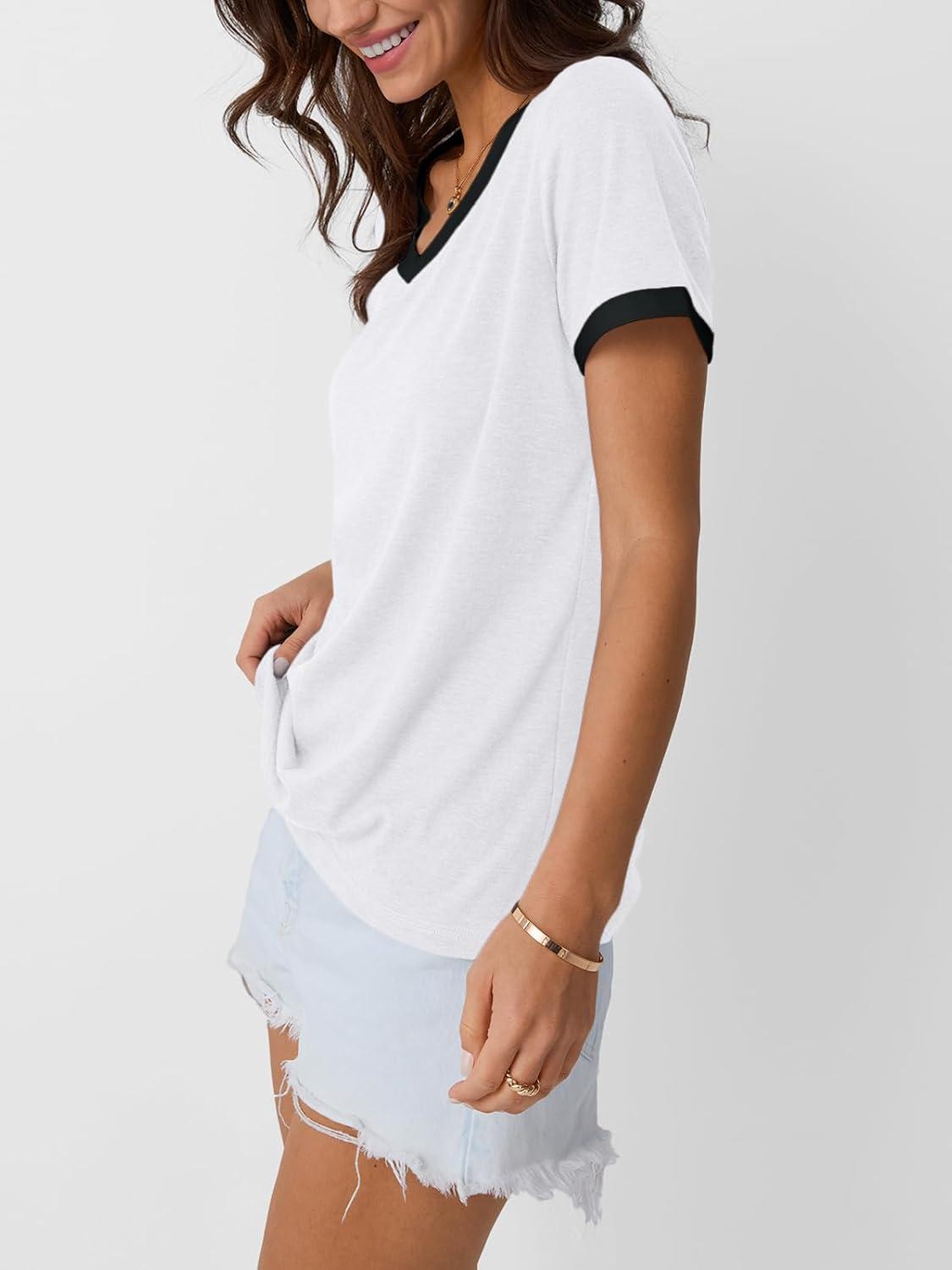 AUTOMET Womens Short Sleeve T-Shirts Summer Tops Casual Soft Tunic V Neck Basic Workout Clothes Spring Fashion Outfits 2025(White)