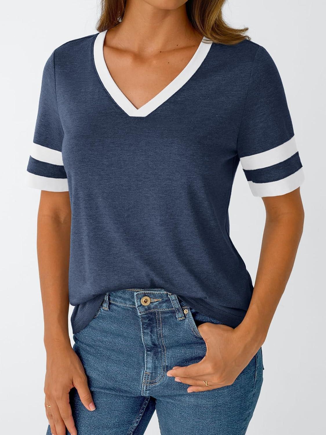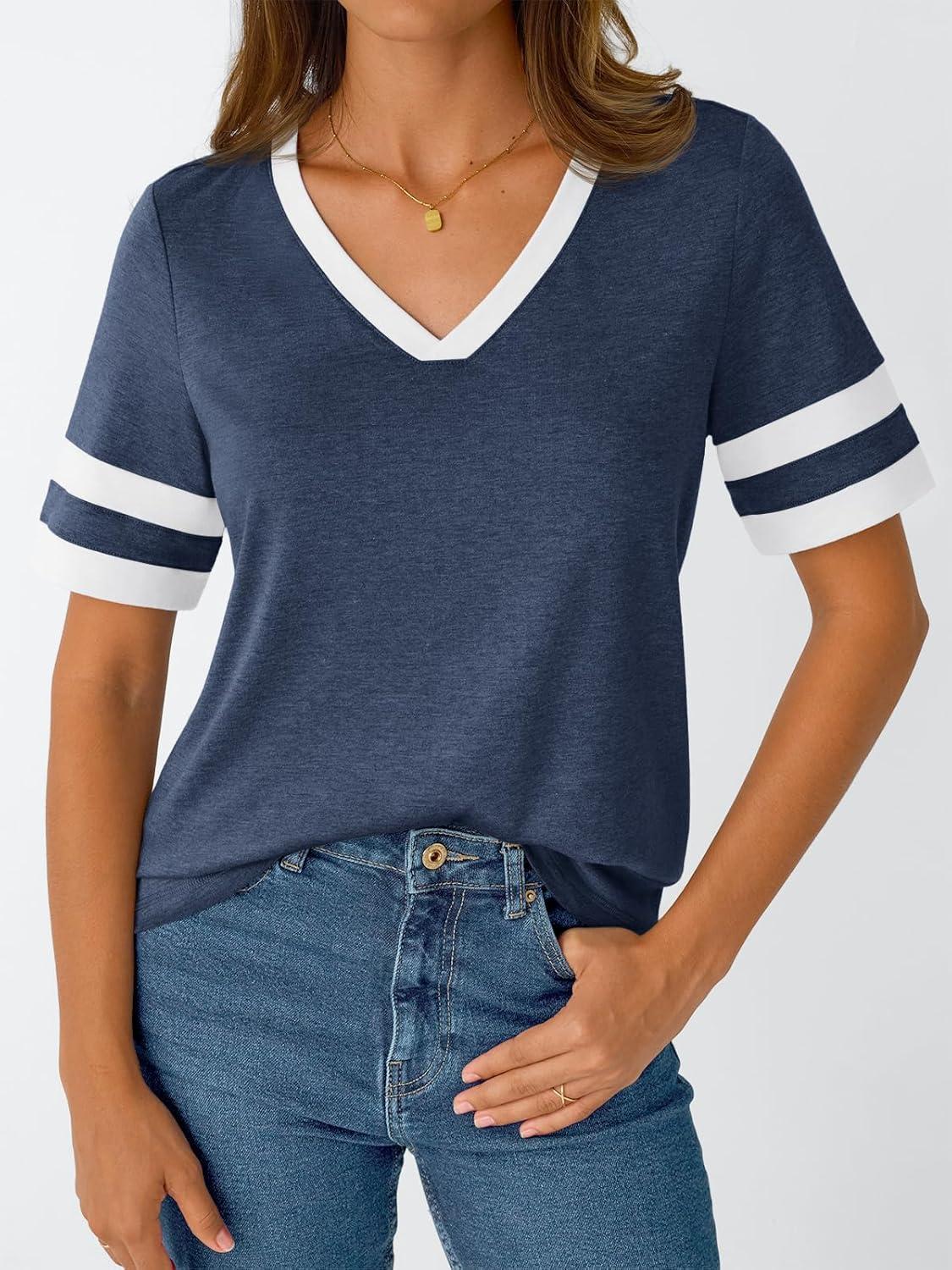 AUTOMET Women’s Short Sleeve V Neck T Shirts Trendy Casual Spring Tops Summer Fashion Tees Basic Clothes(Blue)