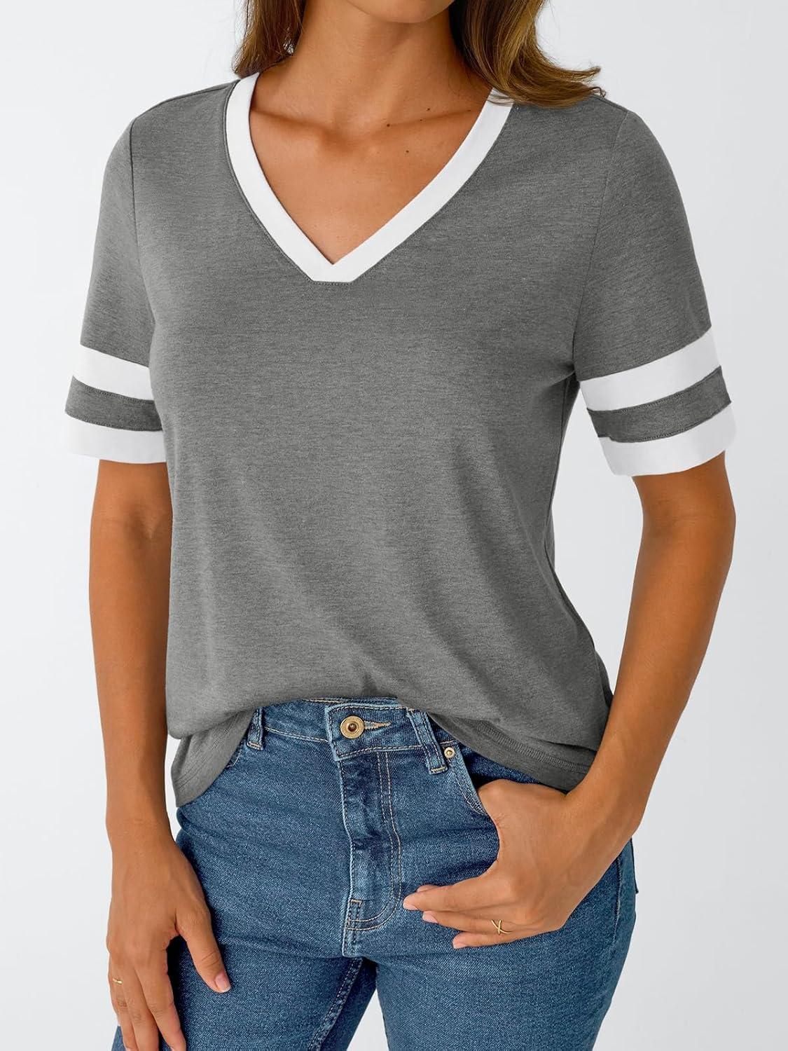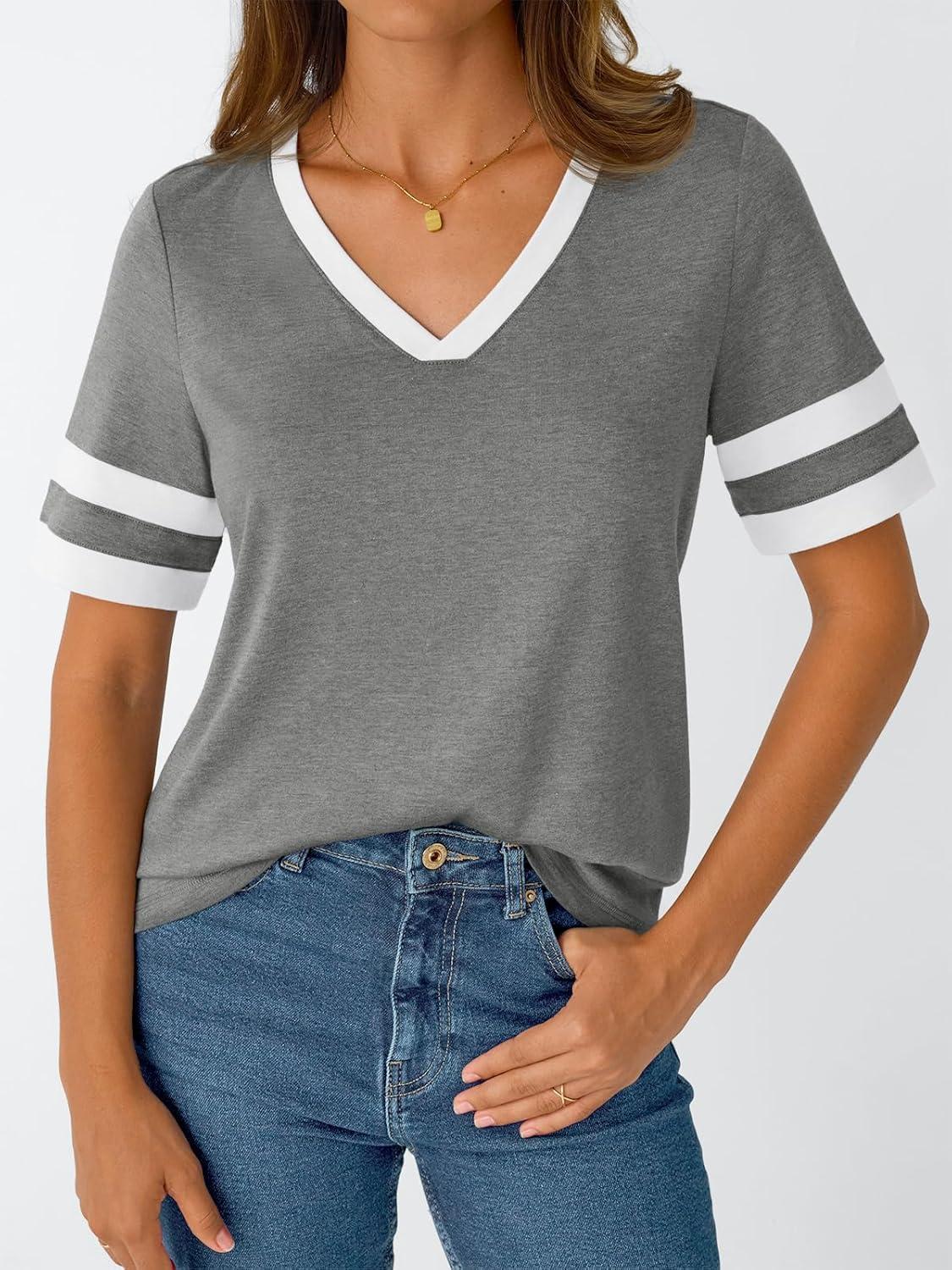 AUTOMET Women’s Short Sleeve V Neck T Shirts Trendy Casual Spring Tops Summer Fashion Tees Basic Clothes(Grey)