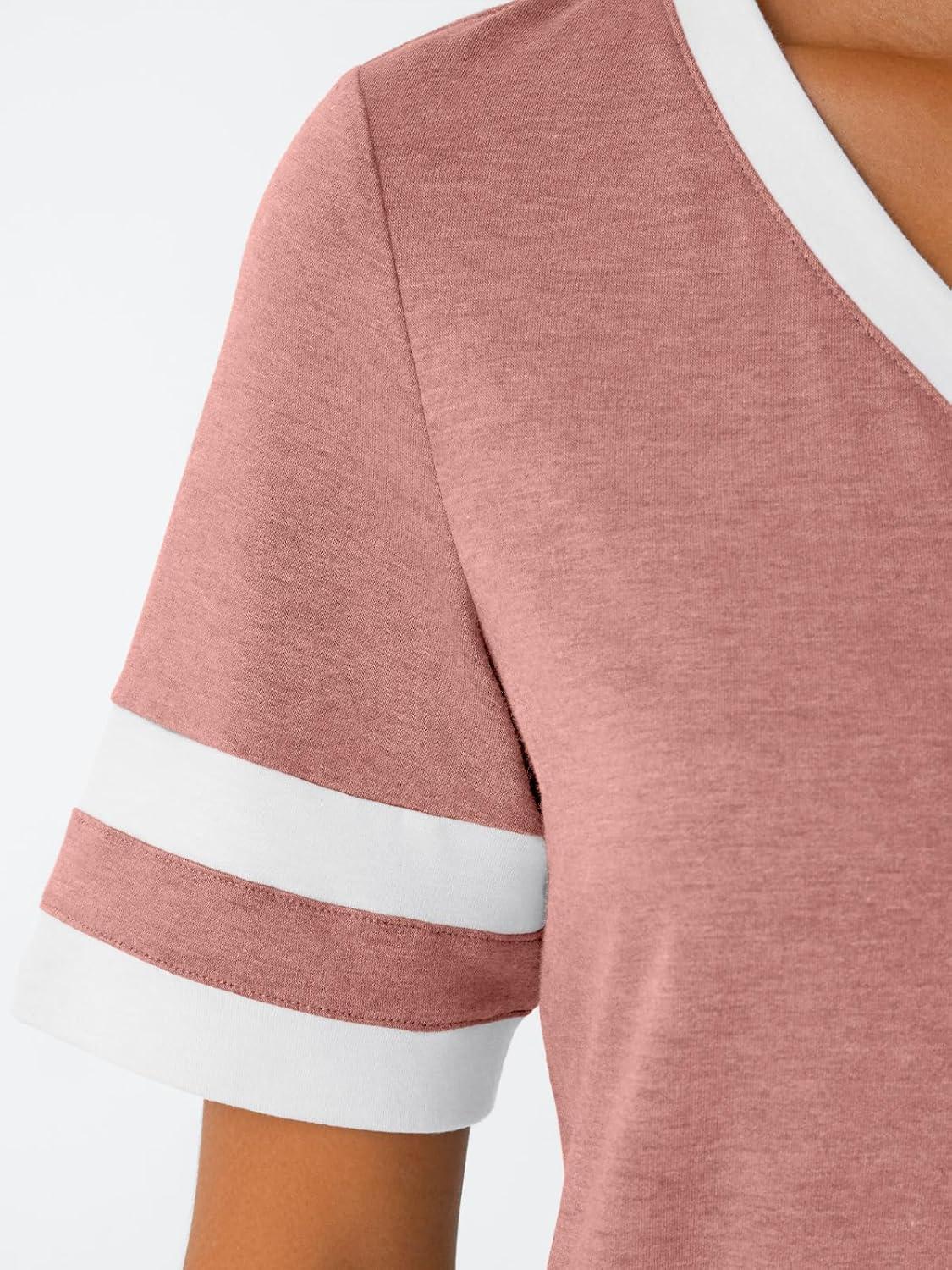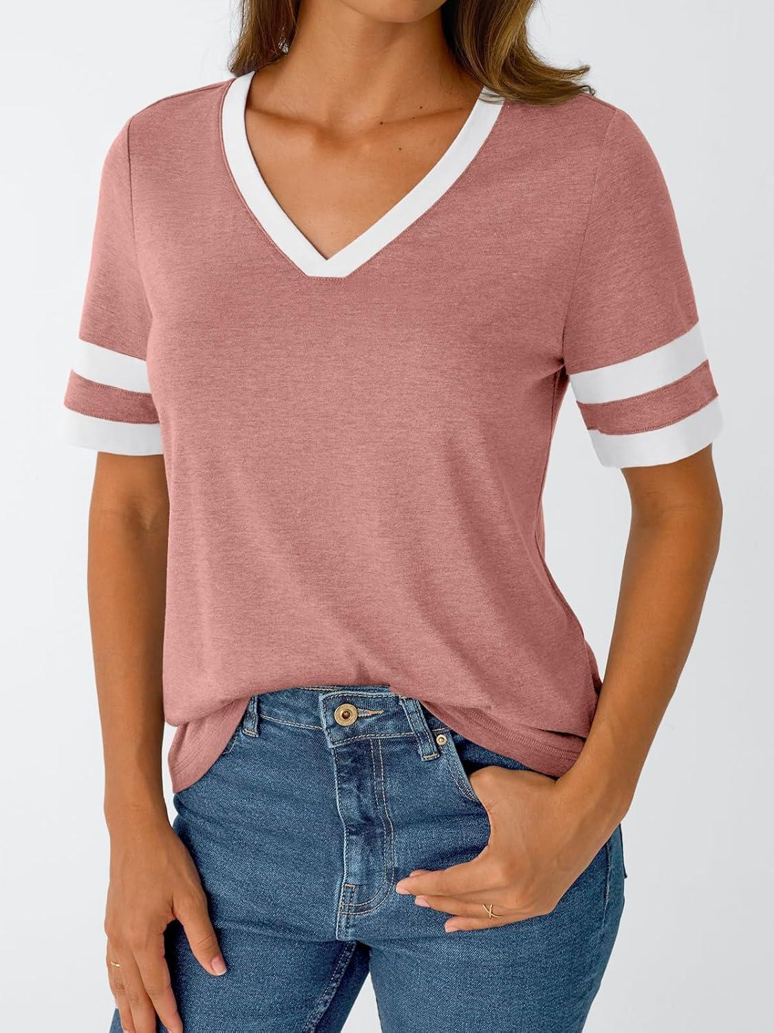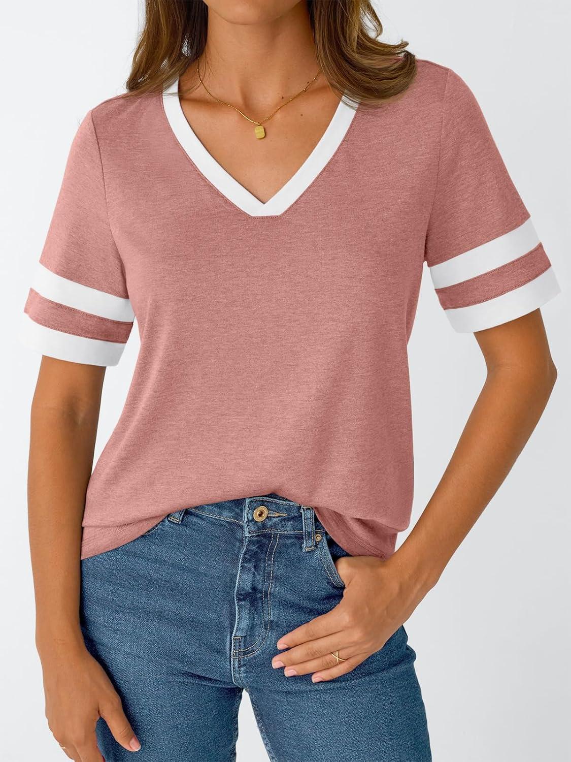 AUTOMET Women’s Short Sleeve V Neck T Shirts Trendy Casual Spring Tops Summer Fashion Tees Basic Clothes(Pink)