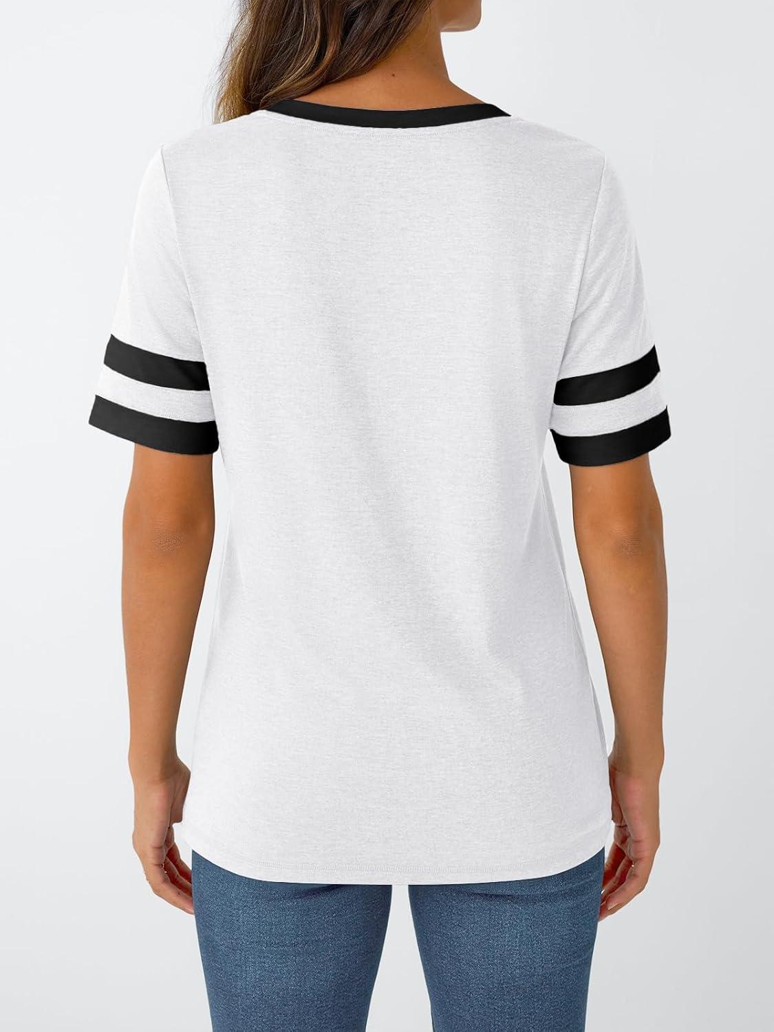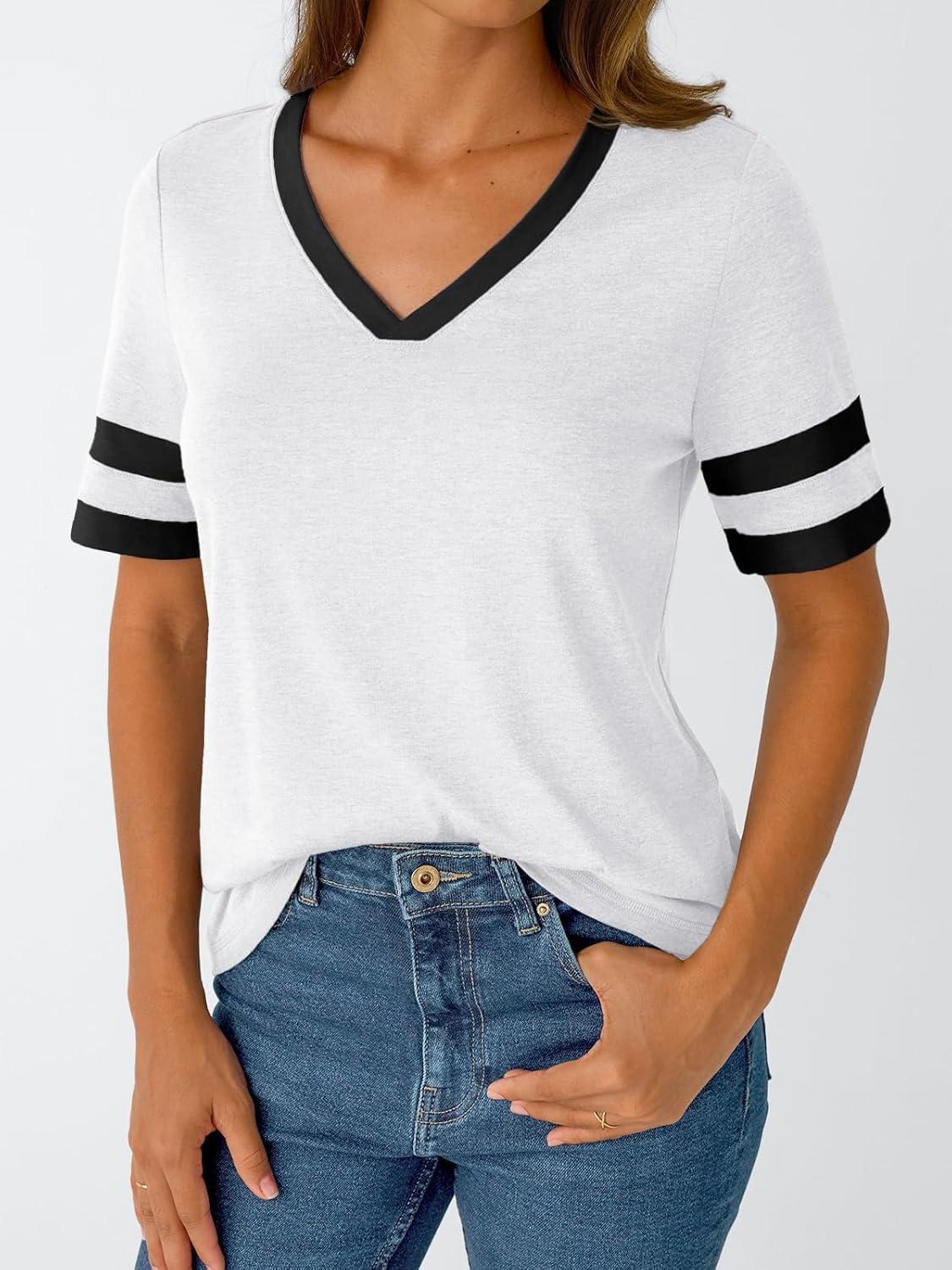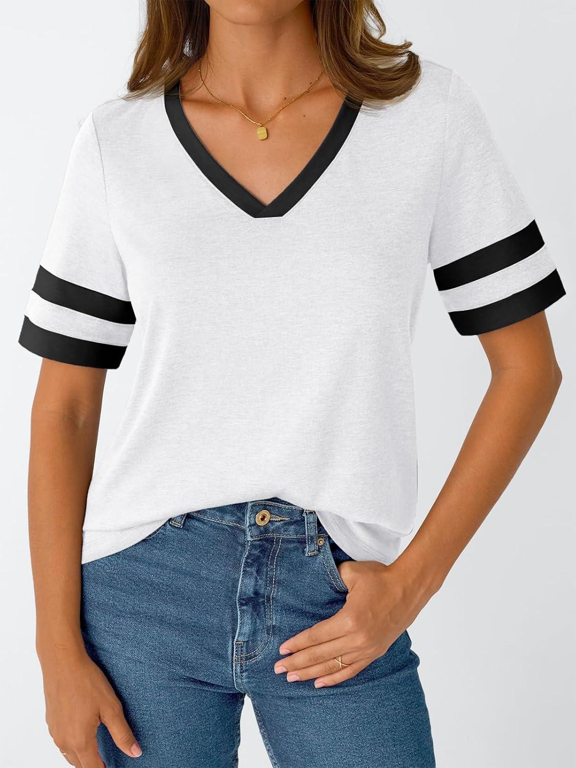 AUTOMET Women’s Short Sleeve V Neck T Shirts Trendy Casual Spring Tops Summer Fashion Tees Basic Clothes(White)