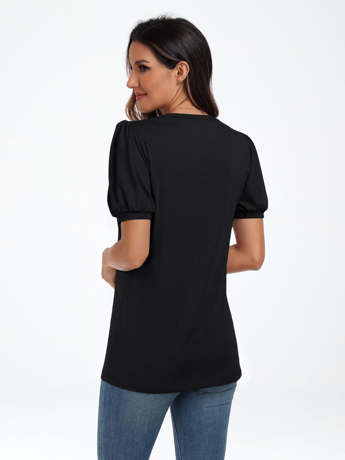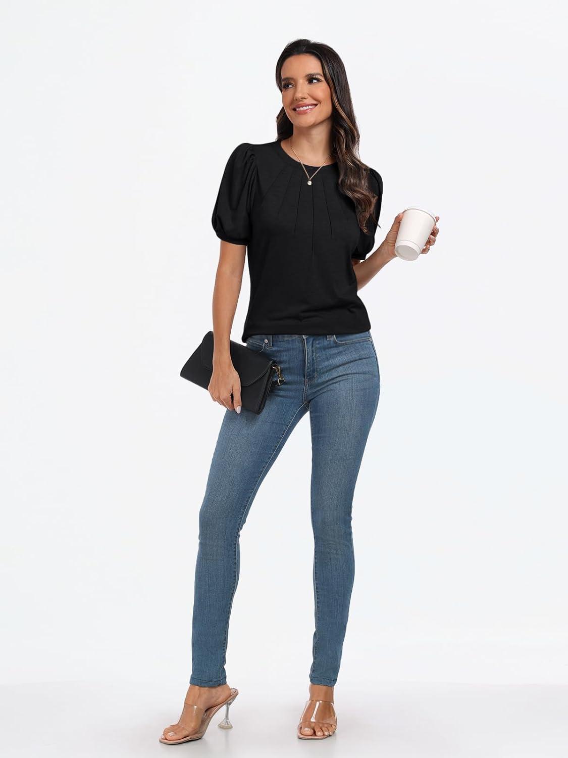 AUTOMET Womens Summer Tops Short Sleeve Shirts Business Casual Outfits Puff Dressy Blouses Spring Clothes 2025(Black)