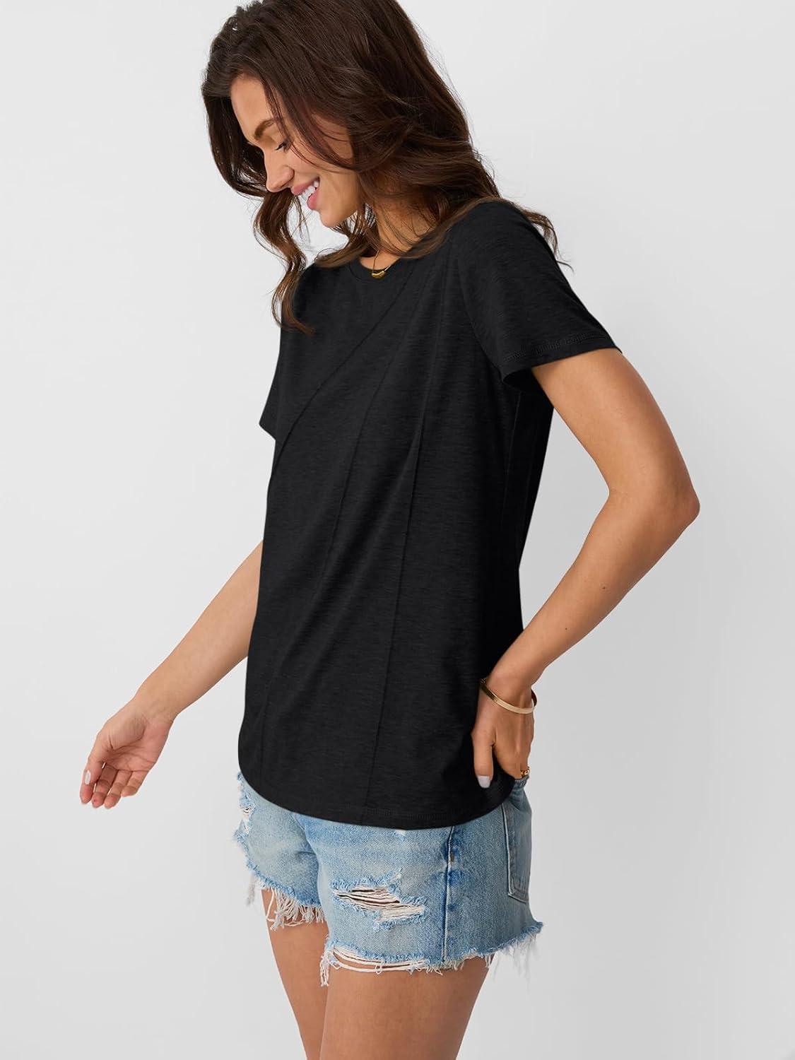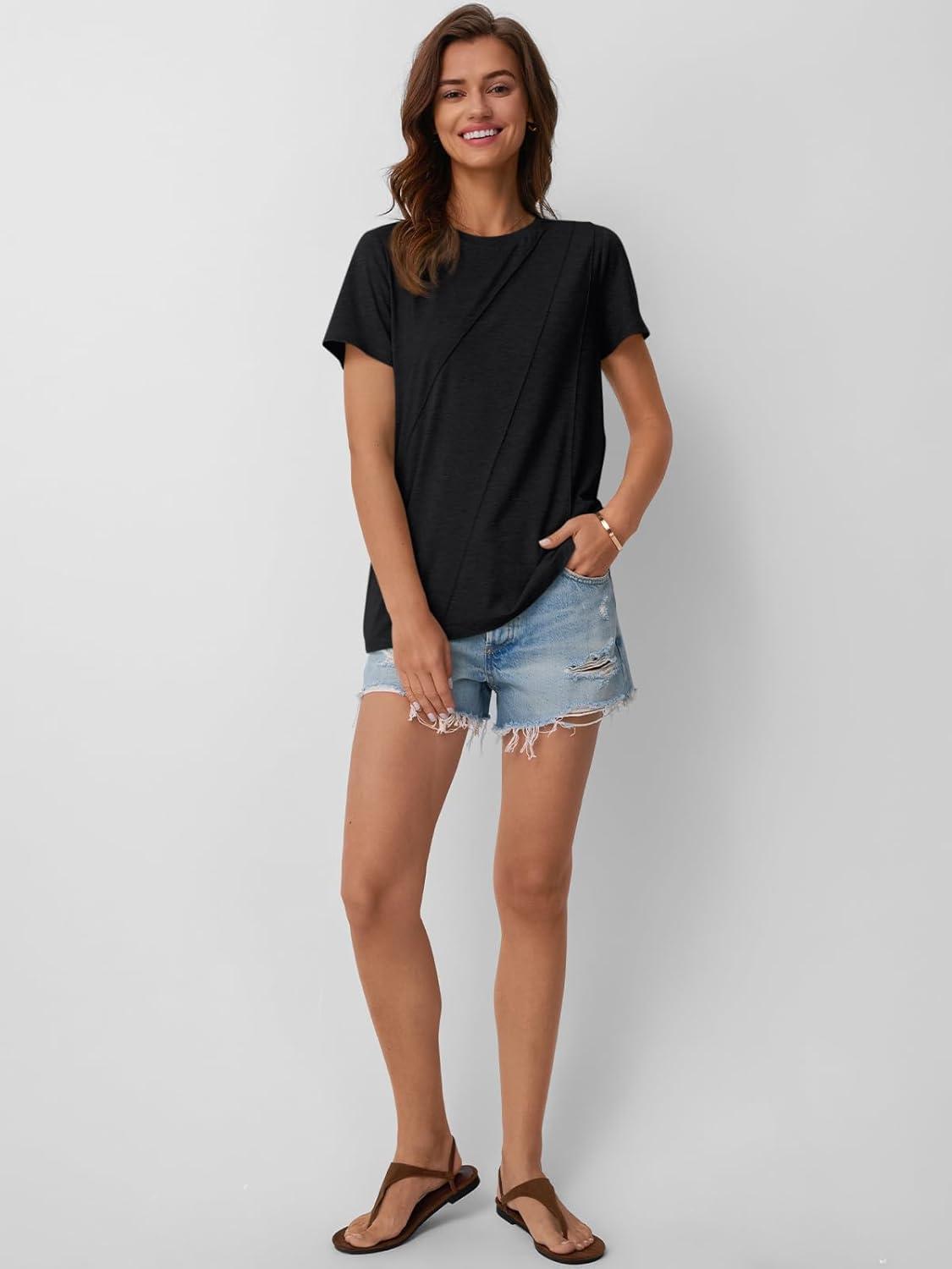 AUTOMET Womens Summer Tops Workout Shirts Beach Vacation Outfits Business Tshirts Dressy Fashion Spring Clothes 2025(Black)