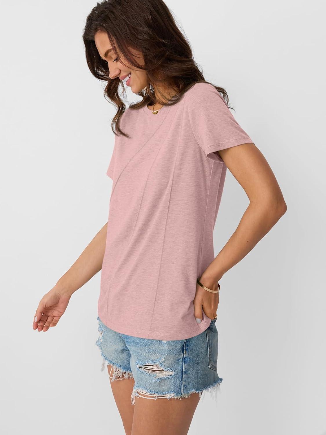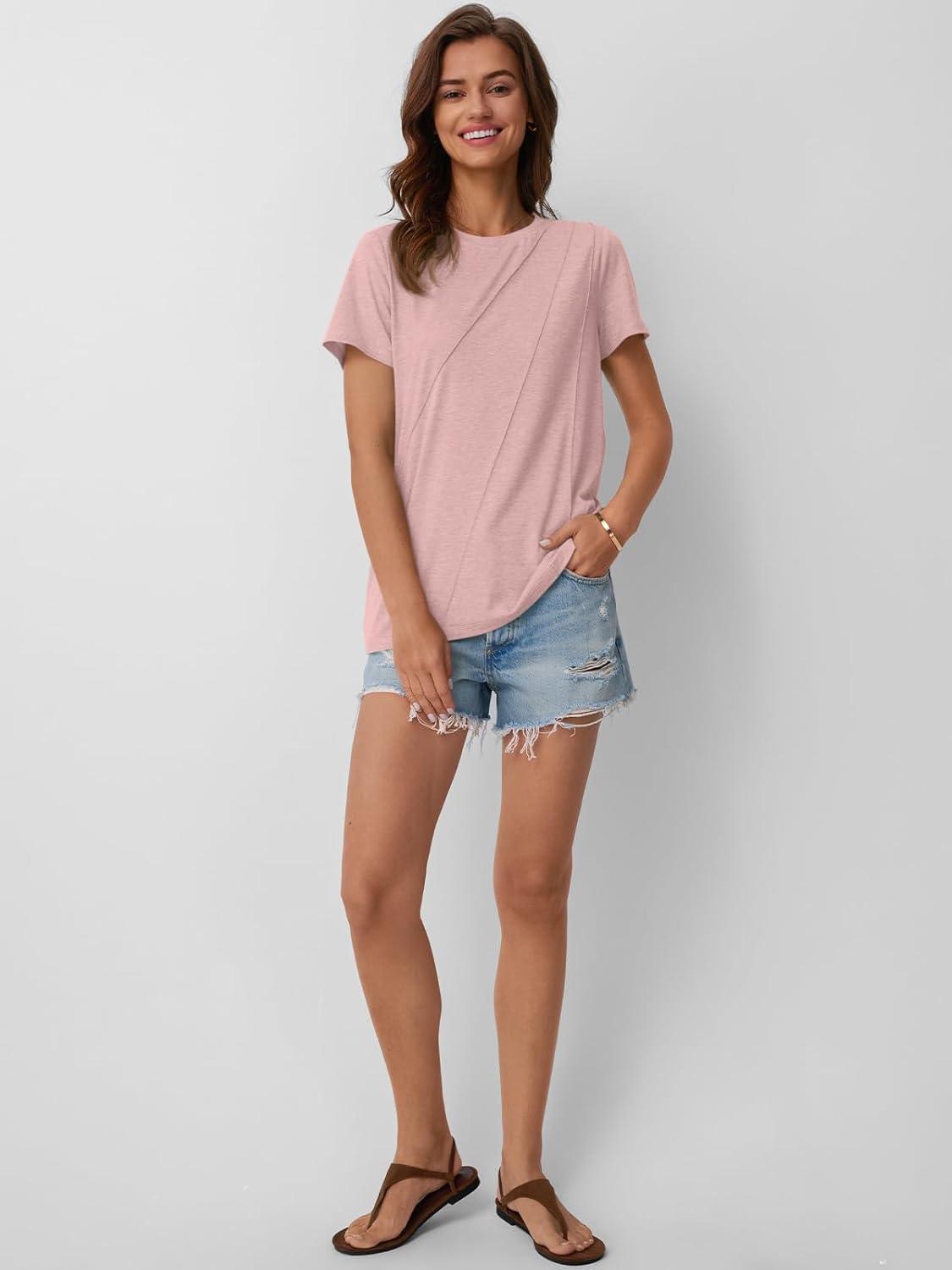 AUTOMET Womens Summer Tops Workout Shirts Beach Vacation Outfits Business Tshirts Dressy Fashion Spring Clothes 2025(Pink)