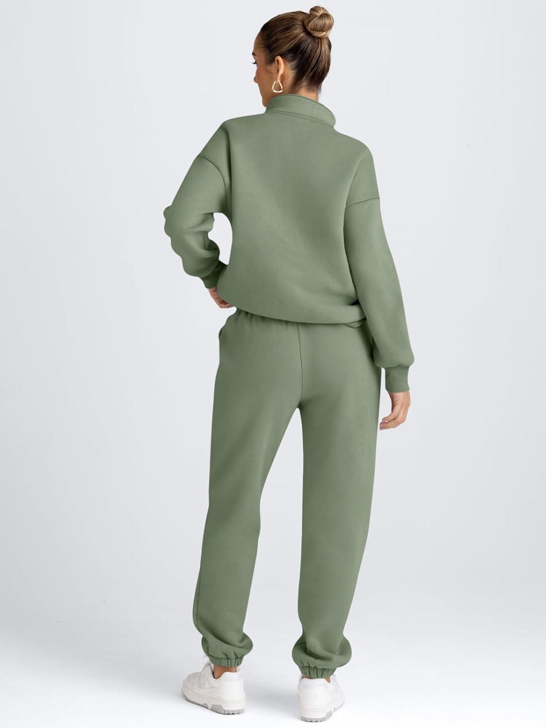 AUTOMET Women’s Sweatsuits 2 Piece Outfits Lounge Sets Long Sleeve Half Zip Pullover and Baggy Sweatpants with Pockets(Green)