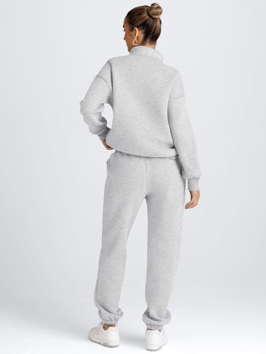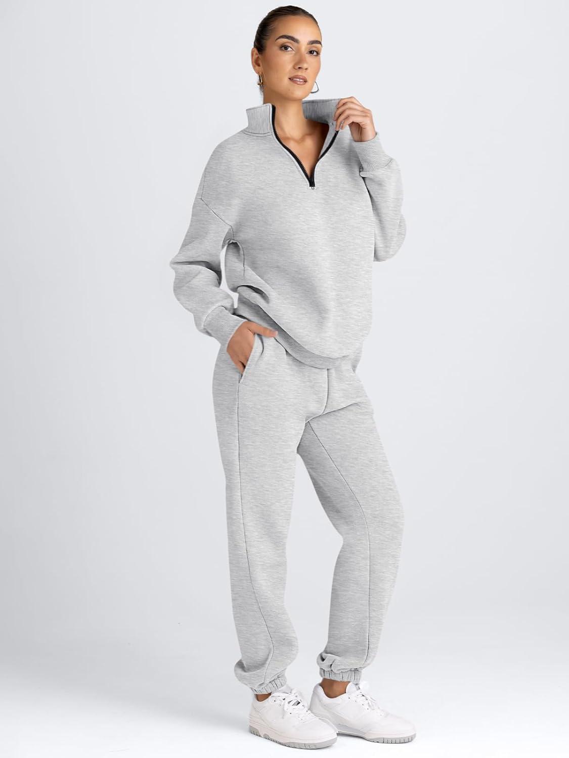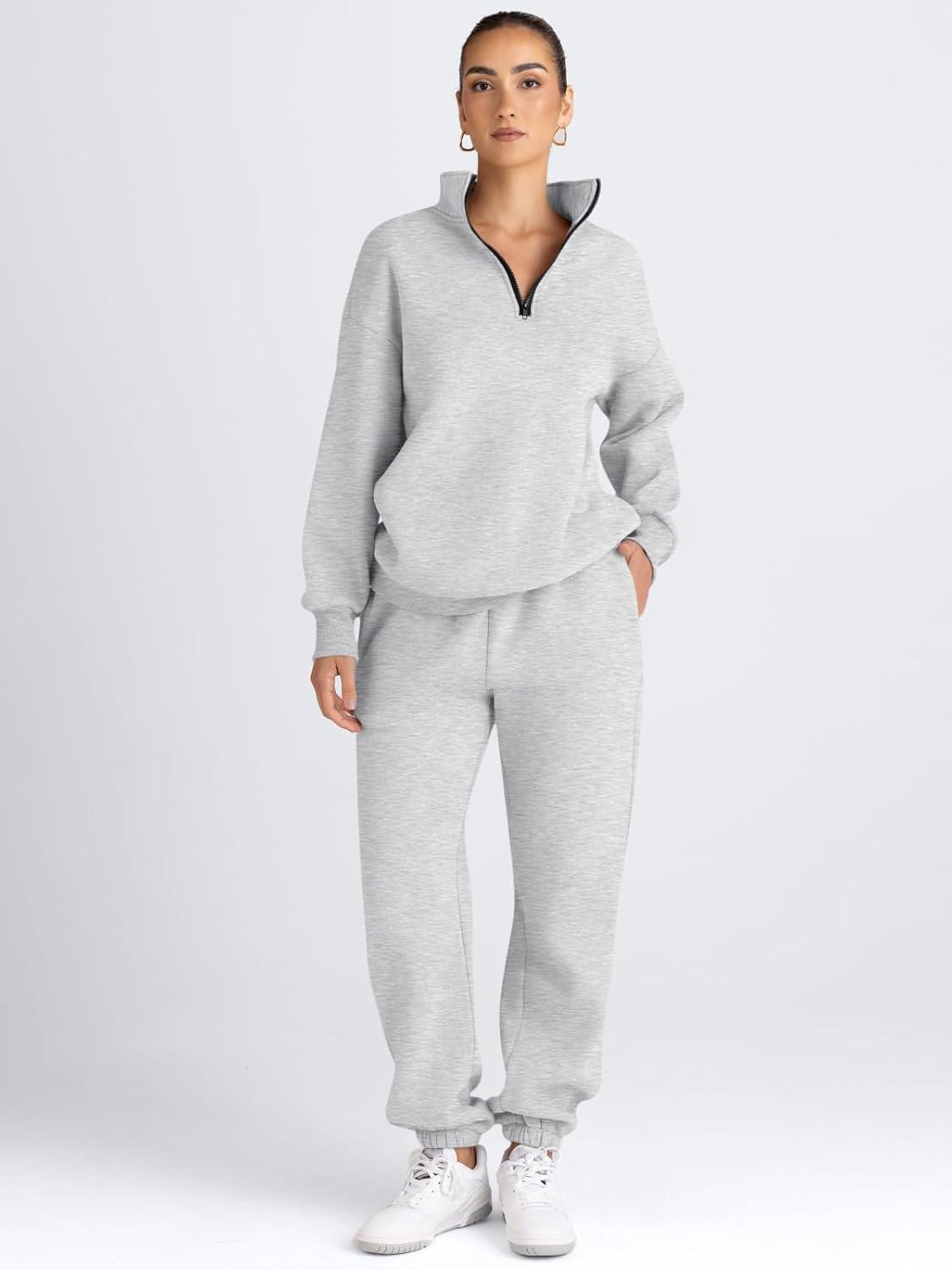 AUTOMET Women’s Sweatsuits 2 Piece Outfits Lounge Sets Long Sleeve Half Zip Pullover and Baggy Sweatpants with Pockets(Grey)