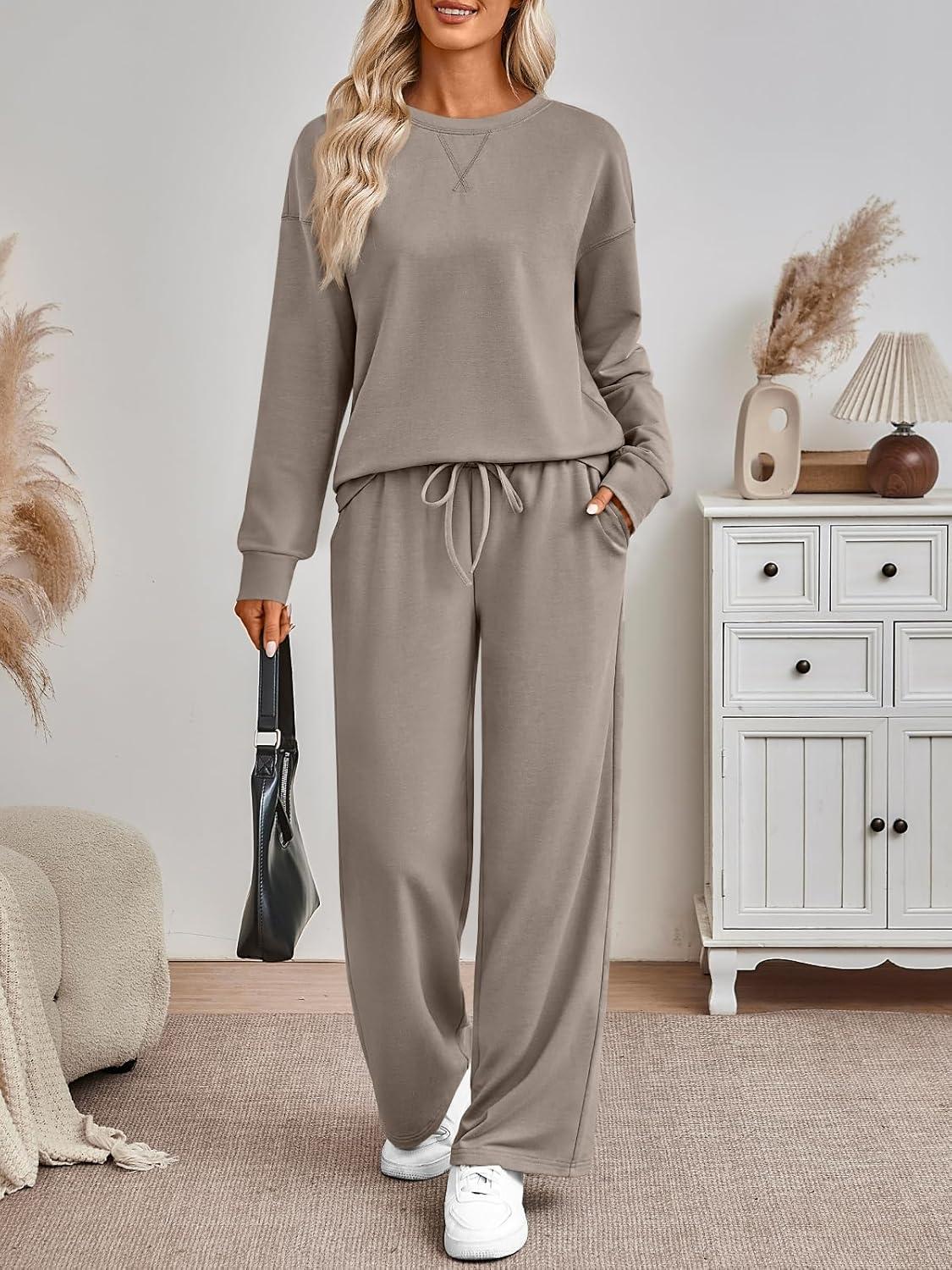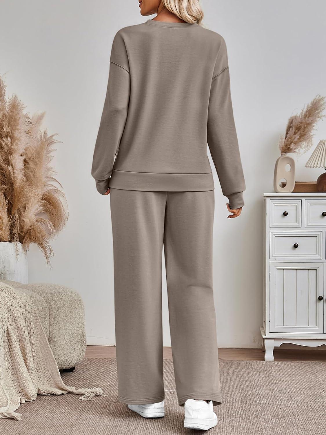 AUTOMET Womens Sweatsuits 2 Piece Sets Travel Outfits 2025 Fall Matching Lounge Set Oversized Sweatshirt Wide Leg Pants(Coffeegrey)