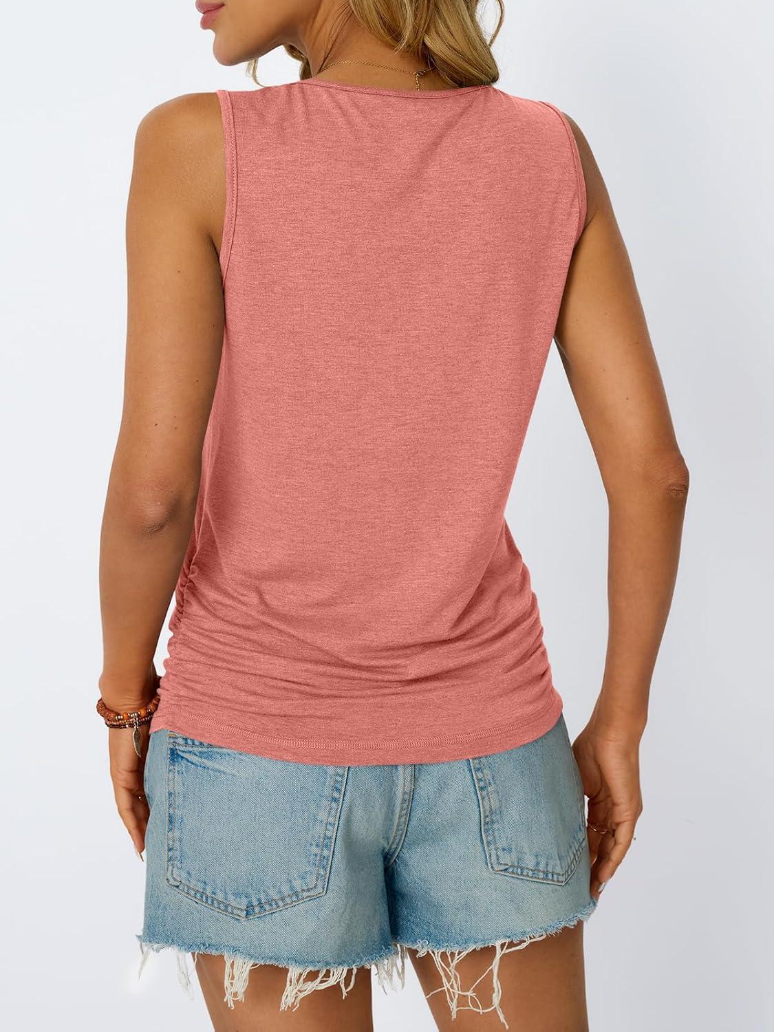AUTOMET Womens Tank Tops 2025 Sleeveless Square Round Neck Ruched Spring Summer Tee Shirts Basic Outfits Trendy Clothes(Coral)