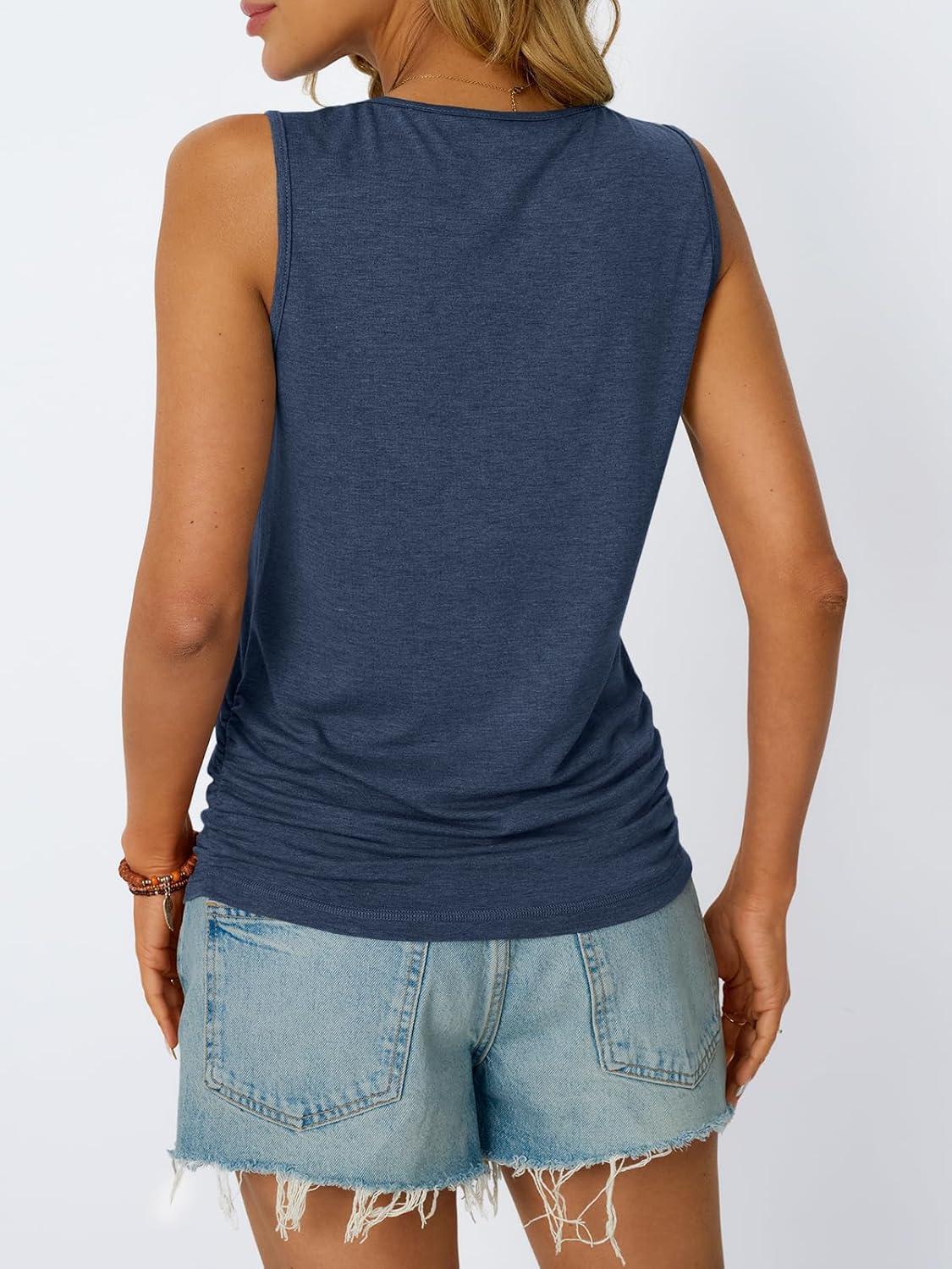 AUTOMET Womens Tank Tops 2025 Sleeveless Square Round Neck Ruched Spring Summer Tee Shirts Basic Outfits Trendy Clothes(Darkblue)