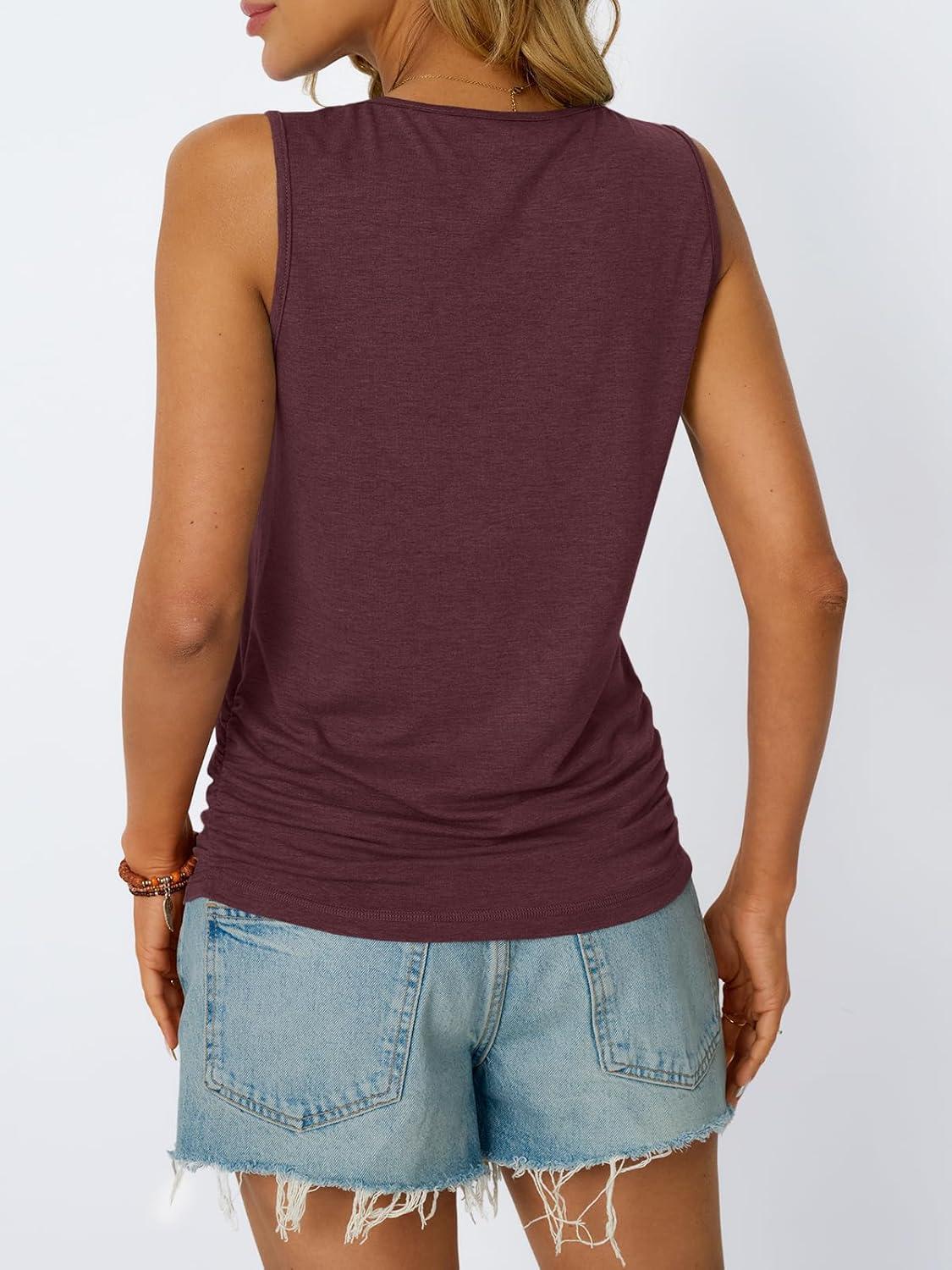 AUTOMET Womens Tank Tops 2025 Sleeveless Square Round Neck Ruched Spring Summer Tee Shirts Basic Outfits Trendy Clothes(Winered)