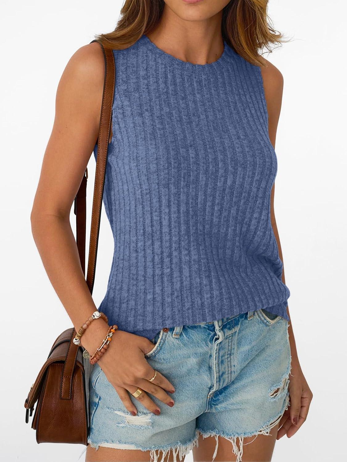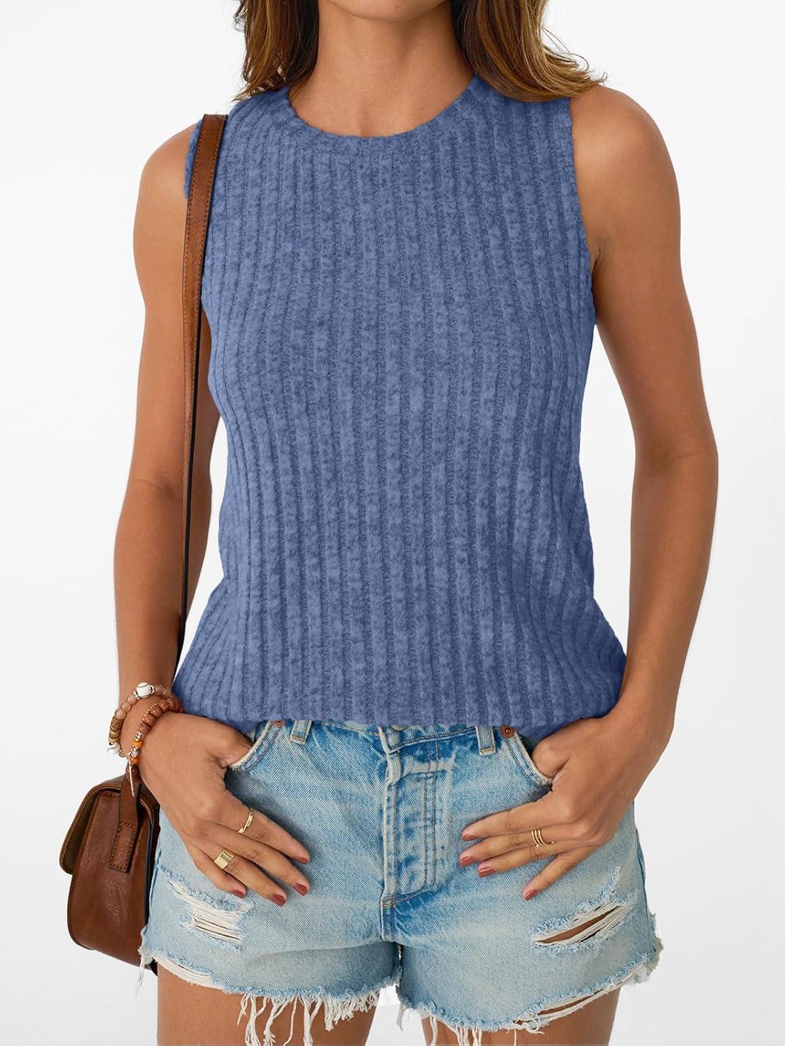 AUTOMET Womens Tank Tops Sleeveless Tunic Shirts Summer Fashion Basic Soft Clothes 2025 Casual Trendy Vacation Spring Outfits(Darkblue)
