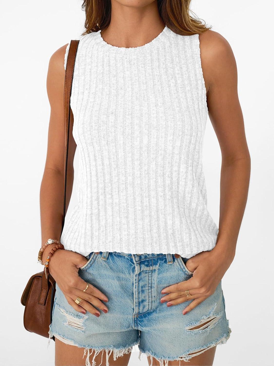 AUTOMET Womens Tank Tops Sleeveless Tunic Shirts Summer Fashion Basic Soft Clothes 2025 Casual Trendy Vacation Spring Outfits(White)