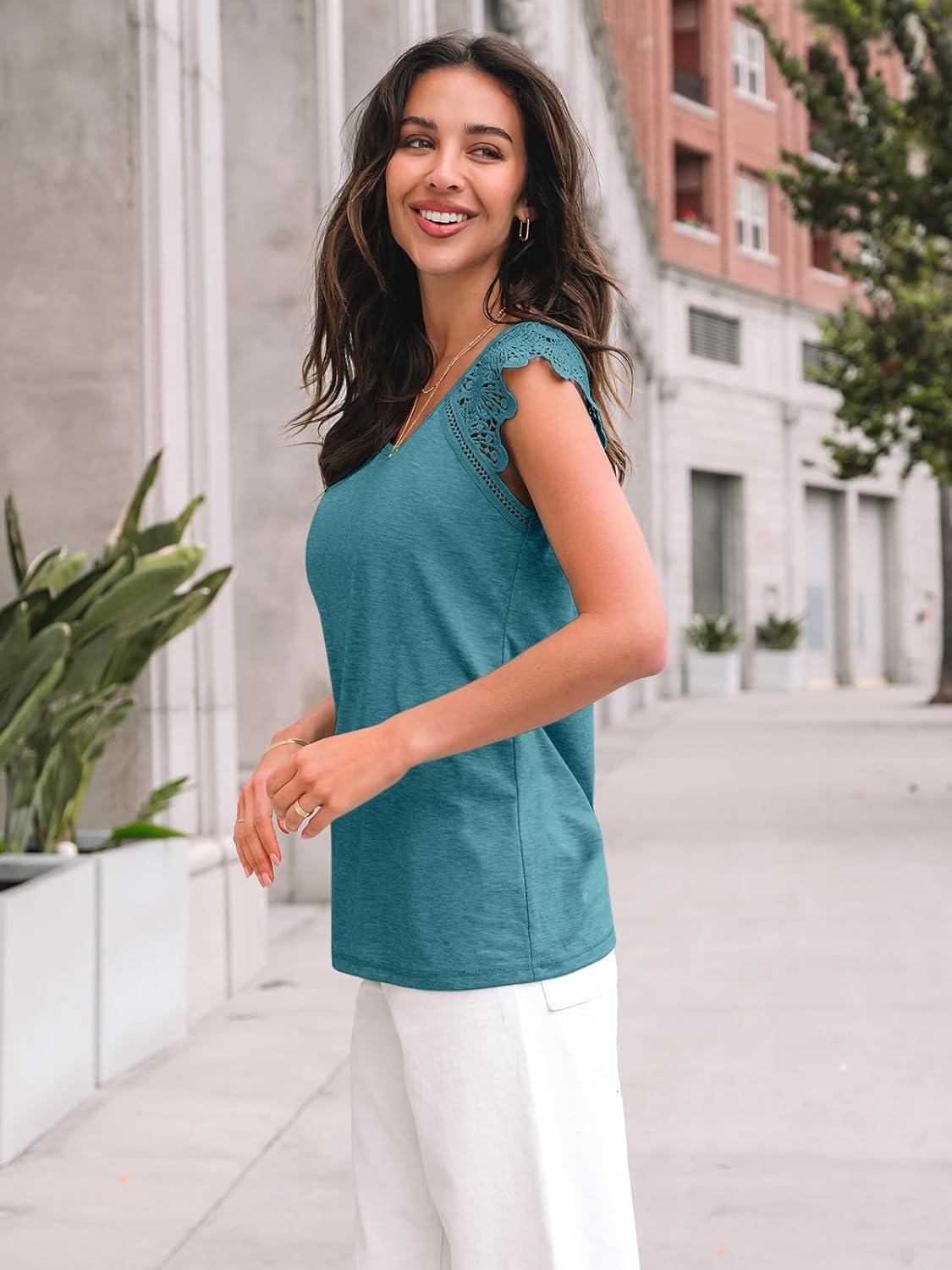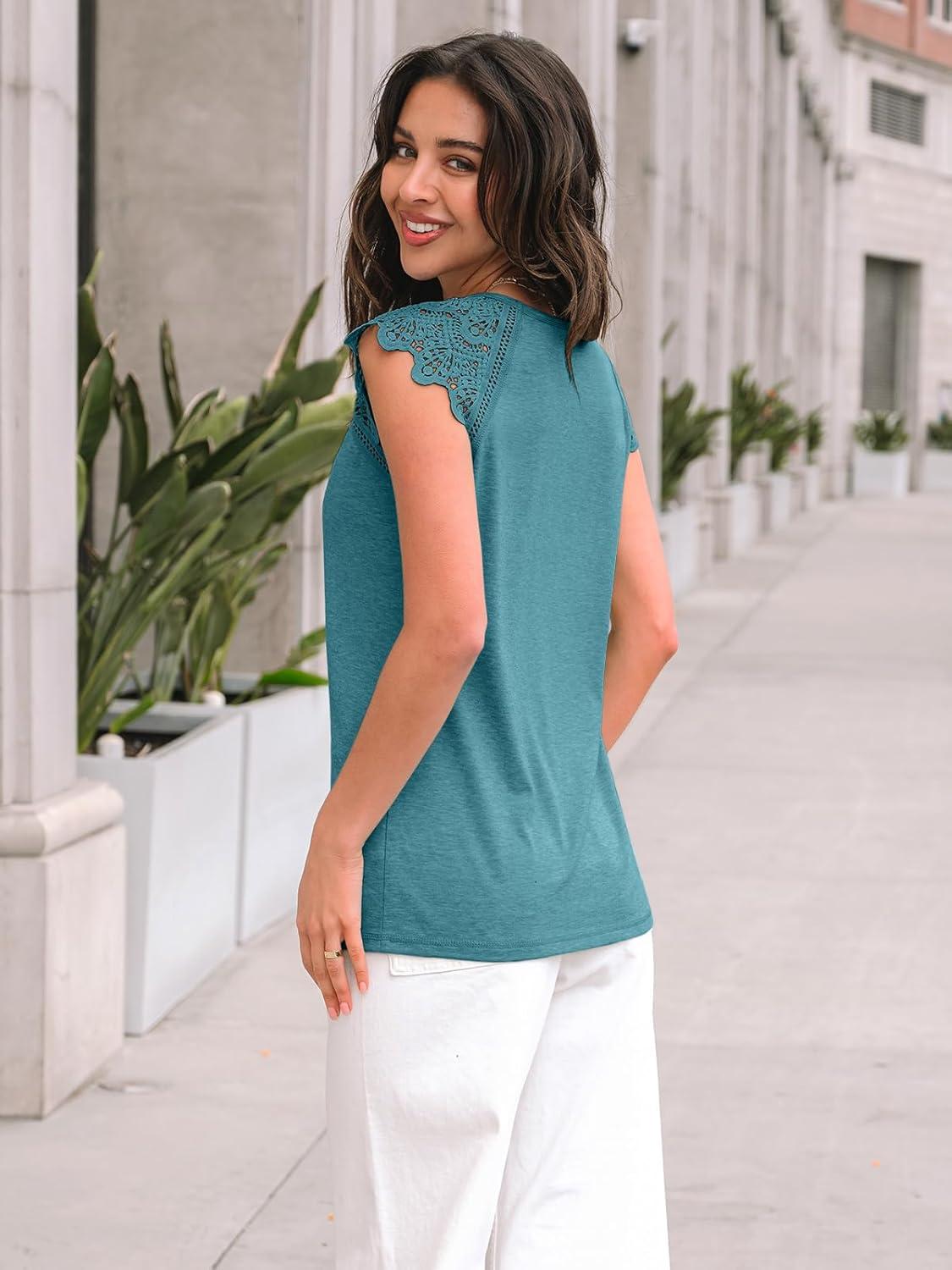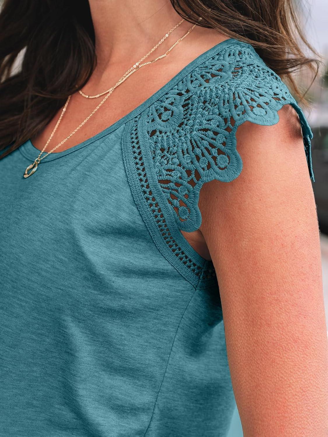 AUTOMET Womens Tops Casual Dressy Lace Summer Tee 2025 Cap Sleeve T Shirts Cute Basic Trendy Fashion Spring Outfits(Bluegreen)