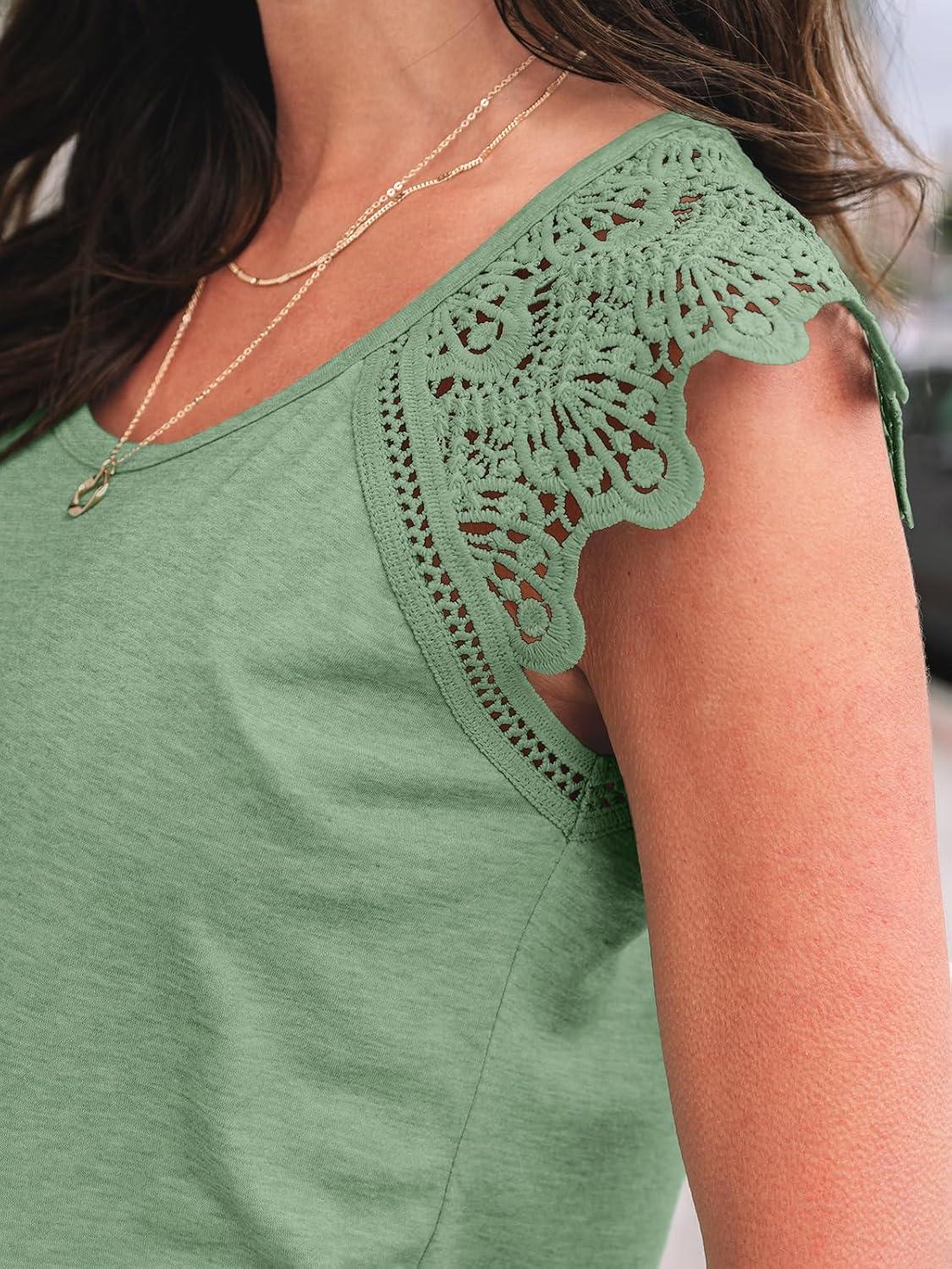 AUTOMET Womens Tops Casual Dressy Lace Summer Tee 2025 Cap Sleeve T Shirts Cute Basic Trendy Fashion Spring Outfits(Green)