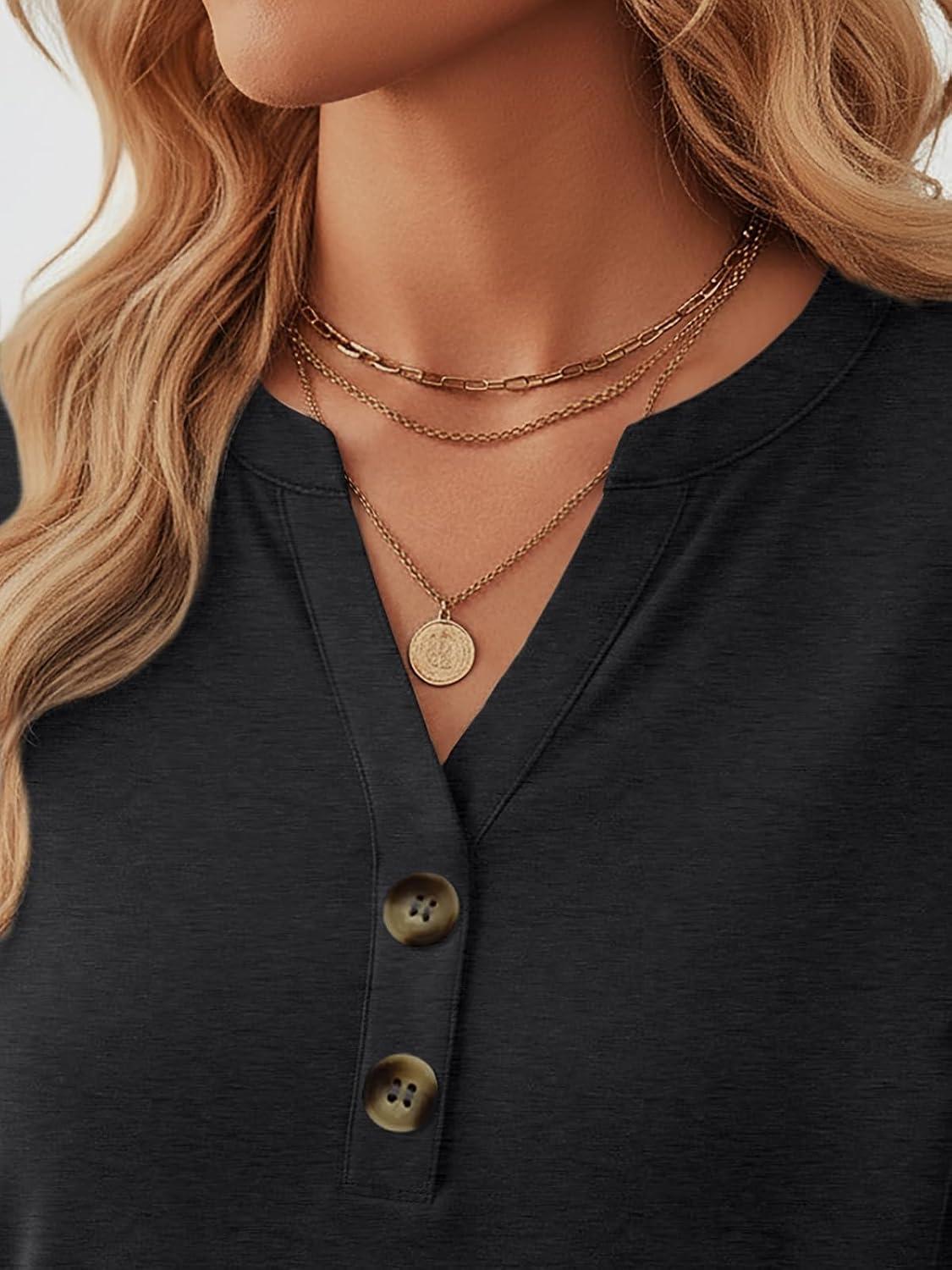AUTOMET Womens Tops Long Sleeve Shirts Fall Fashion Clothes Henley Dressy Casual Blouses Trendy 2025(Black)