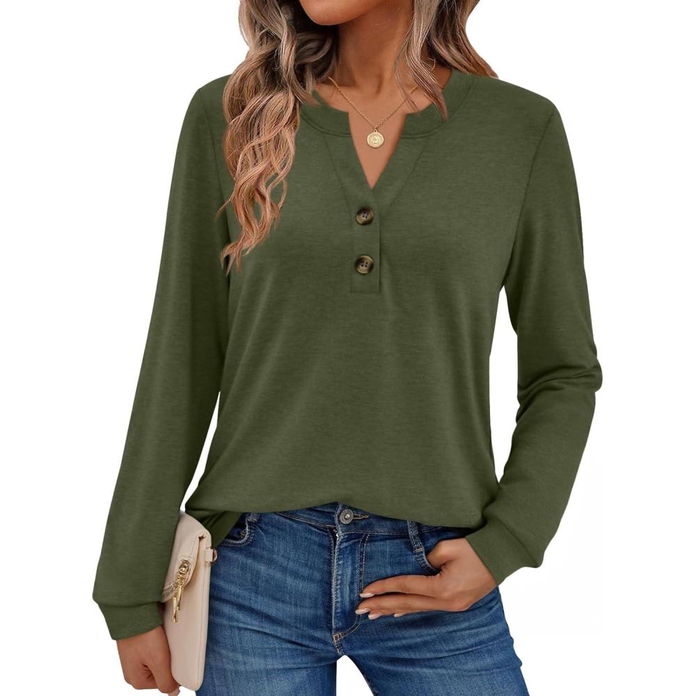 AUTOMET Womens Tops Long Sleeve Shirts Fall Fashion Clothes Henley Dressy Casual Blouses Trendy 2025(Green)