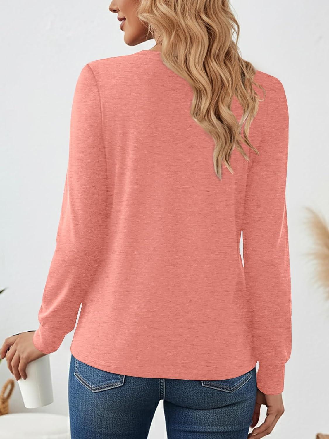 AUTOMET Womens Tops Long Sleeve Shirts Fall Fashion Clothes Henley Dressy Casual Blouses Trendy 2025(Pink)