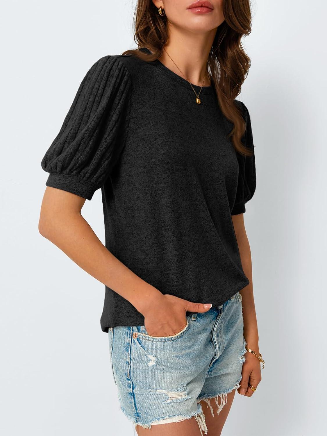 AUTOMET Womens Tops Summer Sweater Long Tunic Dressy Casual Blouses Business Cute Trendy Short Sleeve Shirt 2025(Black)