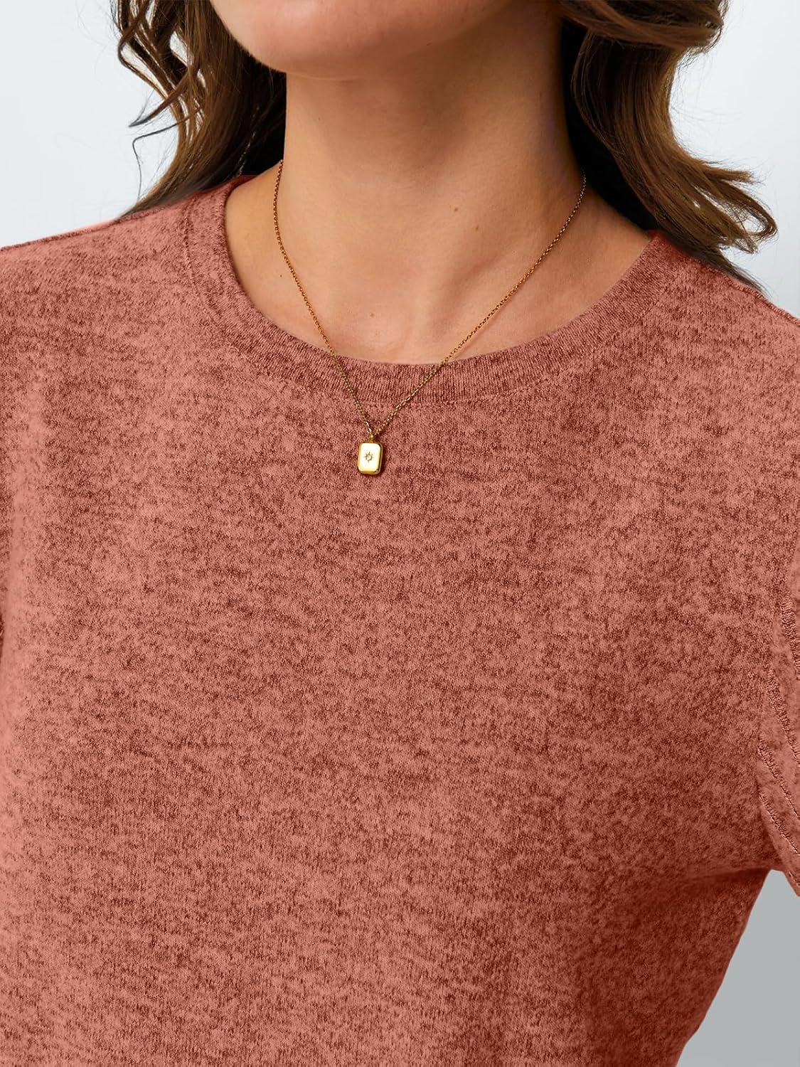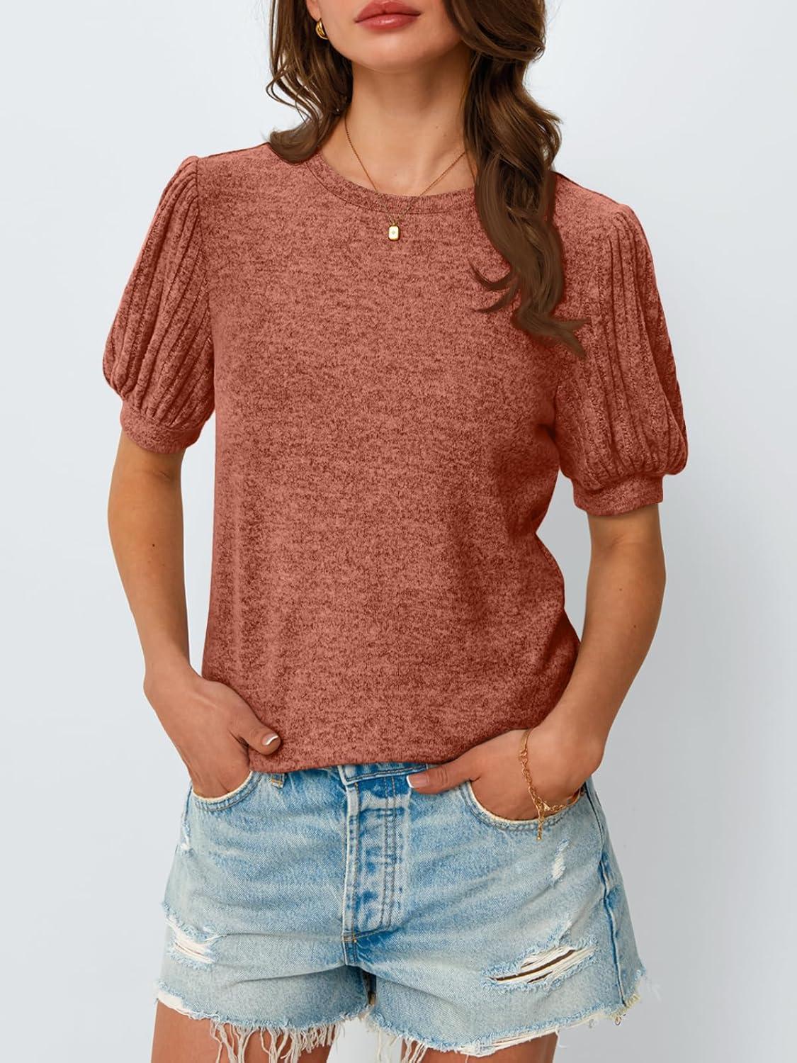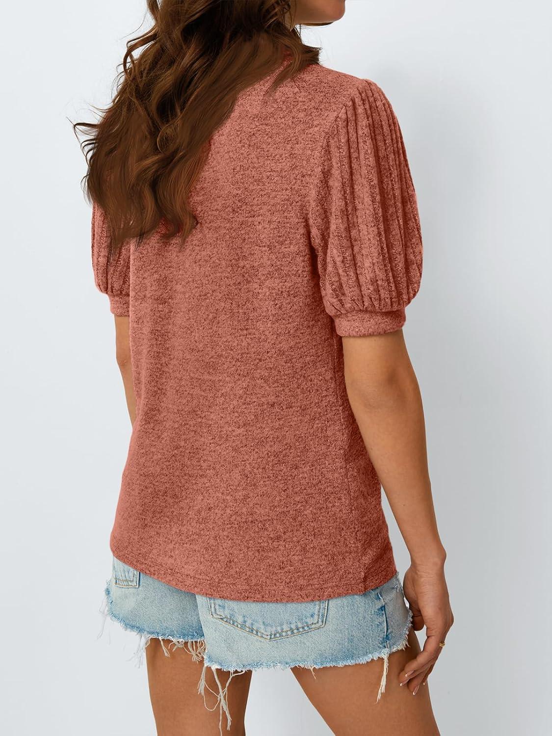 AUTOMET Womens Tops Summer Sweater Long Tunic Dressy Casual Blouses Business Cute Trendy Short Sleeve Shirt 2025(Brown)