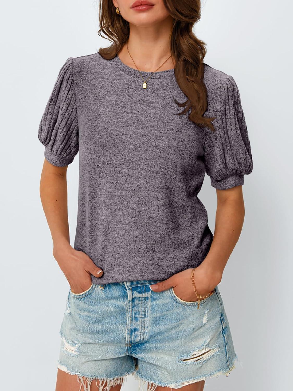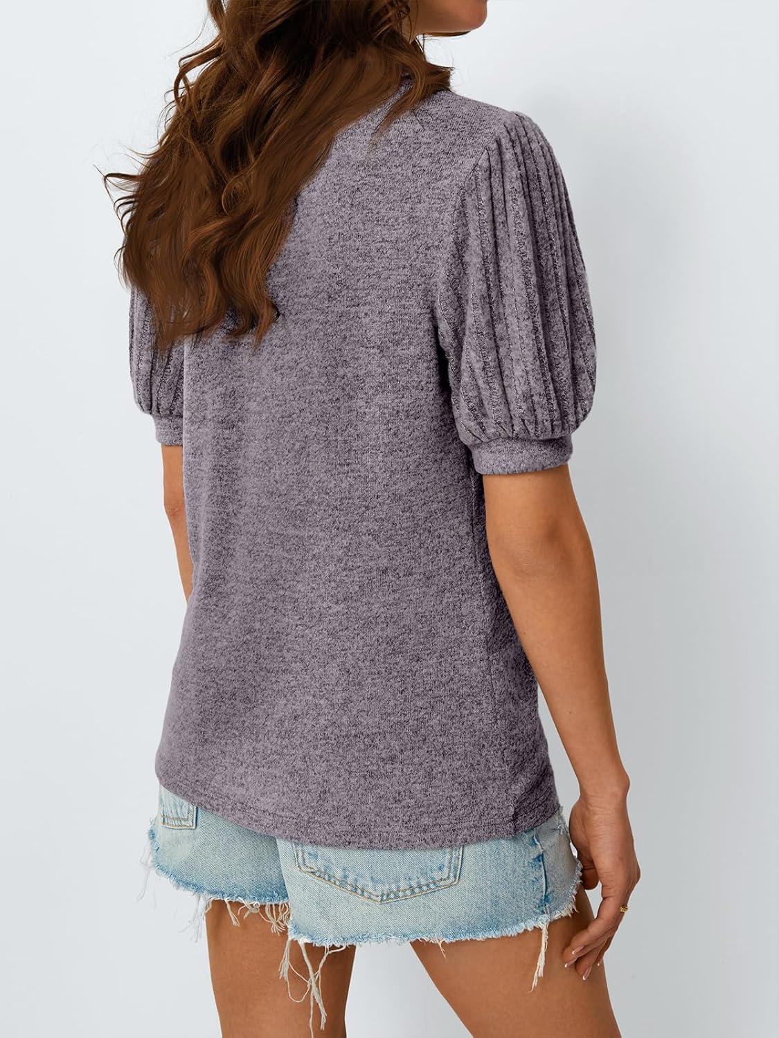AUTOMET Womens Tops Summer Sweater Long Tunic Dressy Casual Blouses Business Cute Trendy Short Sleeve Shirt 2025(Coffeegrey)