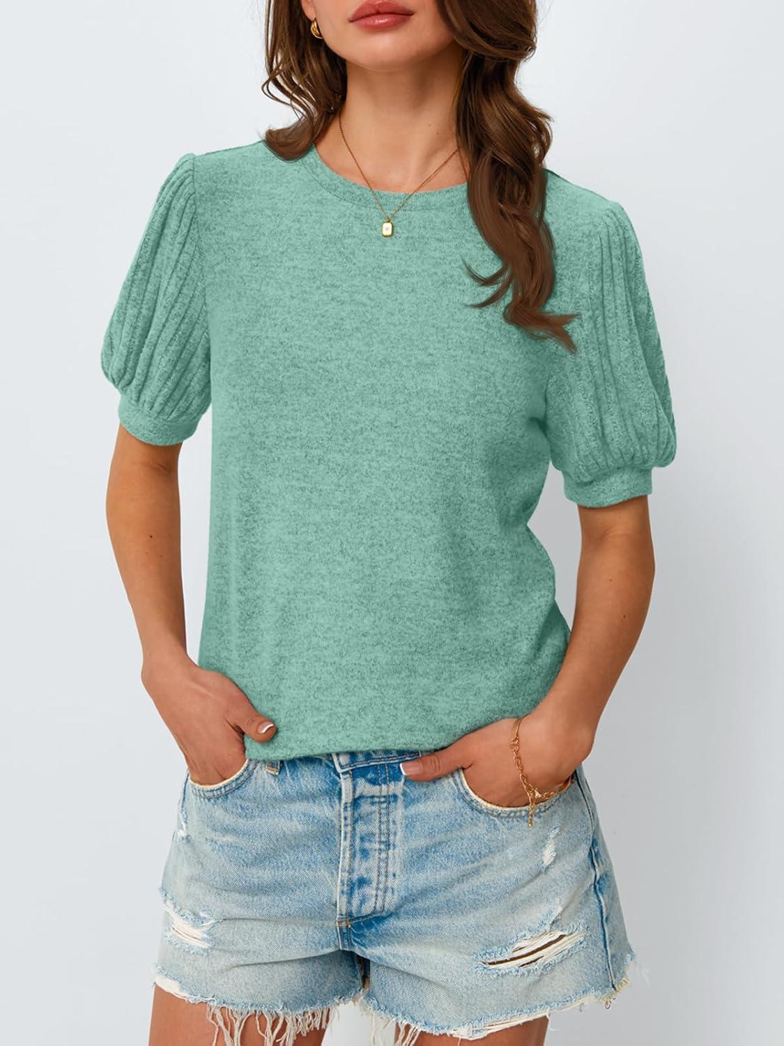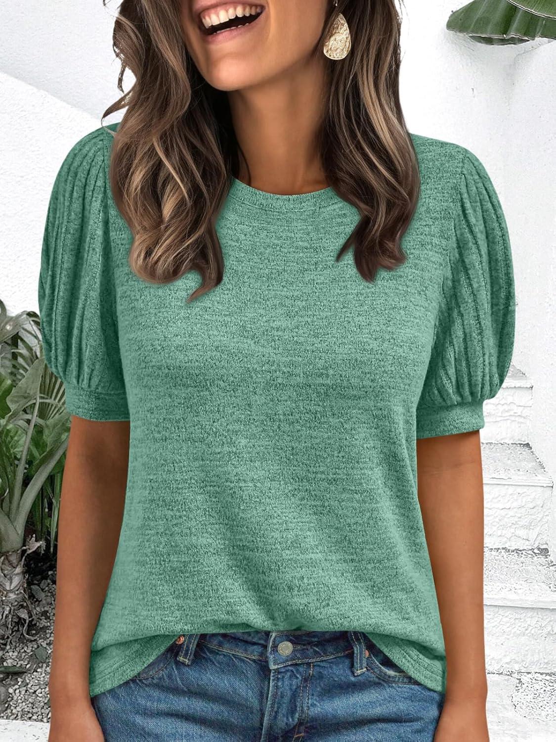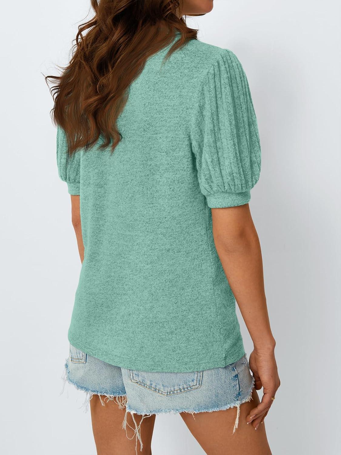 AUTOMET Womens Tops Summer Sweater Long Tunic Dressy Casual Blouses Business Cute Trendy Short Sleeve Shirt 2025(Green)