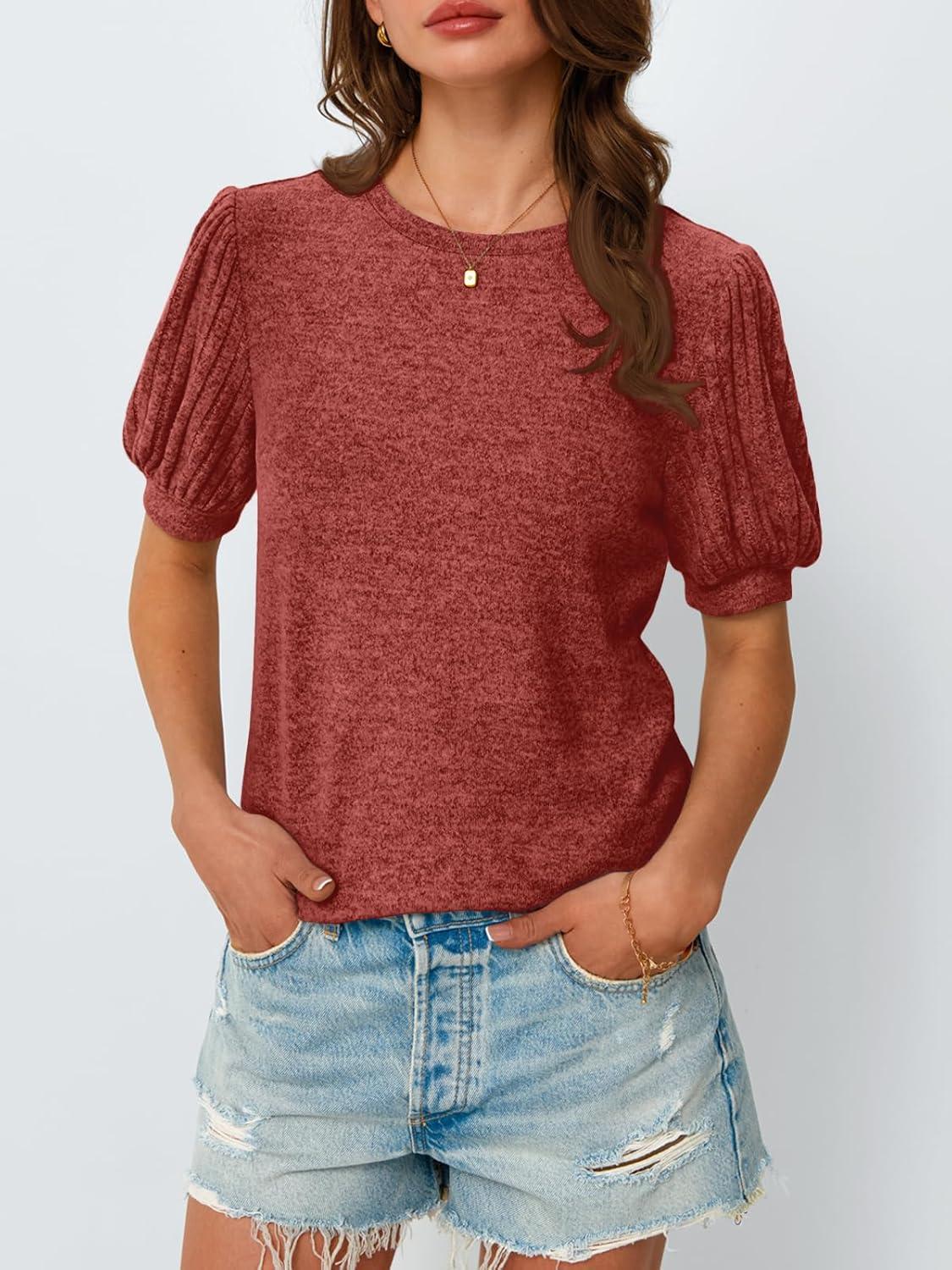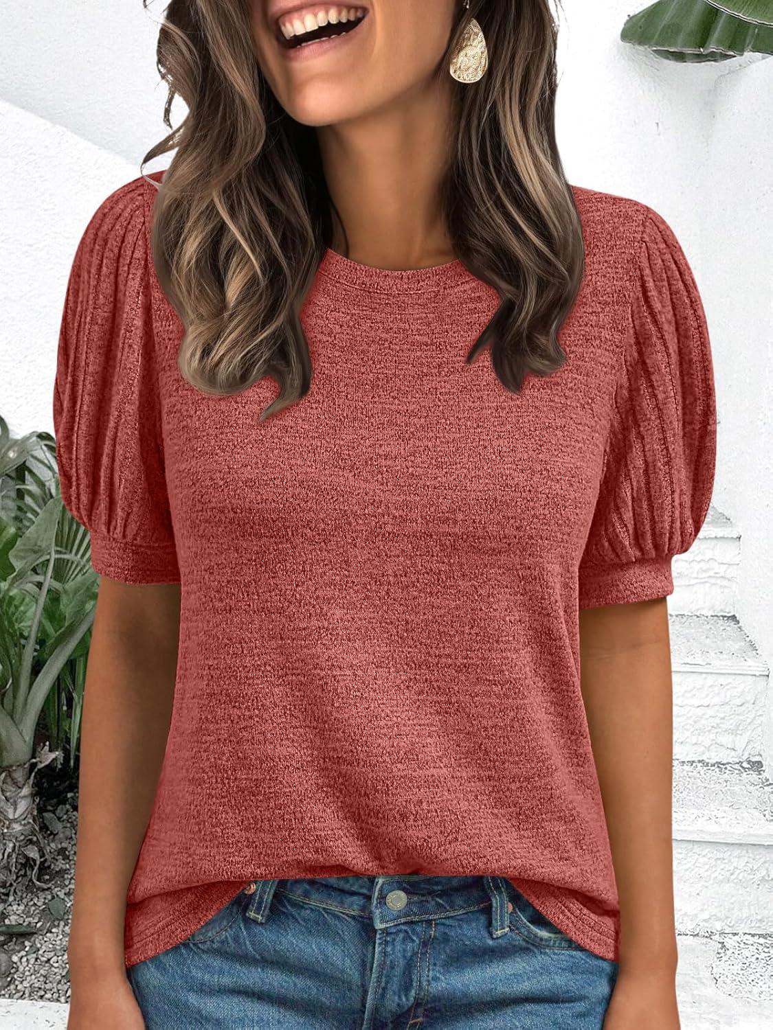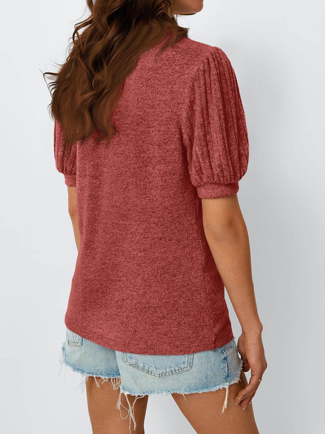 AUTOMET Womens Tops Summer Sweater Long Tunic Dressy Casual Blouses Business Cute Trendy Short Sleeve Shirt 2025(Red)