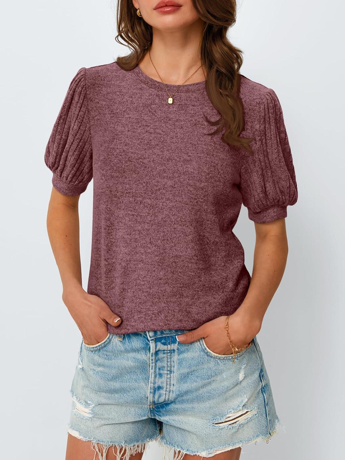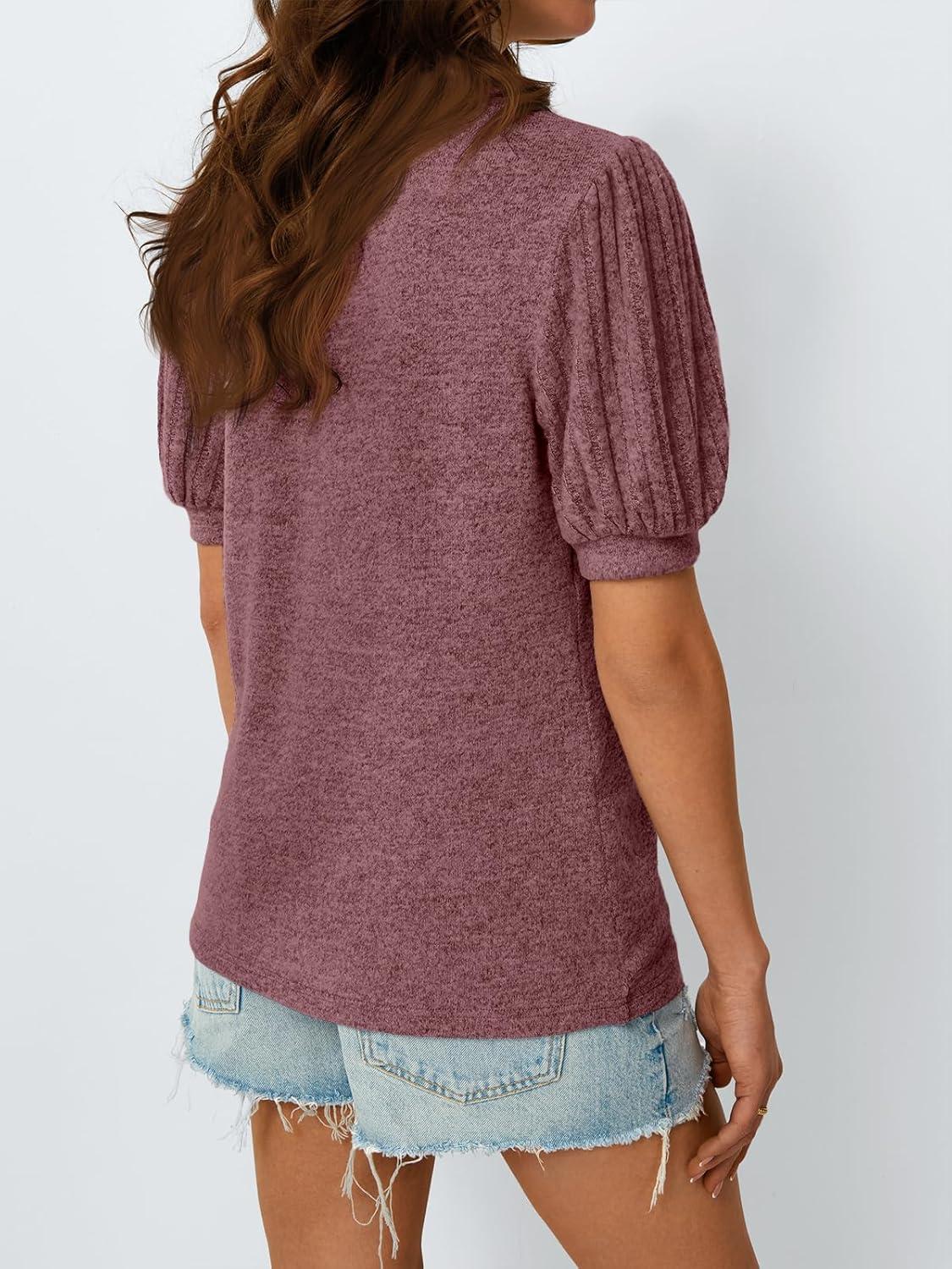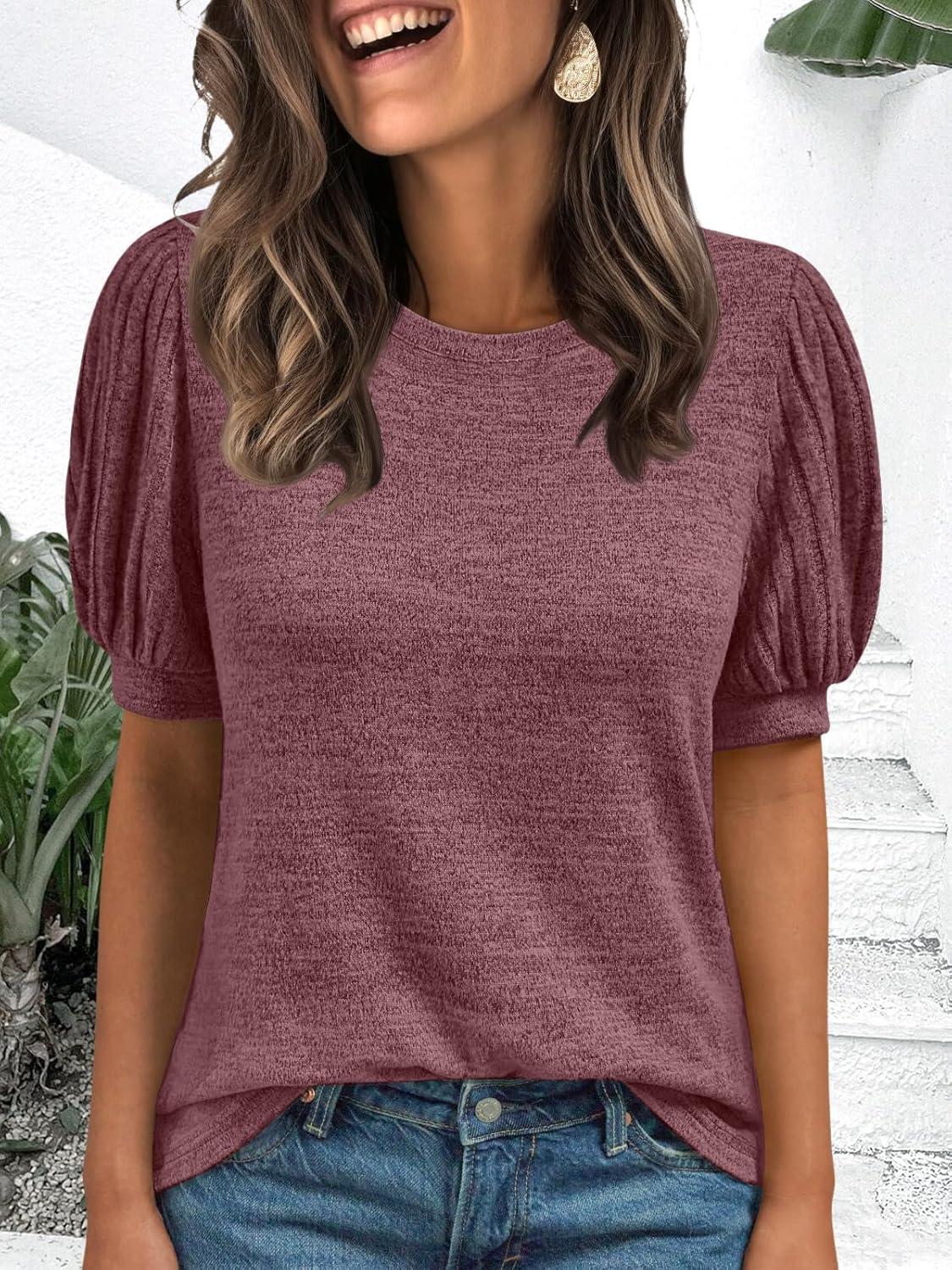 AUTOMET Womens Tops Summer Sweater Long Tunic Dressy Casual Blouses Business Cute Trendy Short Sleeve Shirt 2025(Wine)