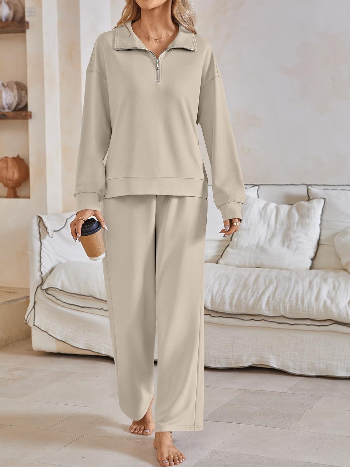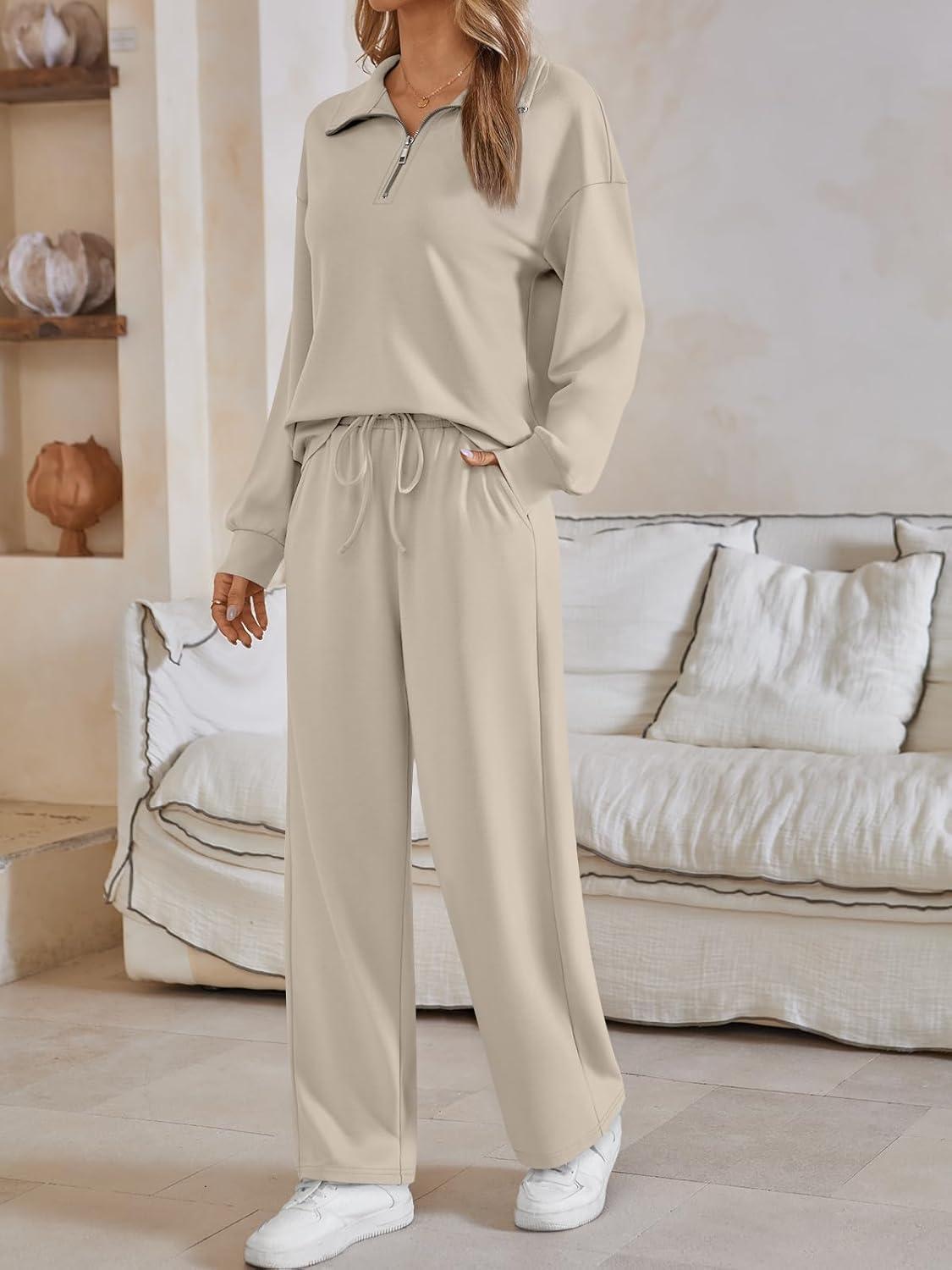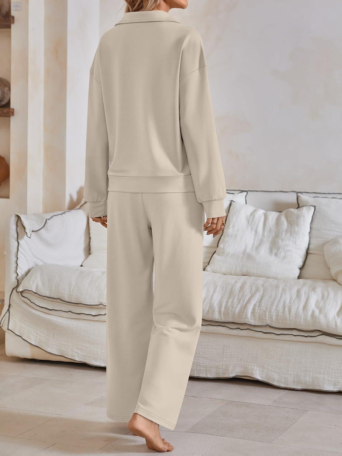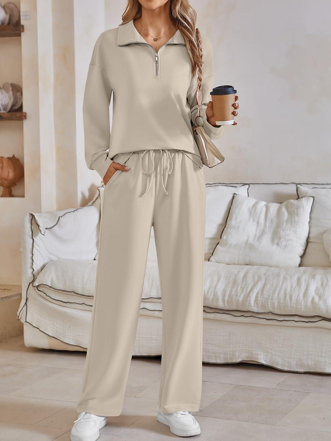 AUTOMET Womens Track Suits Set Sweatsuits Two Piece Outfits Lounge Sets Half Zip Lapel Sweatshirts Fall Fashion Clothes(Khaki)