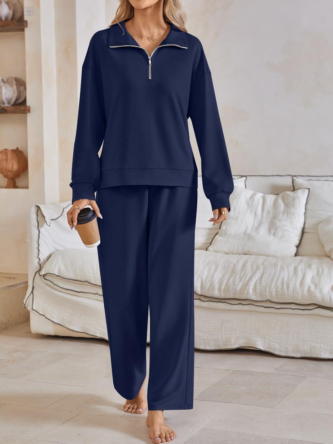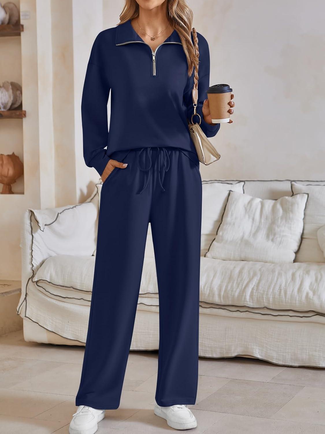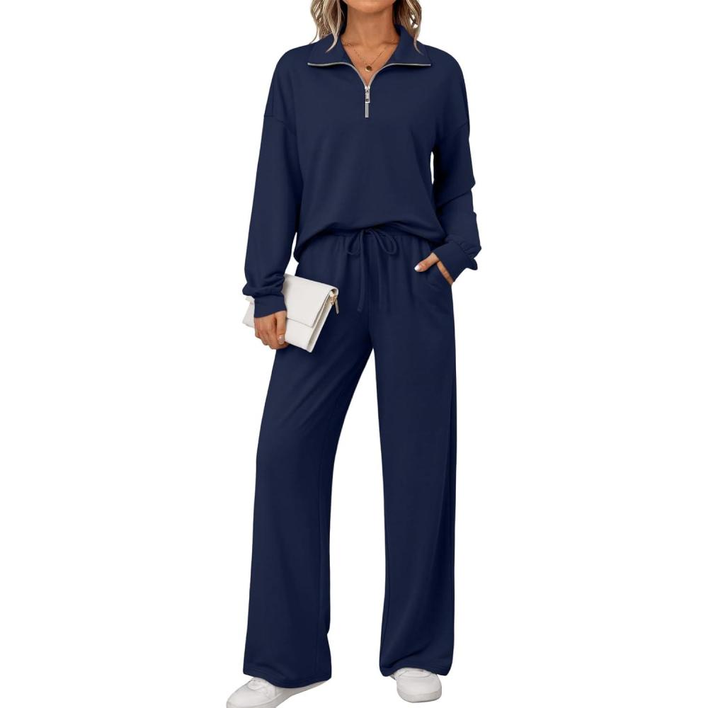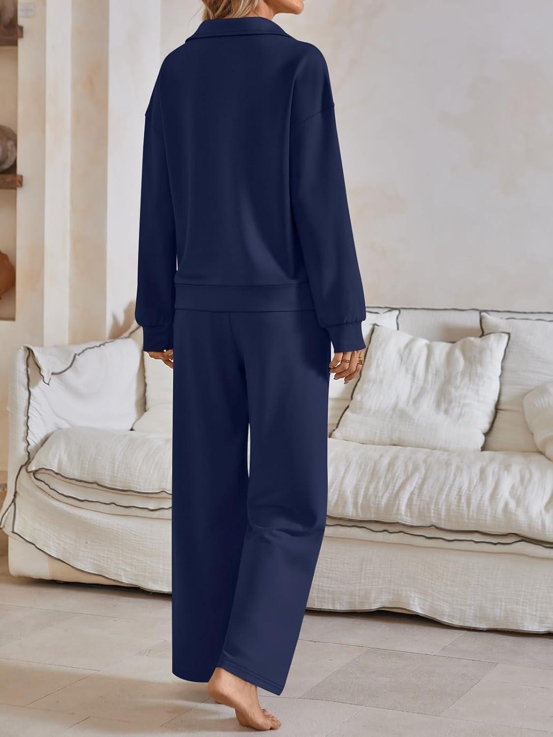 AUTOMET Womens Track Suits Set Sweatsuits Two Piece Outfits Lounge Sets Half Zip Lapel Sweatshirts Fall Fashion Clothes(Navyblue)
