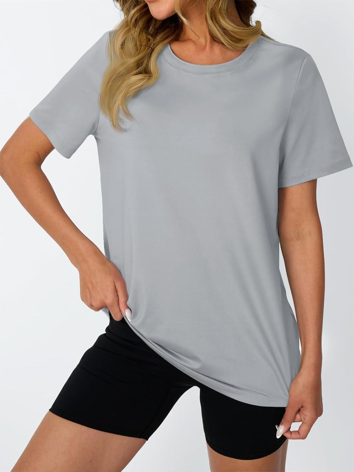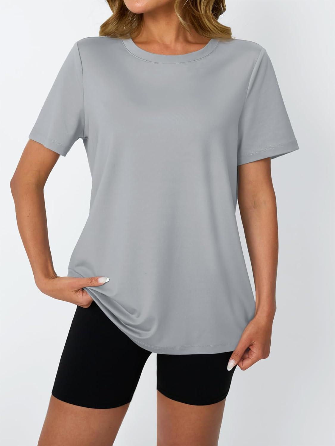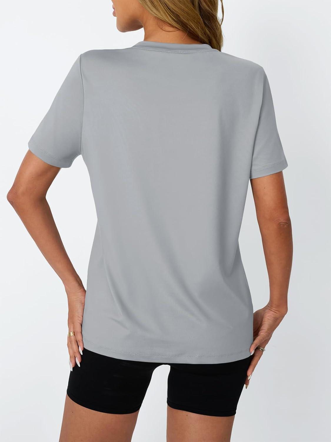 AUTOMET Women’s Workout Tops Short Sleeve Gym Shirts Summer Athletic Yoga Tshirts Loose Fit Casual Clothes 2025(Lightgrey)