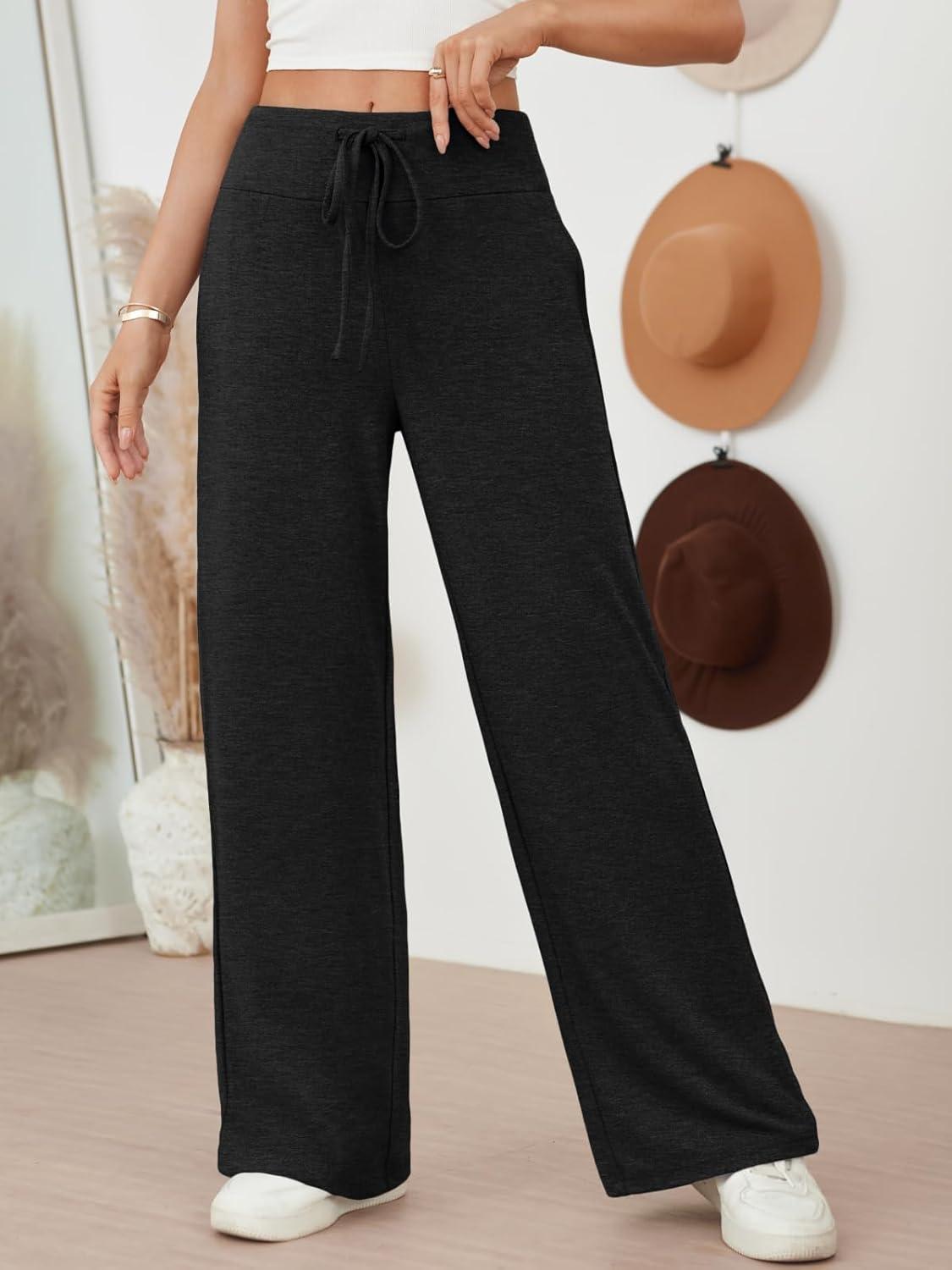 AUTOMET Womes Wide Leg Sweatpants Pajama Pants Baggy Casual Lounge Yoga Pants High Waisted Bottoms Fall Clothes Trendy 2025(Black)